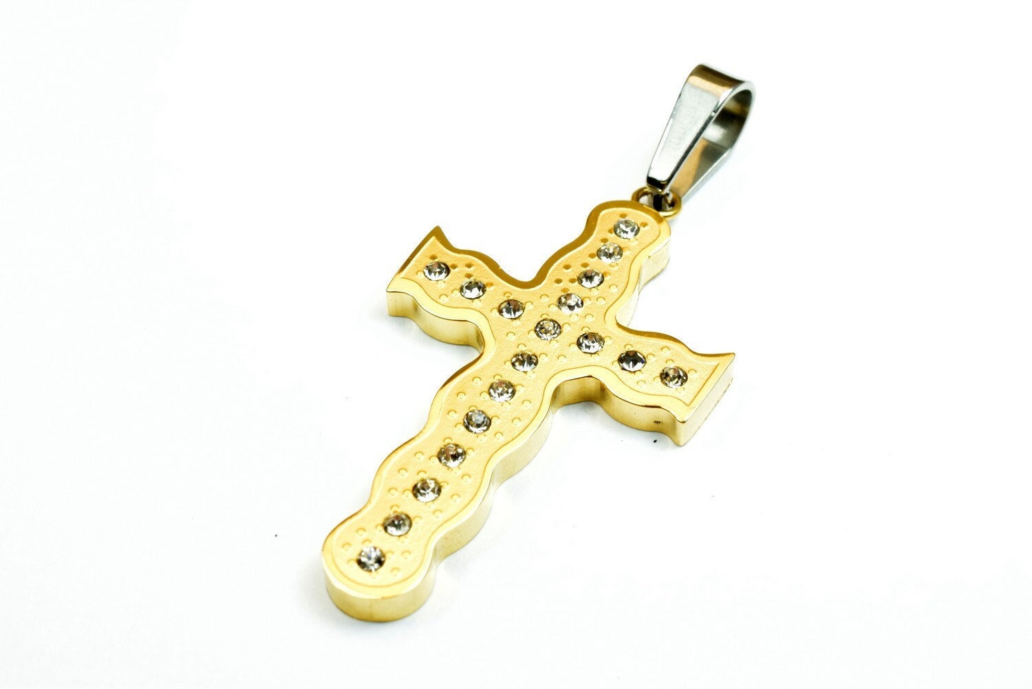 18K Gold Filled Cross Stainless Steel Pendant - CZ Alternative for Baptism & Communion