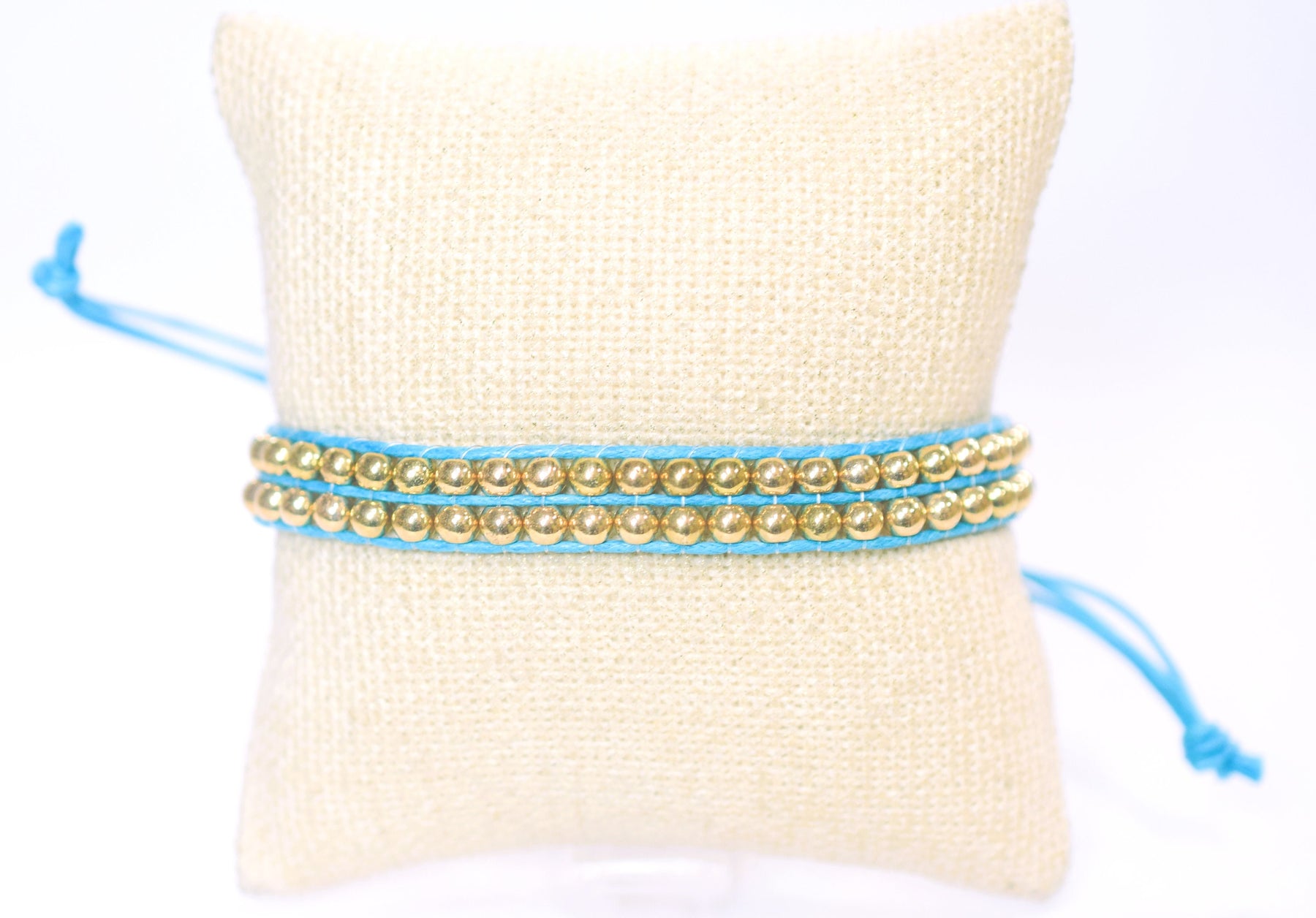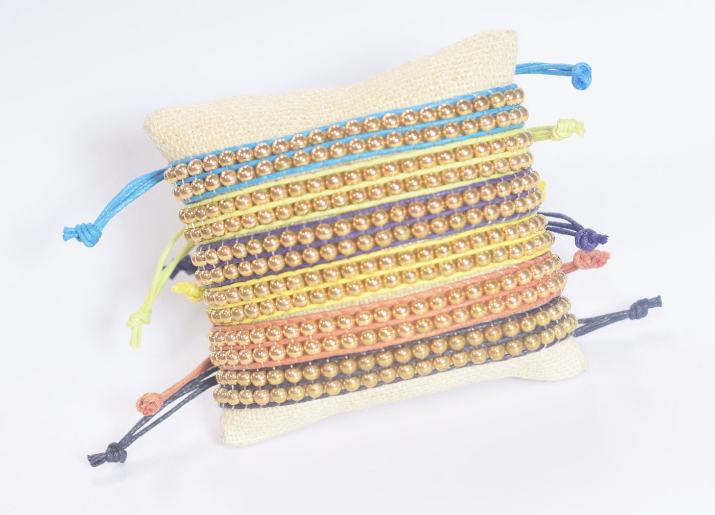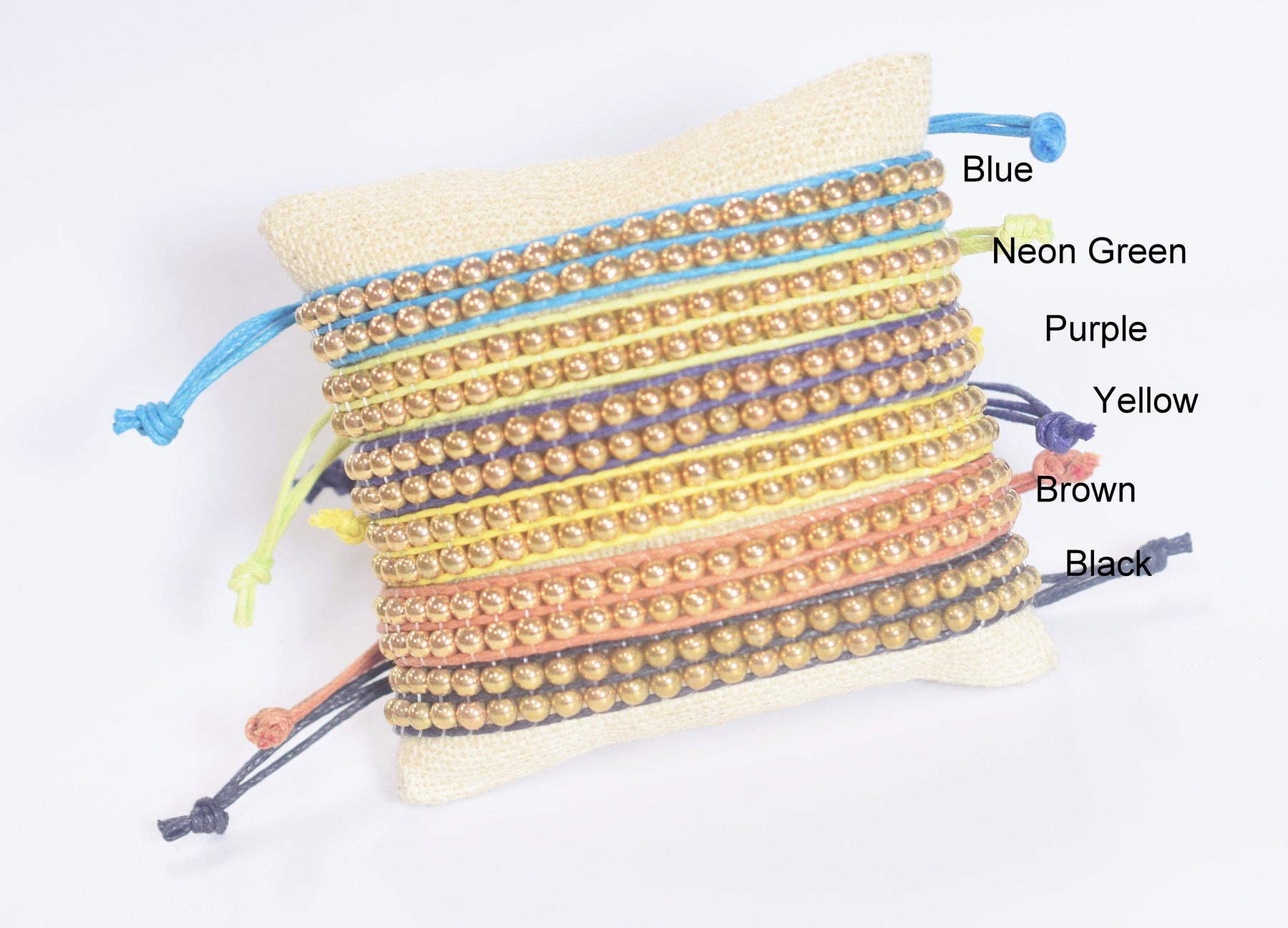 3 dollars for dozen Gold Beads 4mm Macrame Hand Made Bracelet 6 colors 56 Beads in one bracelet and wholesale