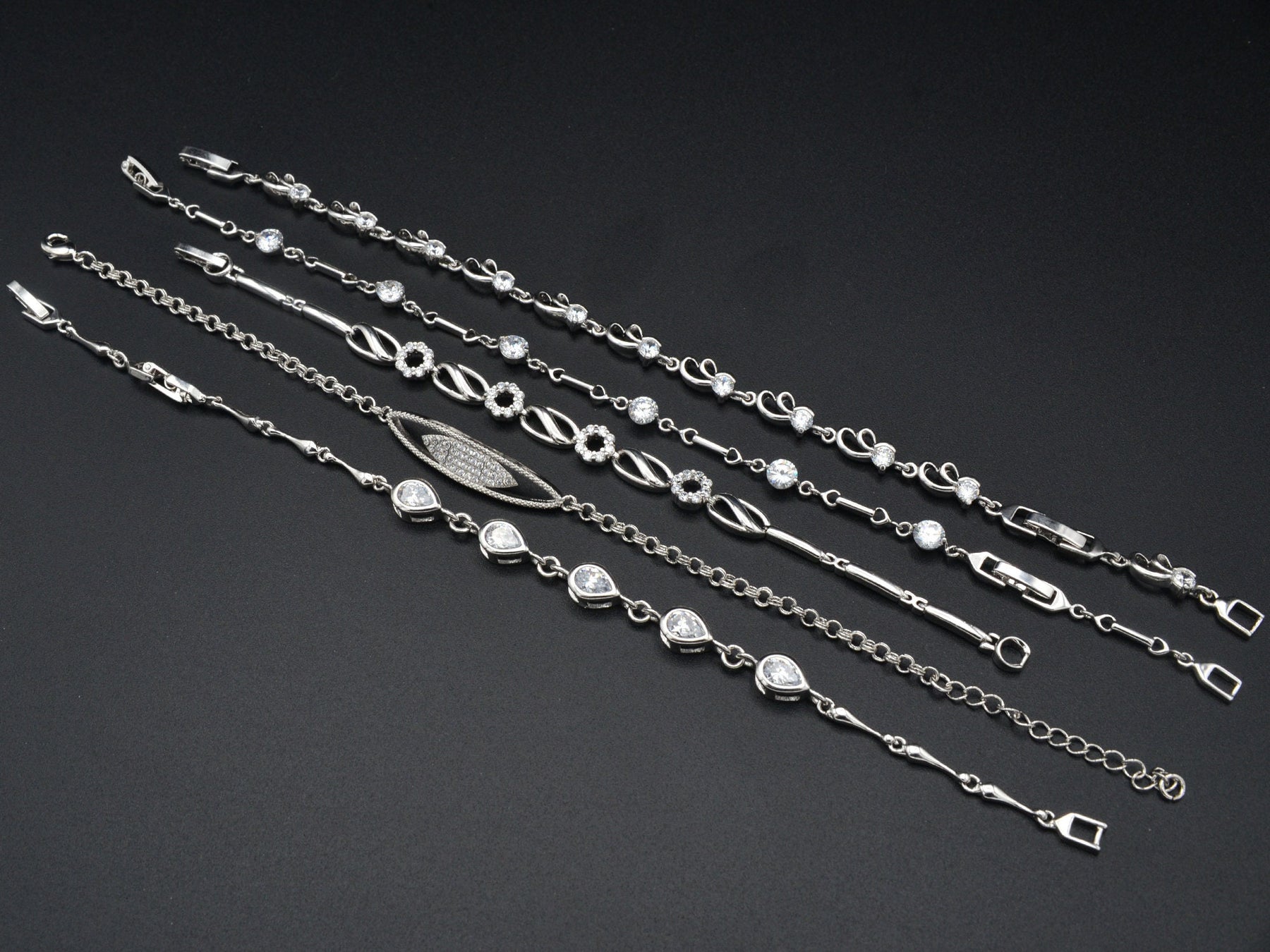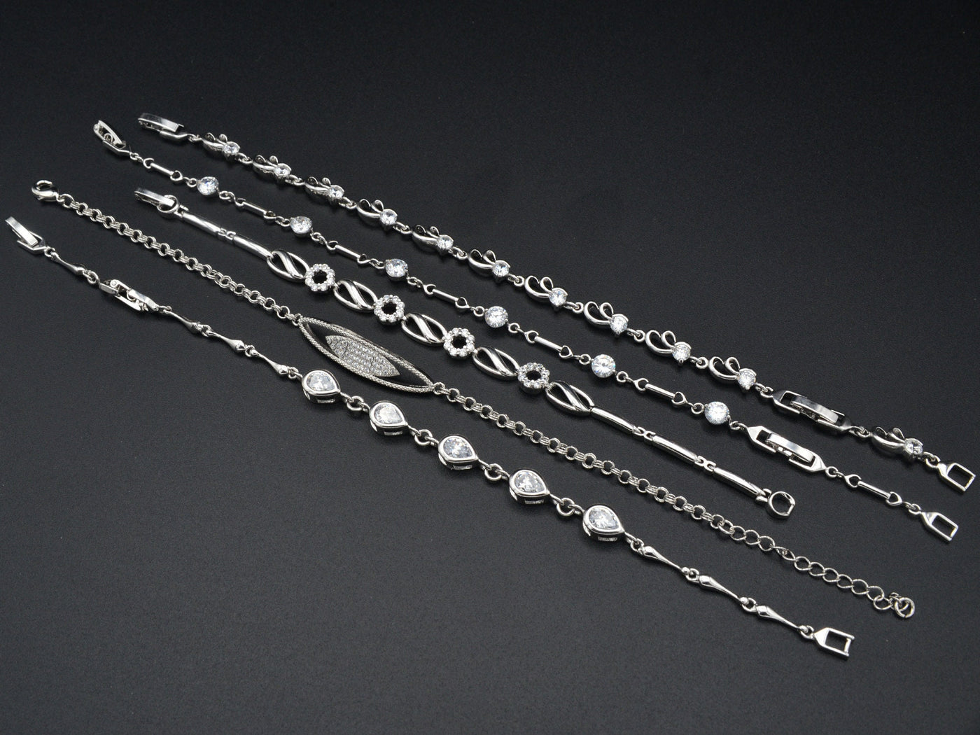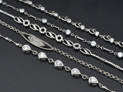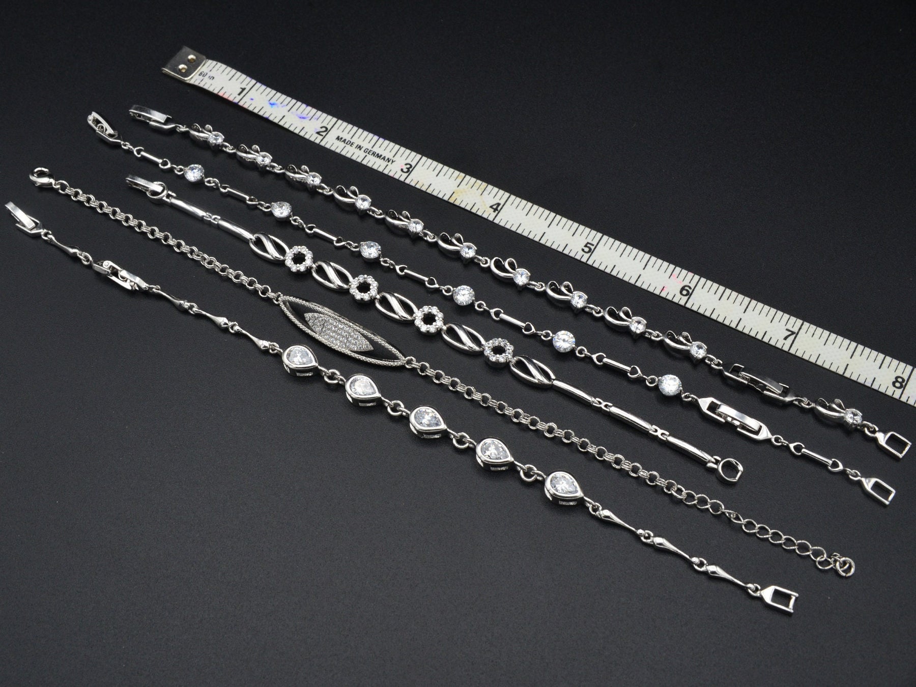 Women Silver Bracelet Rhodium Plated Link Chain With Clear Cubic Zirconia Flower and Marquize design for Jewelry Making tarnish resistant