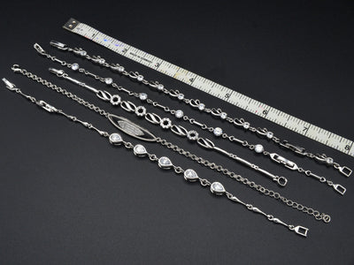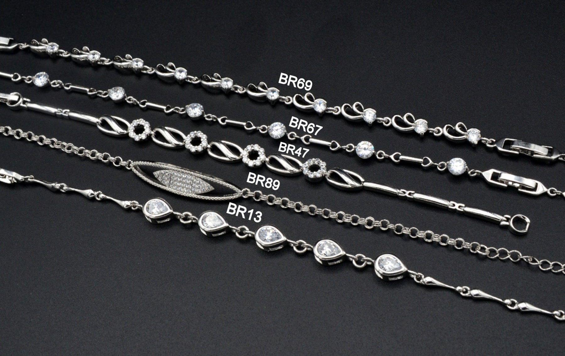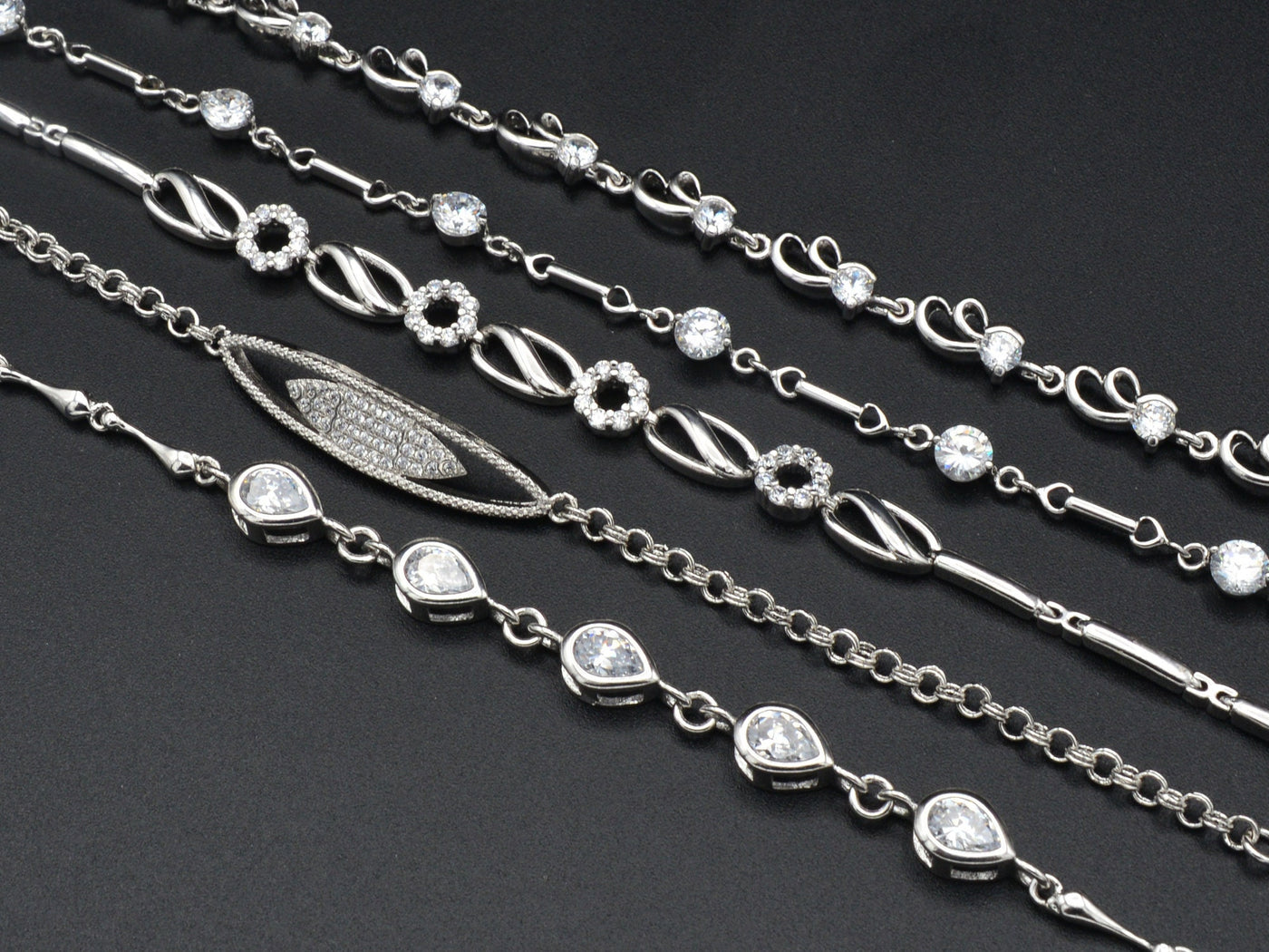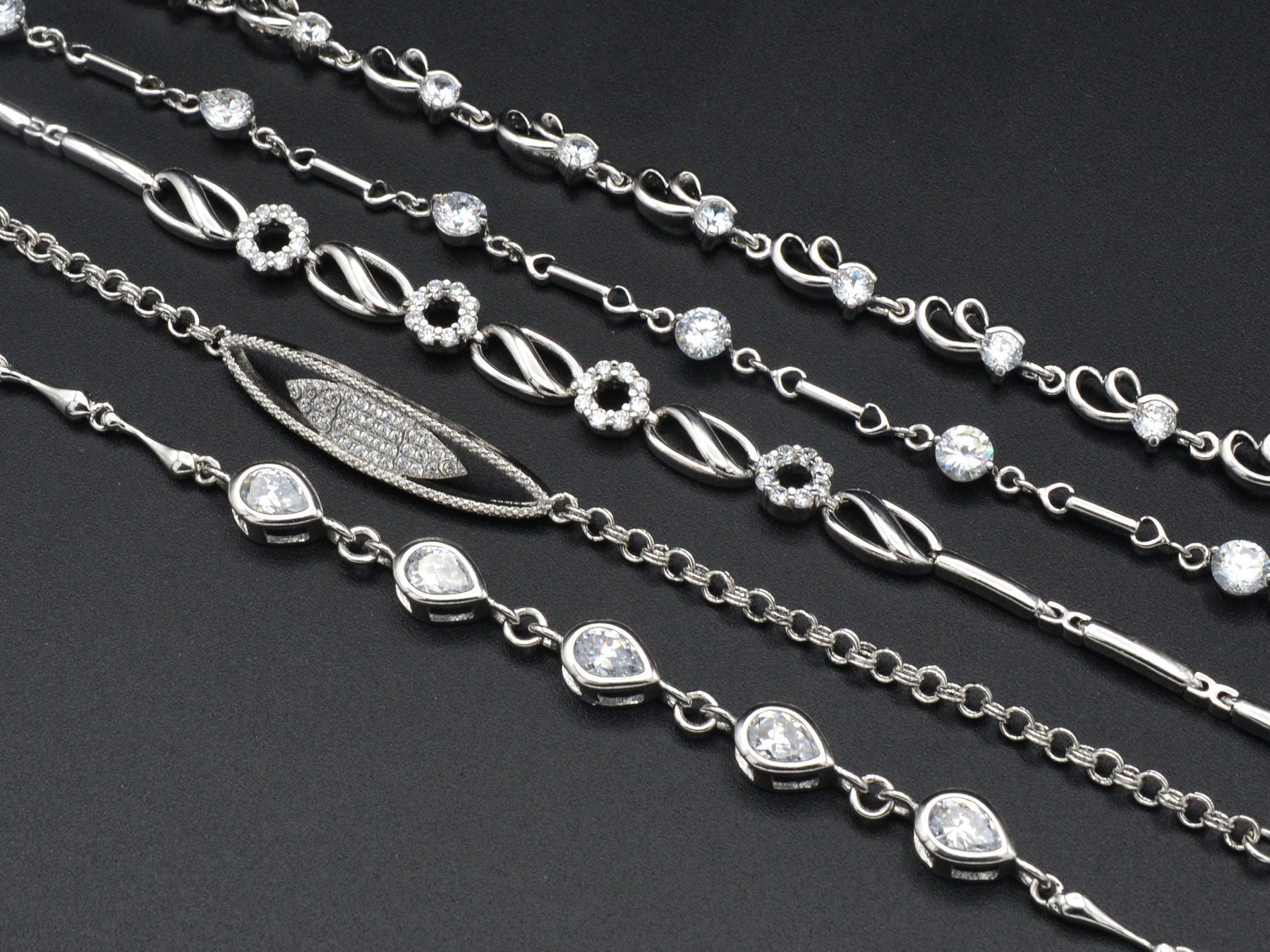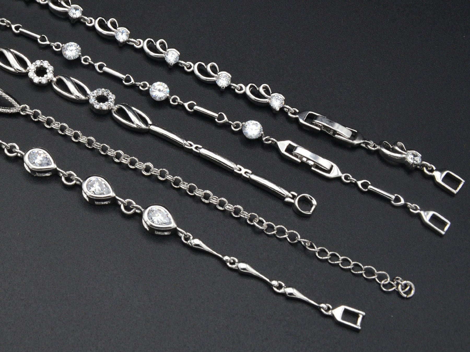 Women Silver Bracelet Rhodium Plated Link Chain With Clear Cubic Zirconia Flower and Marquize design for Jewelry Making tarnish resistant