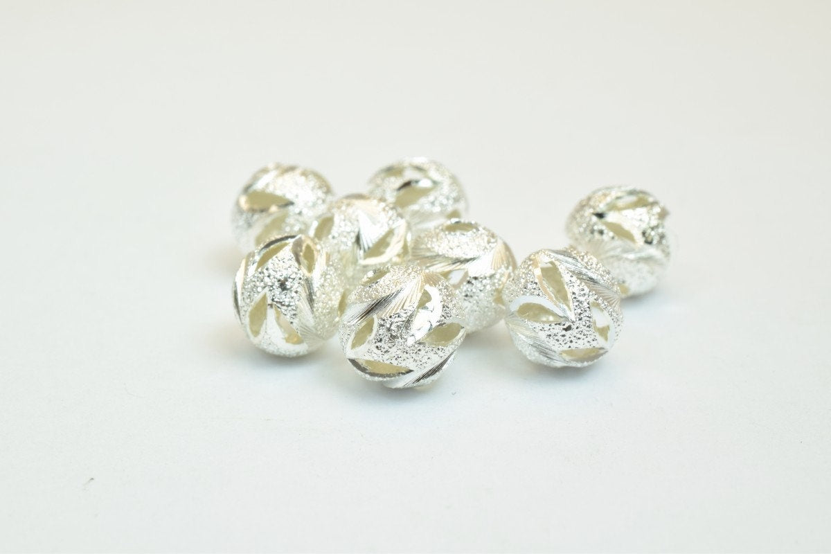 100 PCs Silver Plated Carved Round Beads 8mm Diamond Cut