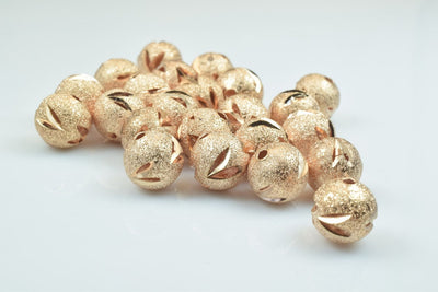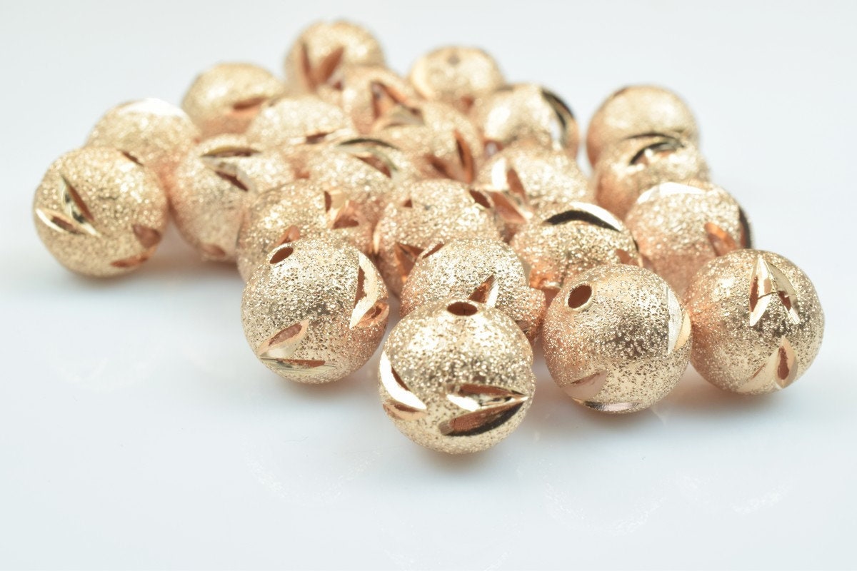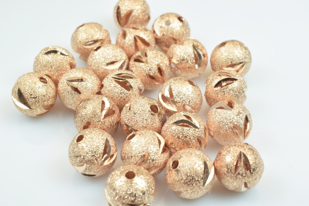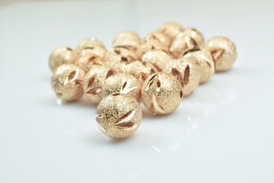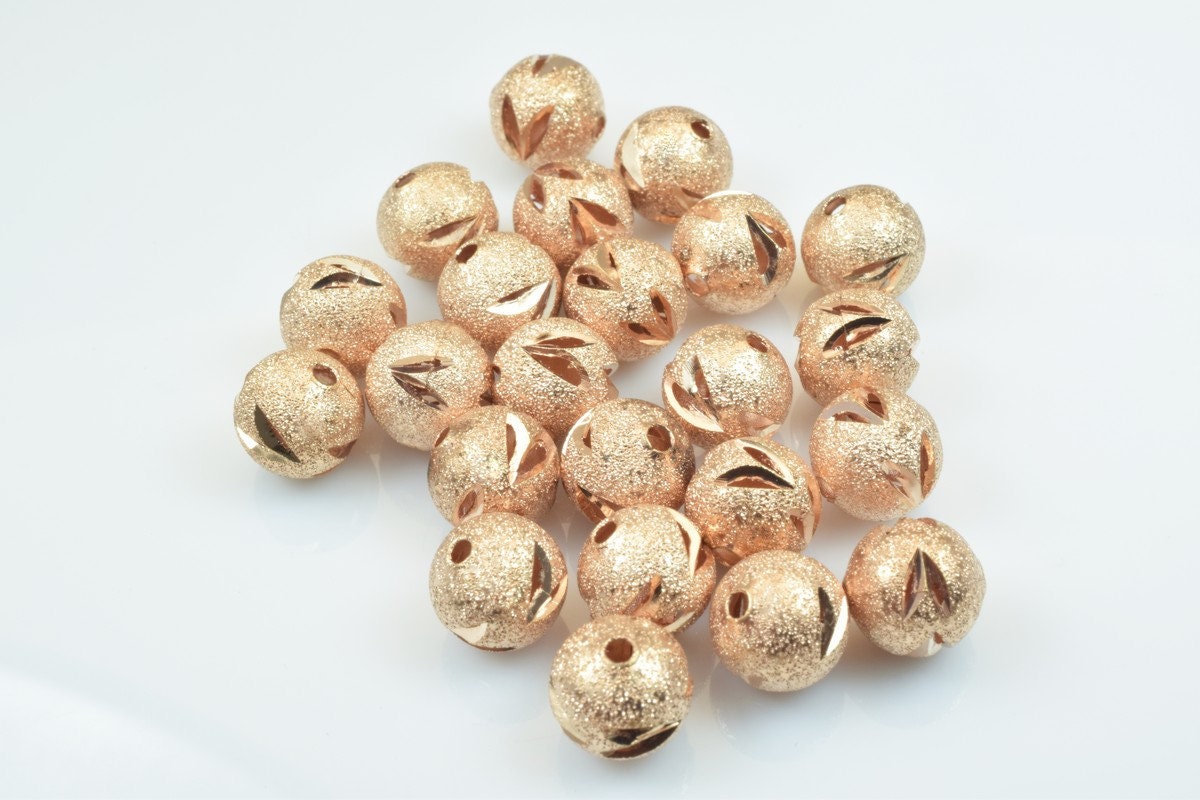 100 PCs Rose Gold Plated Carved Round Beads 6mm/8mm/10mm Diamond Cut For Jewelry Making