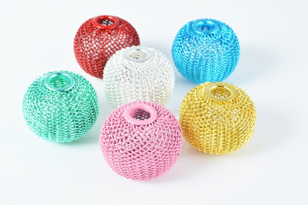 6 PCs Wire Mesh Beads Basketball wives large hole Round Beads 25mm metal jewelry big hoop earring chunky bead jewelry making