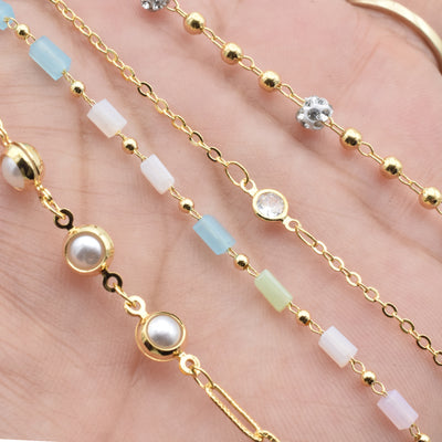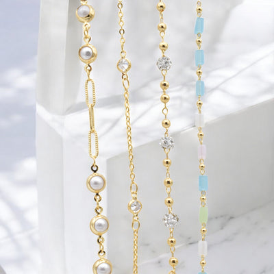 Gold Filled 18k Chain Alternative - Pearl, Pave, Stone & Zirconia by Foot