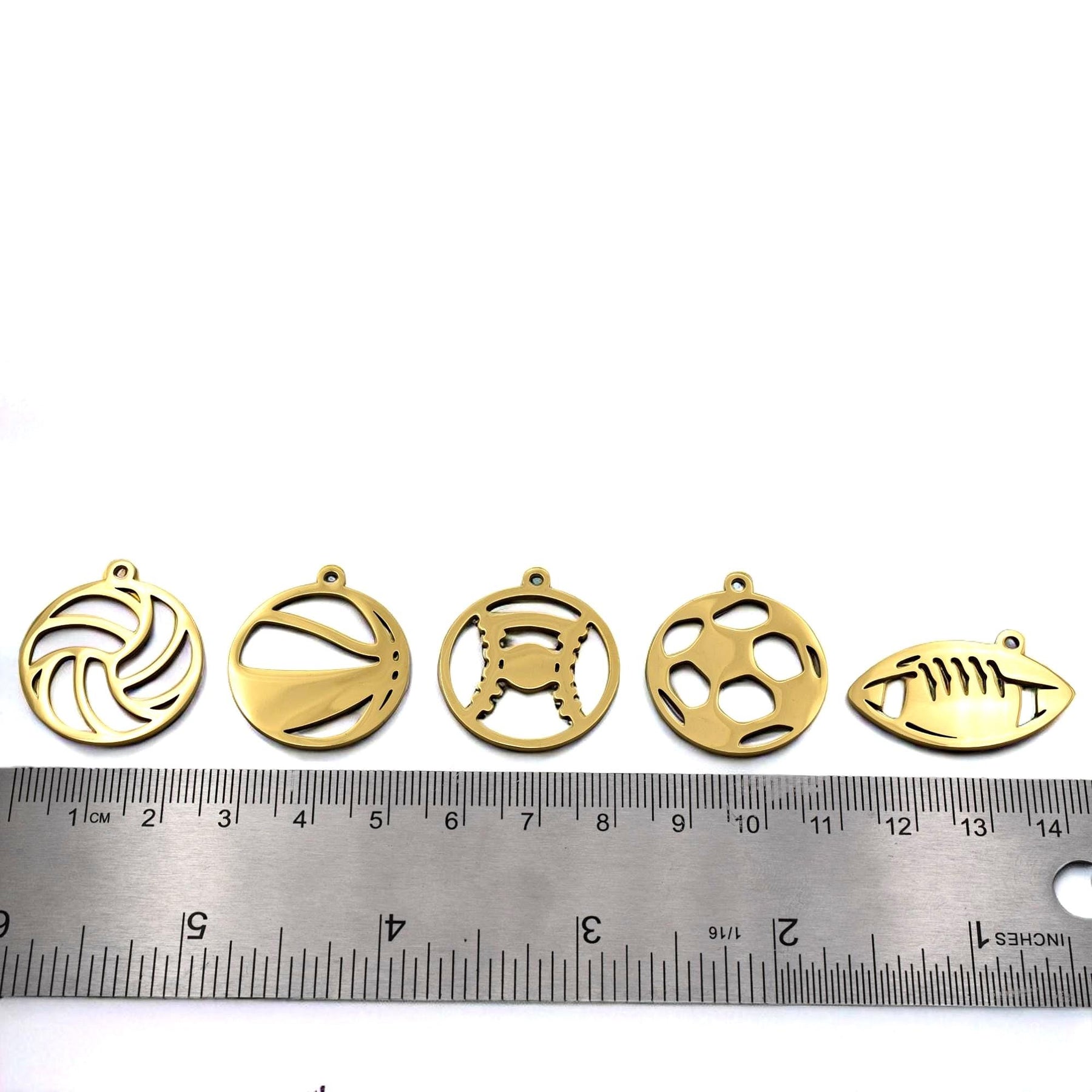 Gold Stainless Steel Sports Ball Charms | Jewelry Pendants (6 PCs/PK)