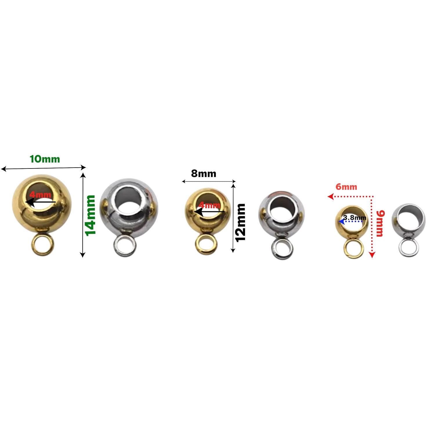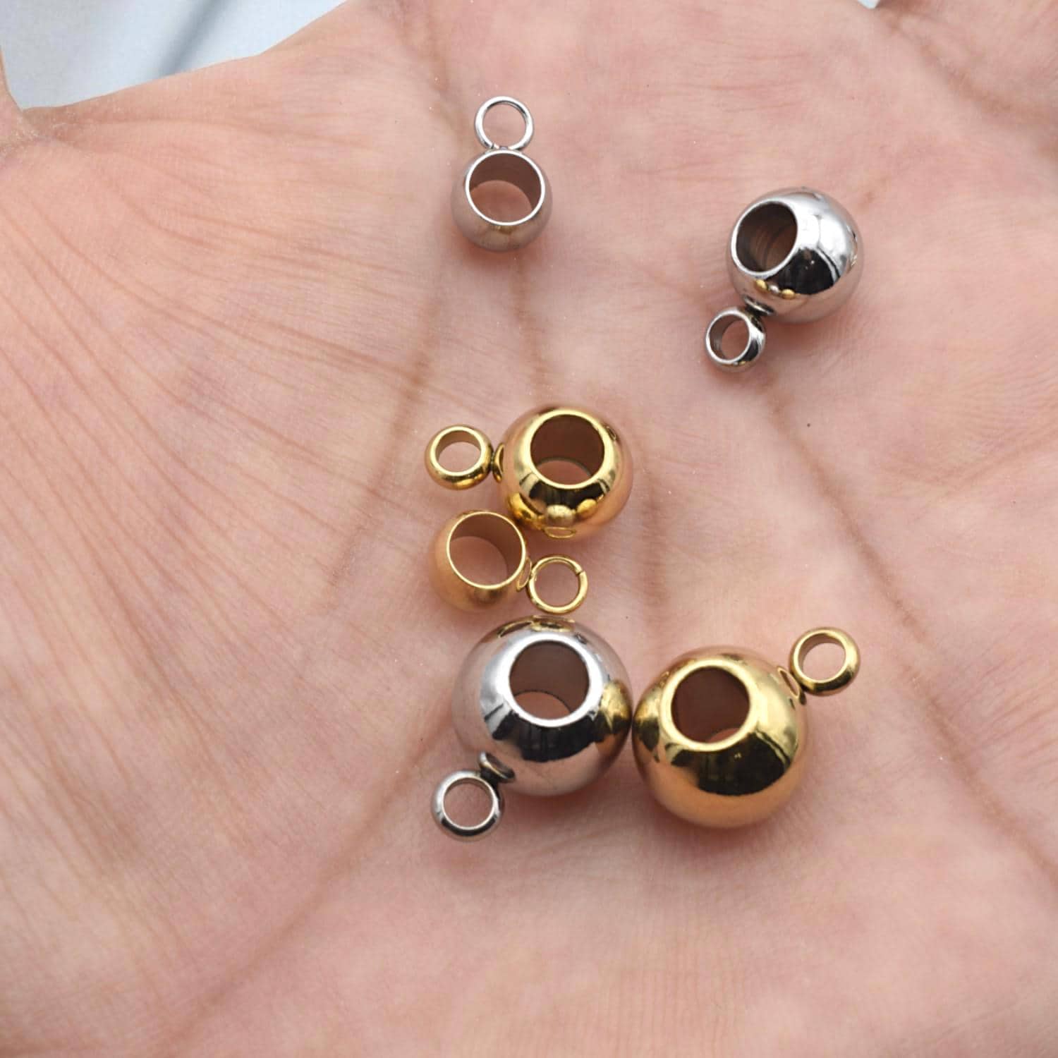 Stainless Round Bail Beads with Loop Gold & Silver Large-Hole Charm Connectors DIY Necklace, Bracelet Paracord Findings 12 PCs or 20 PCs