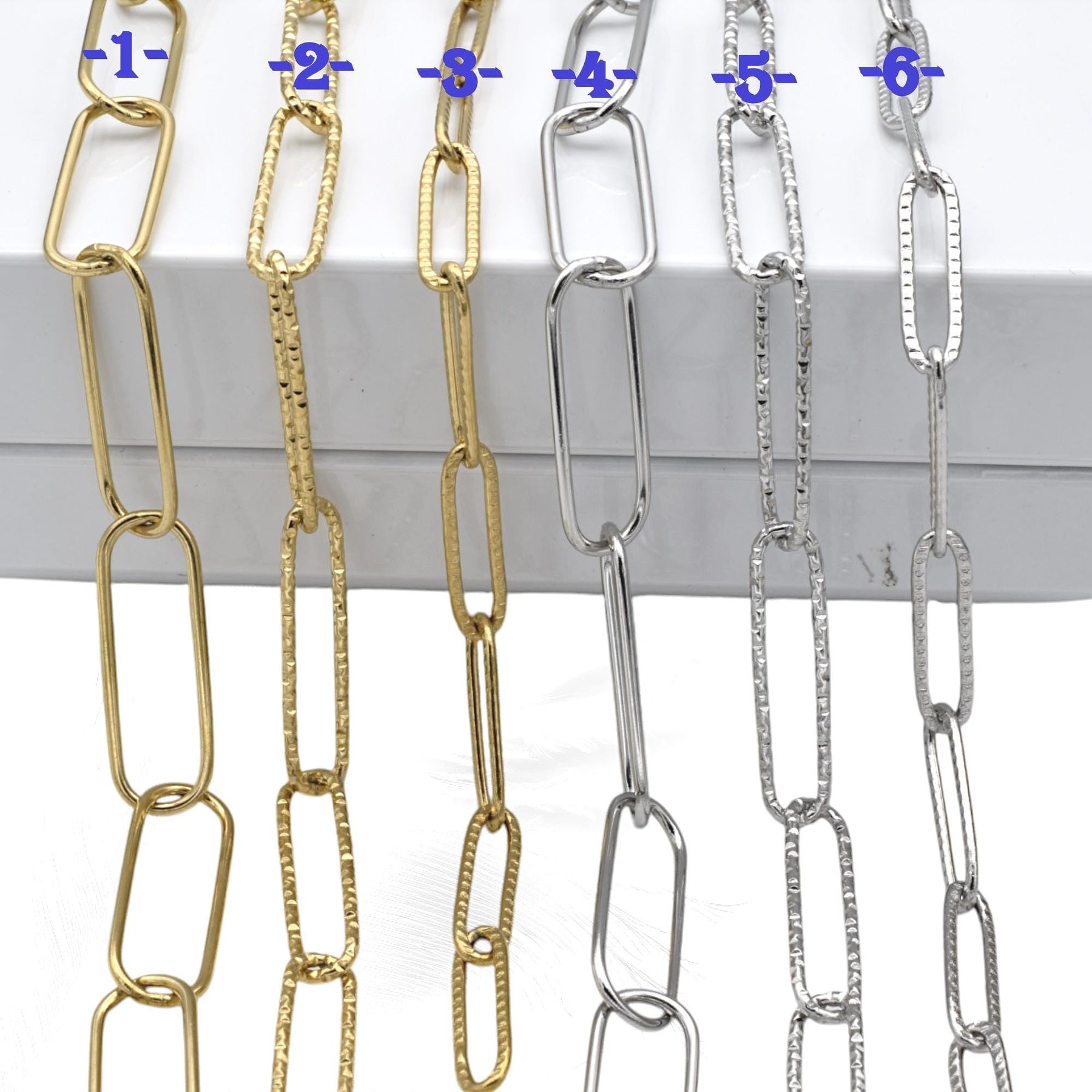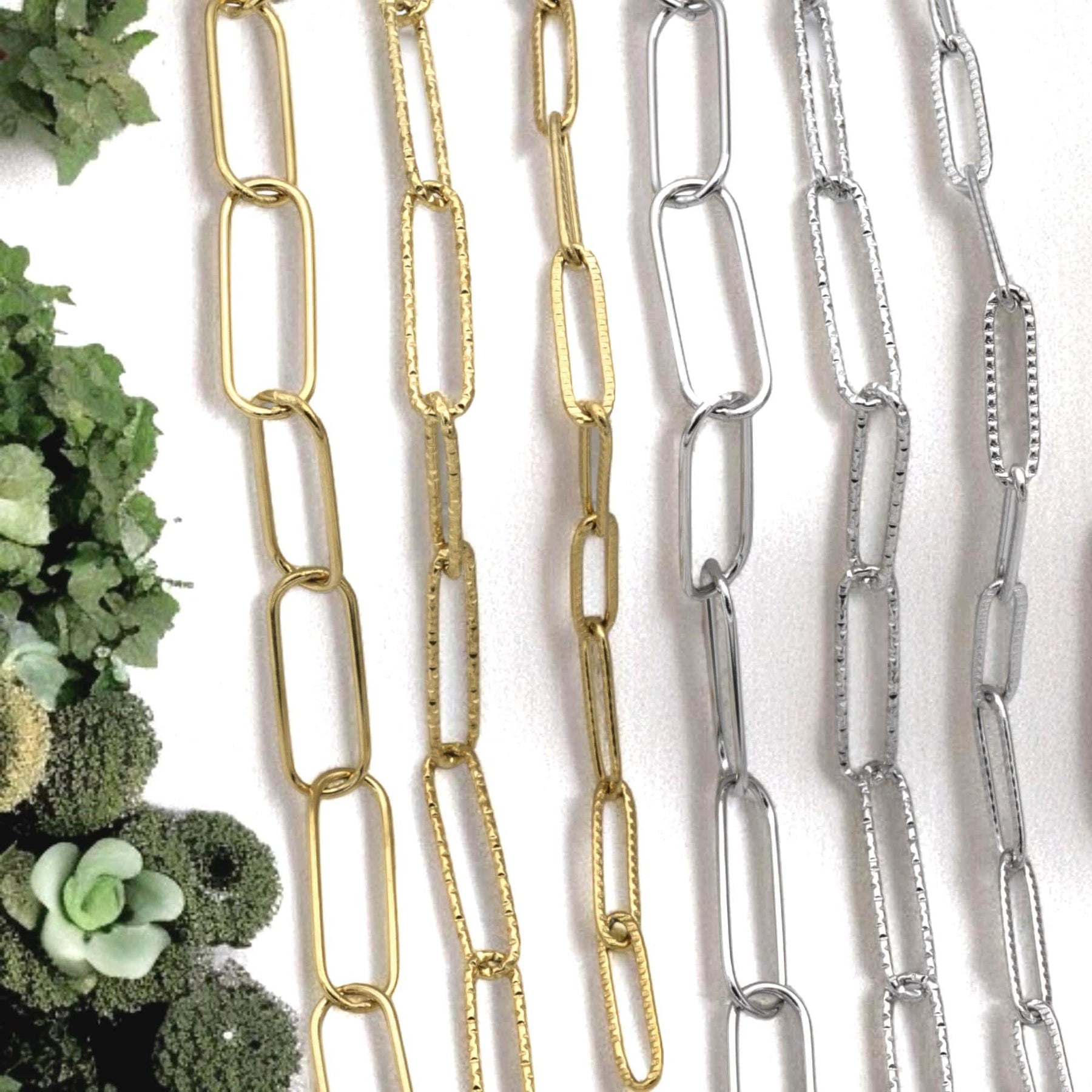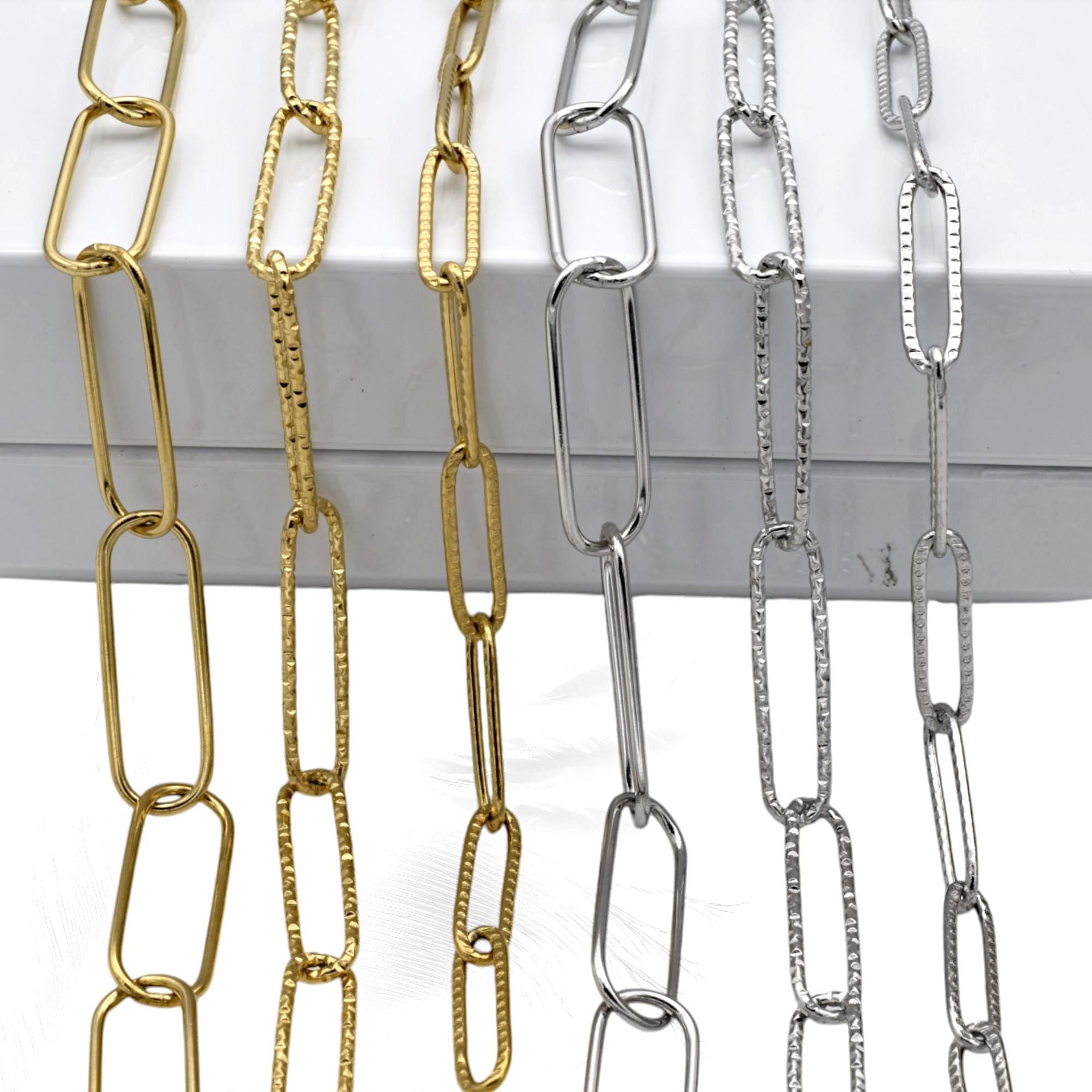 Stainless Steel Paperclip Chain Links – Gold & Silver Rectangle Chains for Jewelry Making – Textured Smooth Link Chain by...