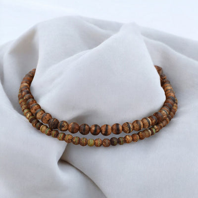 Enhance your jewelry designs with our striking striped Tibetan stone bead. Known for its distinctive patterns and earthy tones, this bead is a perfect blend of natural beauty and cultural significance.