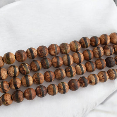 Striped Tibetan Agate Beads - 6mm & 8mm Gemstone Strands