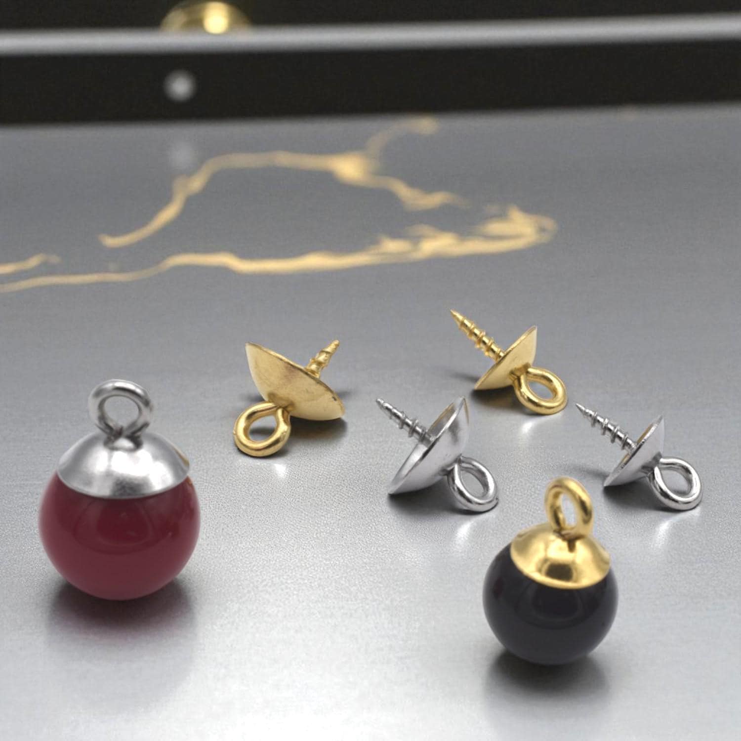 Gold and Silver Screw-Eye Cup Bails for Pendants – 6mm/ 8mm Loop-Top Pegs – 12 pcs Stainless Steel Findings for Resin, Polymer Clay Jewelry
