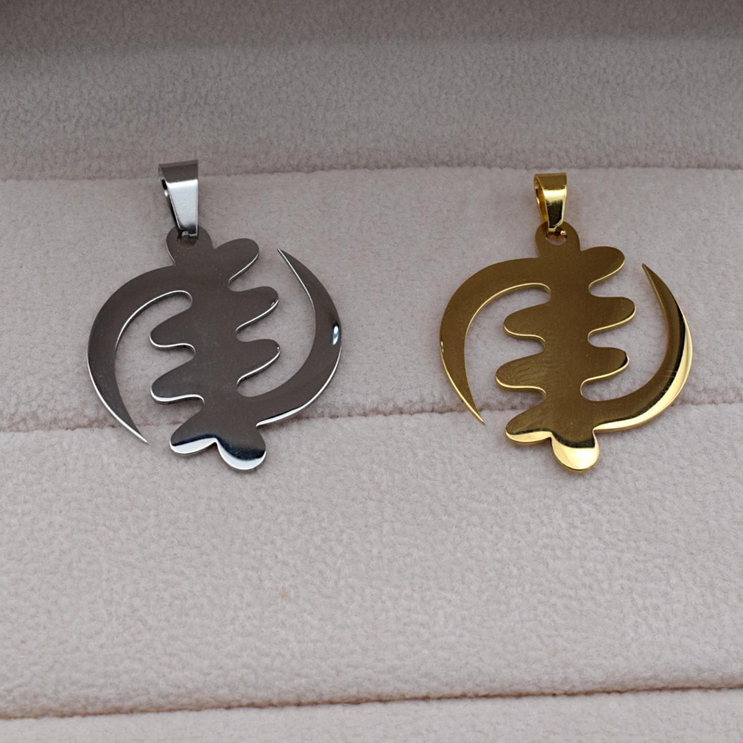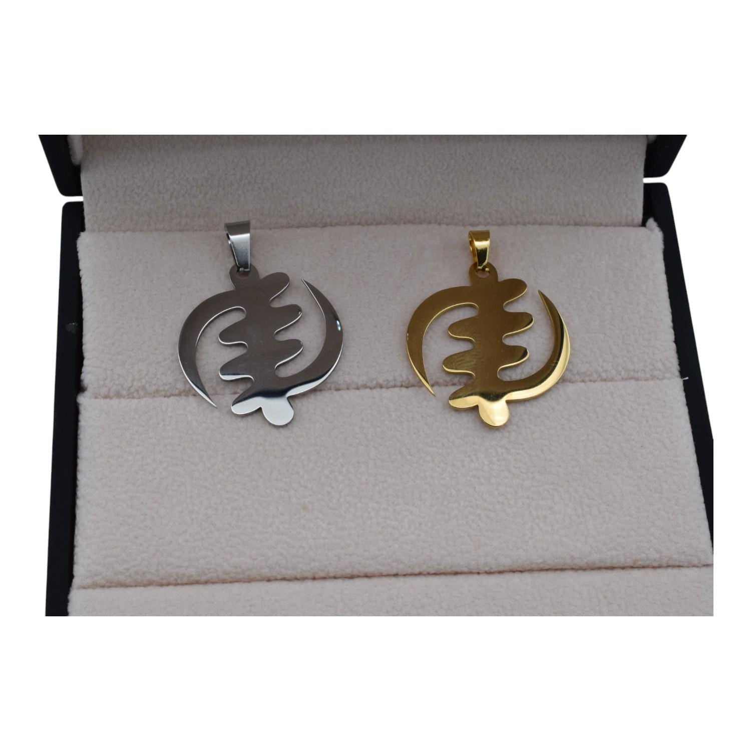 Gold and Silver Stainless Steel Gye Nyame Pendant – Unisex African Symbol Necklace
