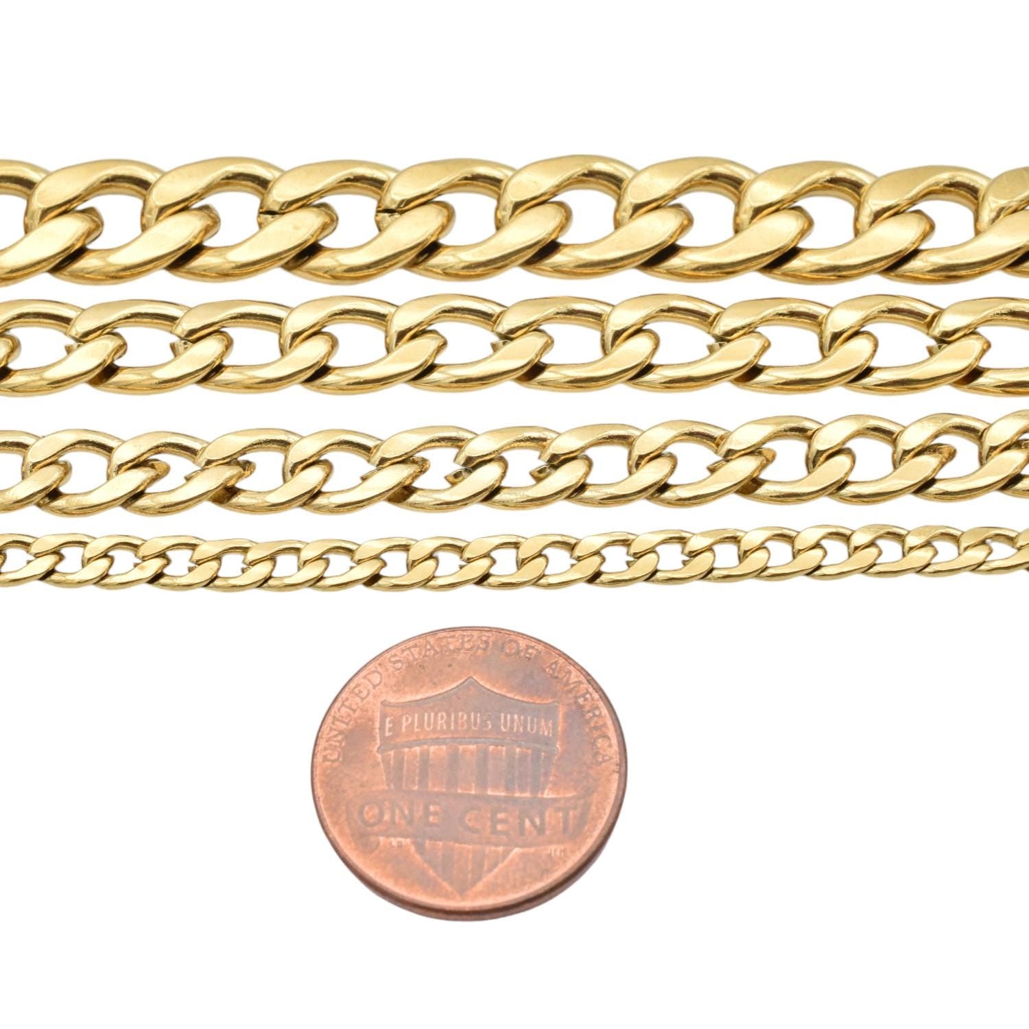 Gold Plated Stainless Steel Curb Chain for Jewelry Making– 4mm-10mm, 3ft/pk