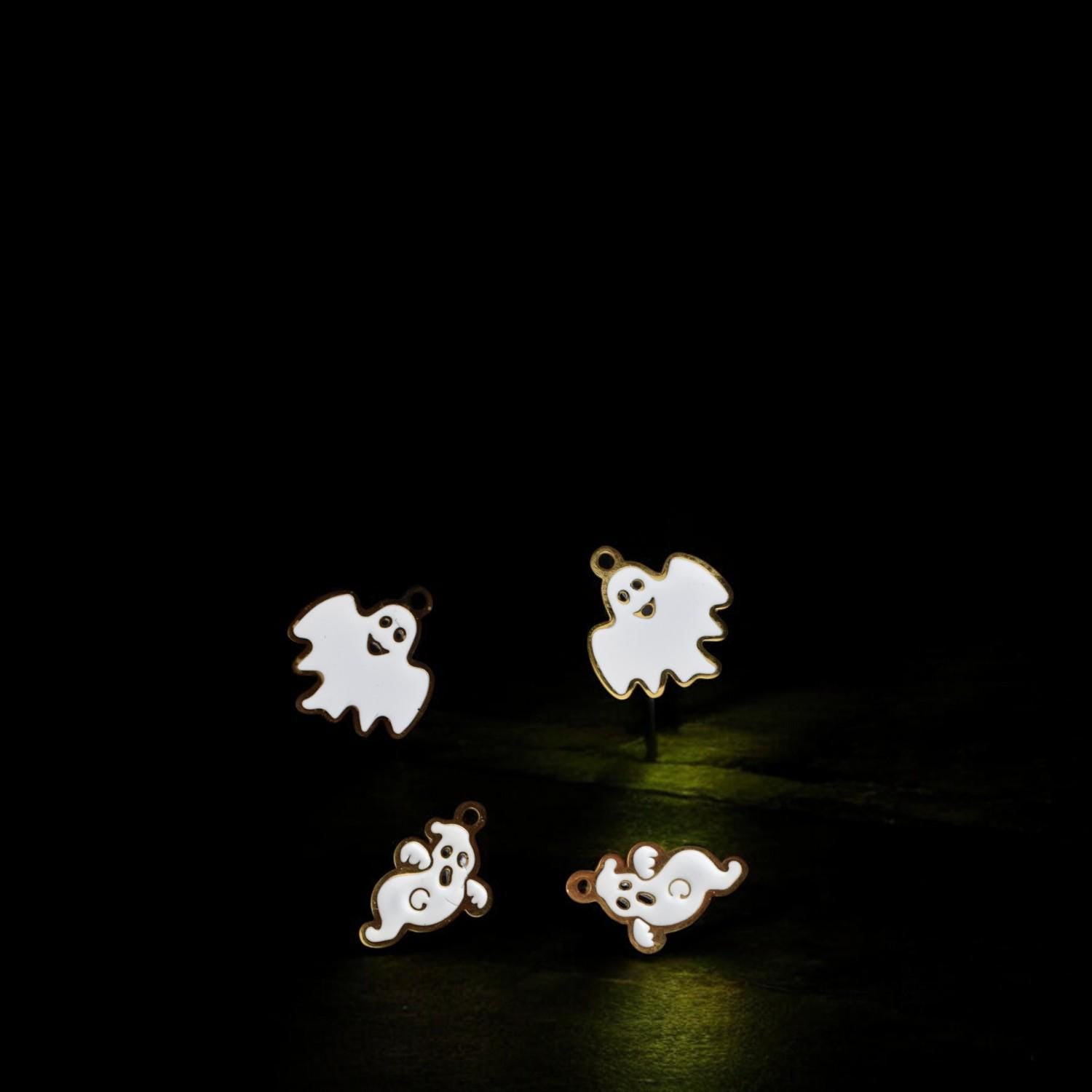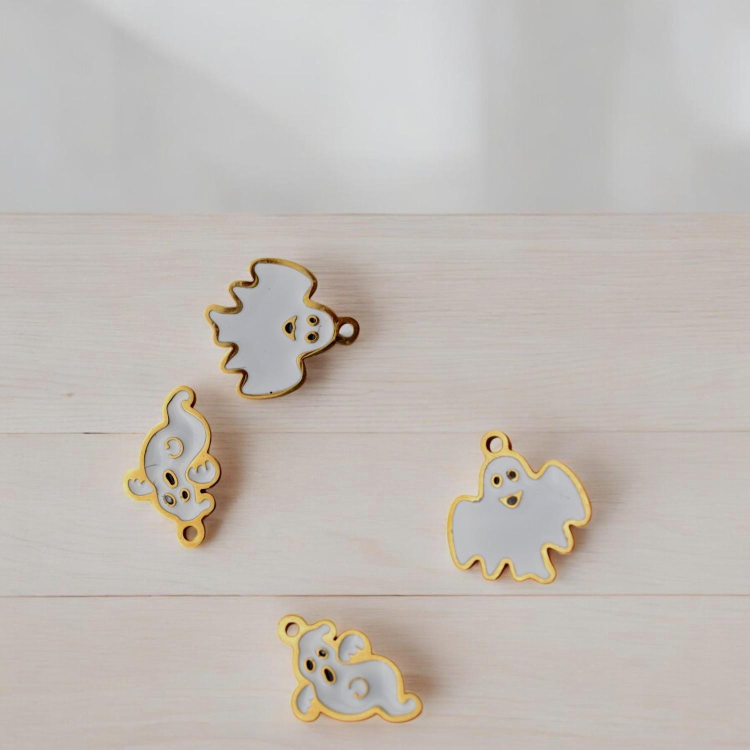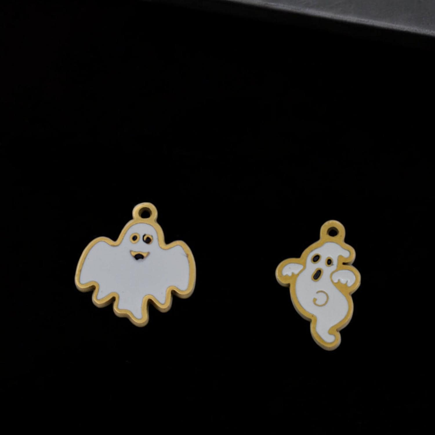 Bring a spooky-cute vibe to your Halloween jewelry with these ghost pendants! Each charm features a playful ghost design with a white enamel center and gold outline, making them perfect for necklaces, earrings, bracelets, or keychains.