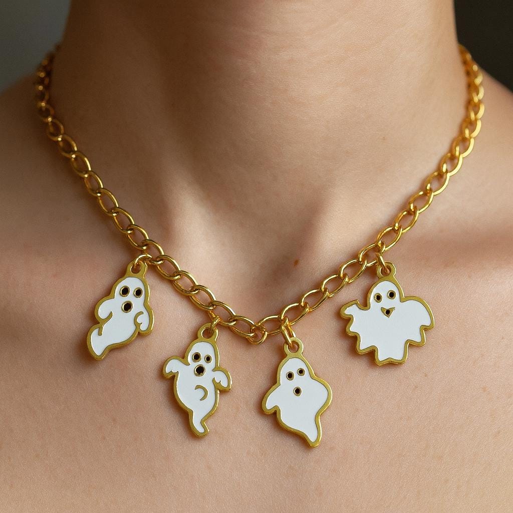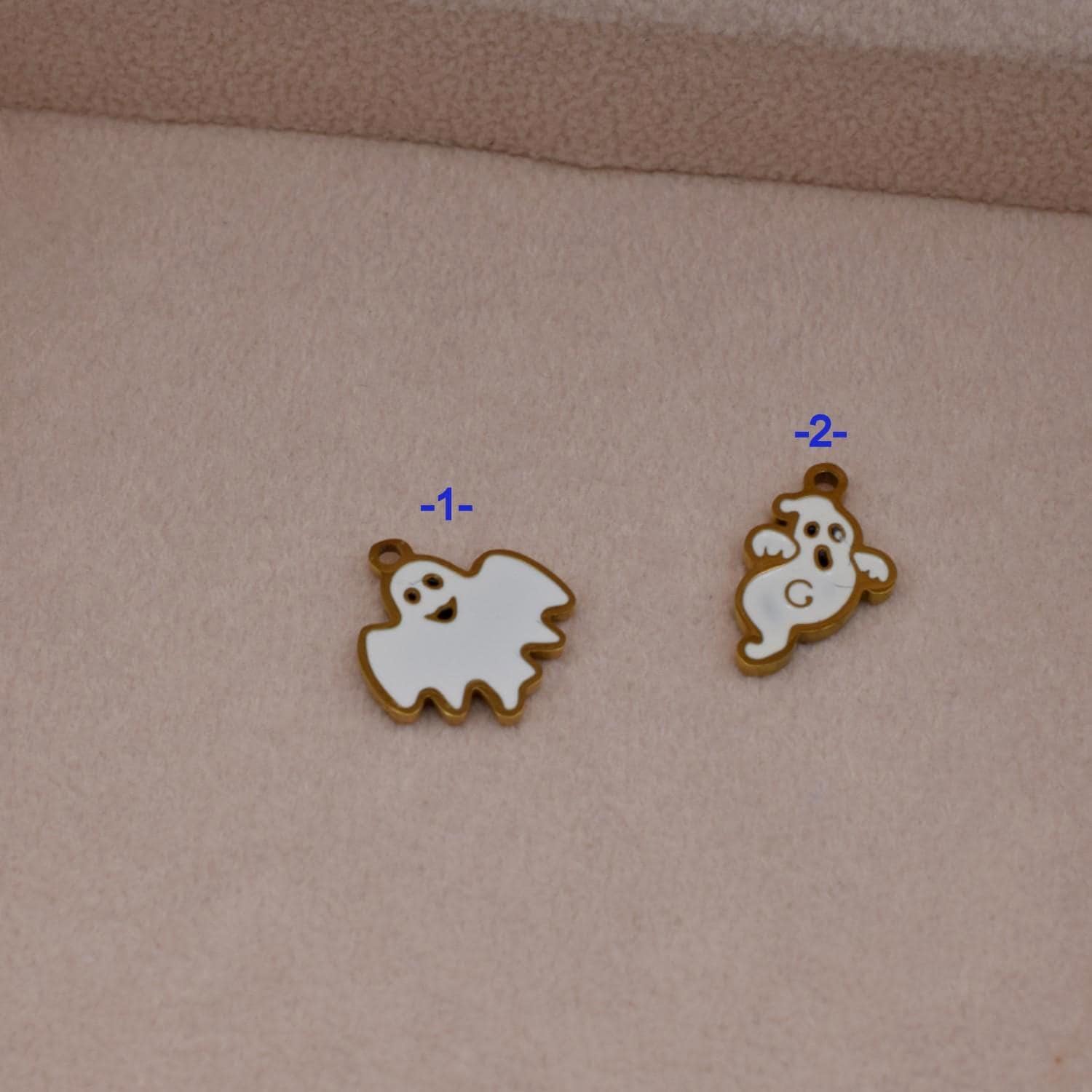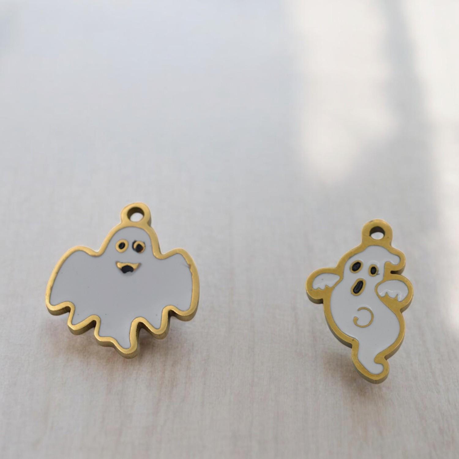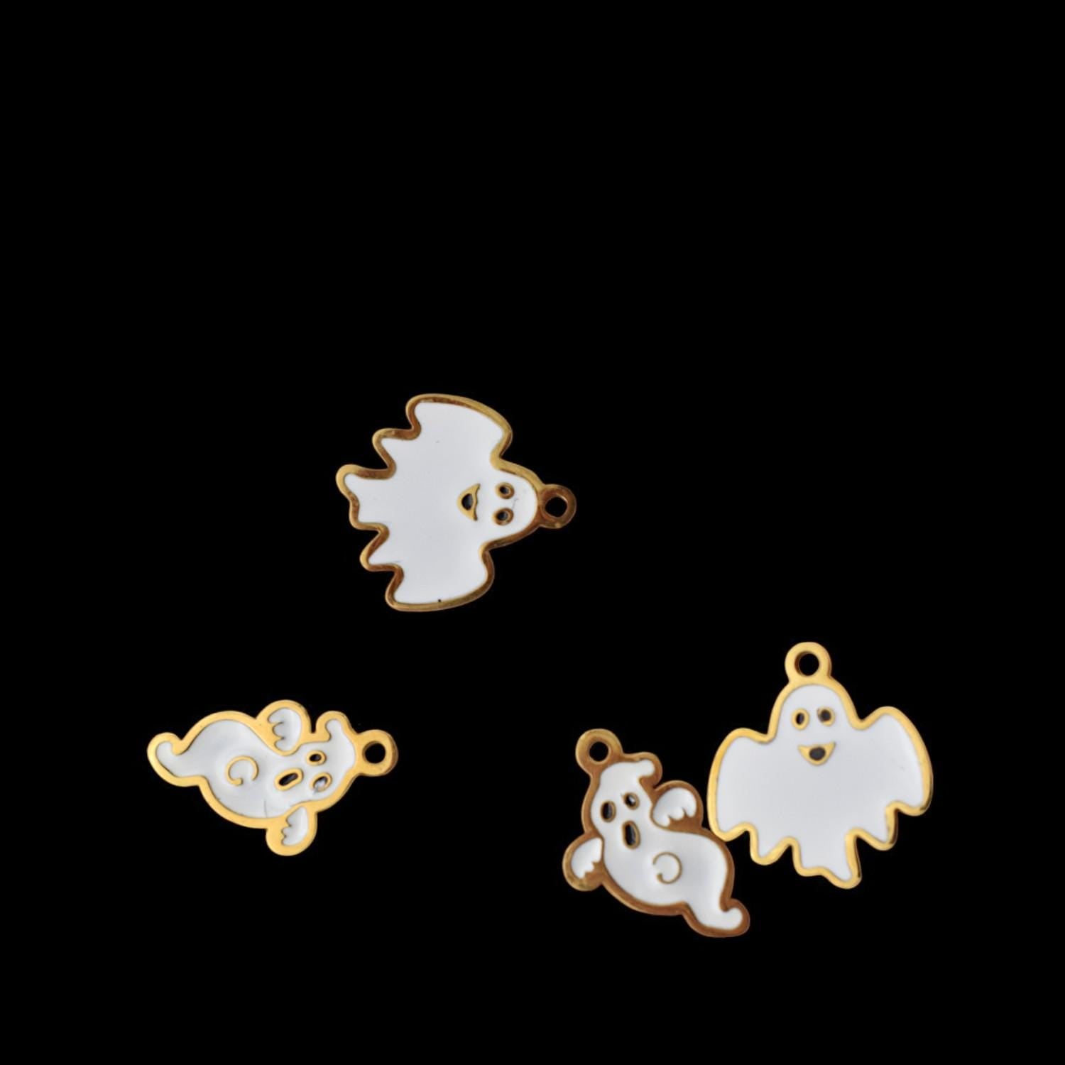 Bring a spooky-cute vibe to your Halloween jewelry with these ghost pendants! Each charm features a playful ghost design with a white enamel center and gold outline, making them perfect for necklaces, earrings, bracelets, or keychains.