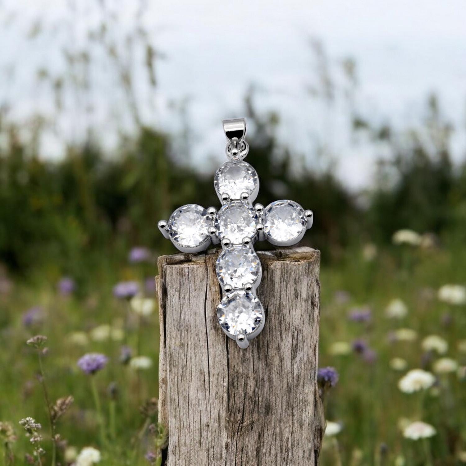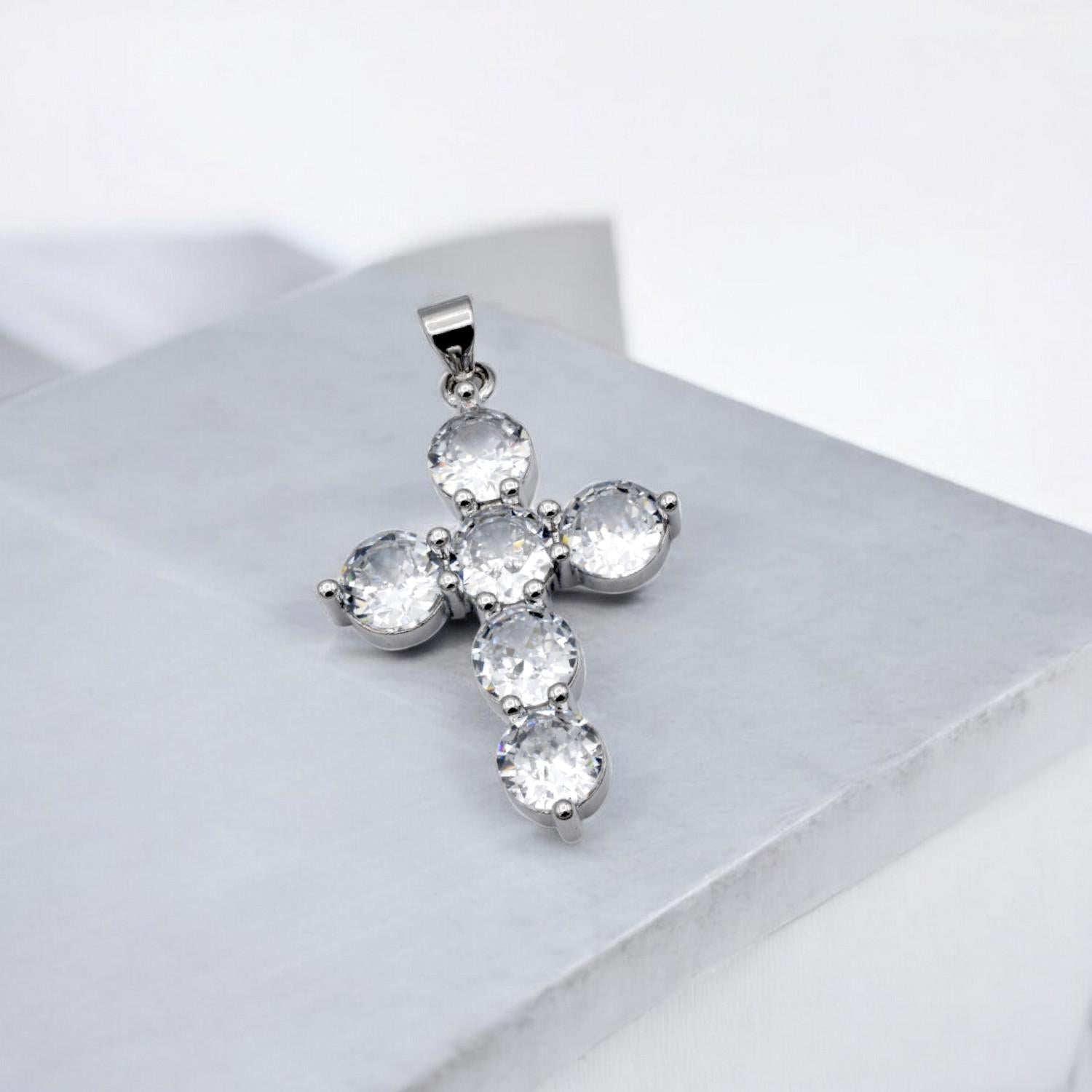 This beautifully crafted cross pendant is a perfect addition to any jewelry collection. Featuring sparkling zirconia stones, it effortlessly combines durability with elegance. Ideal for creating custom necklaces, this cross pendant can be worn for religious, spiritual, or fashion purposes.
