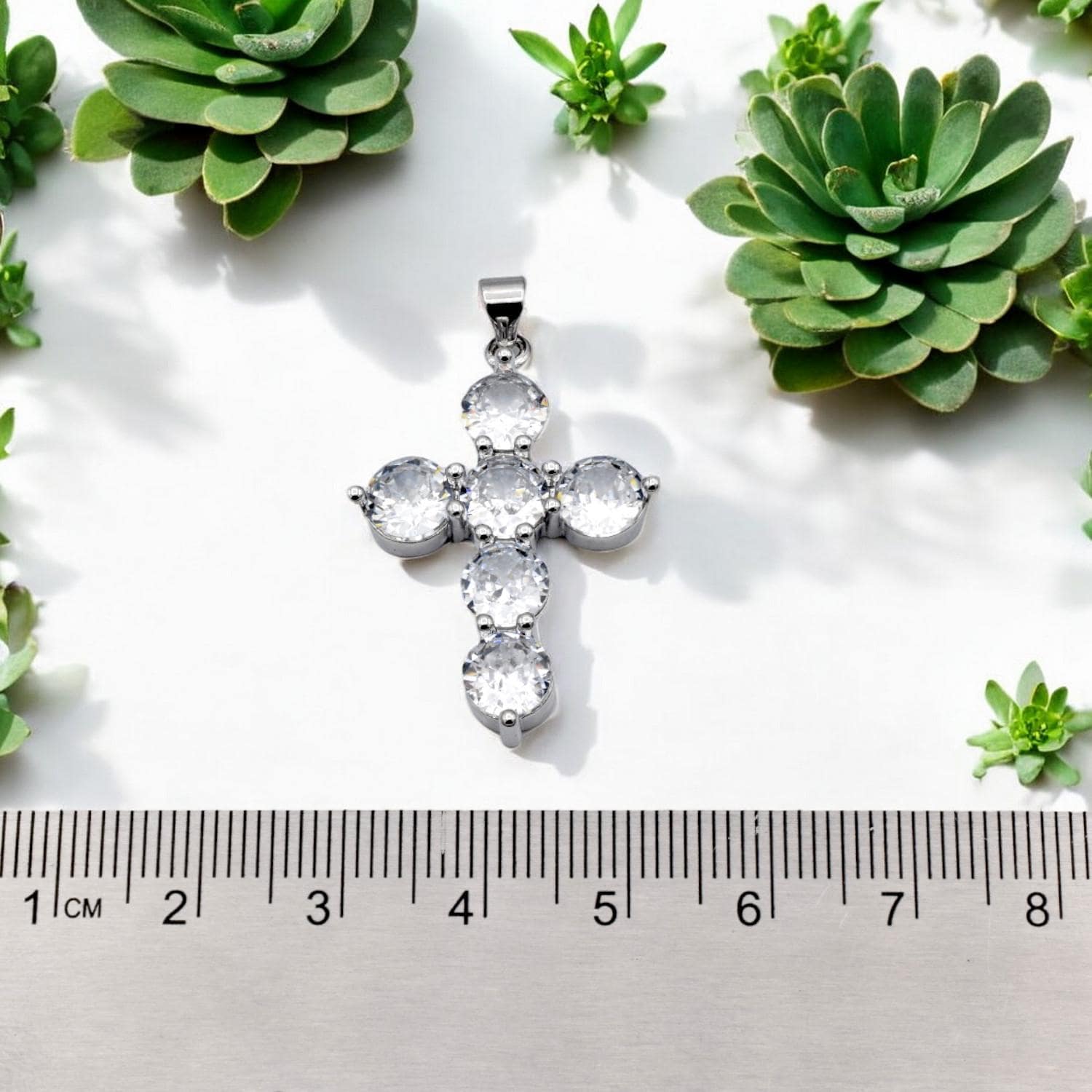 Silver Plated CZ Zirconia Cross Pendant for necklace and jewelry making 32x23mm jewelry making supplies