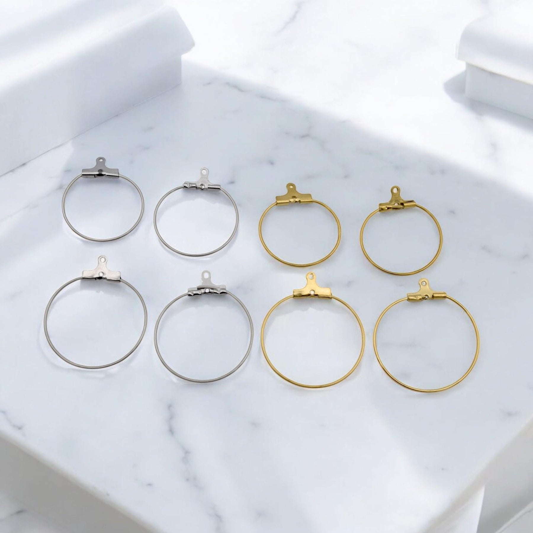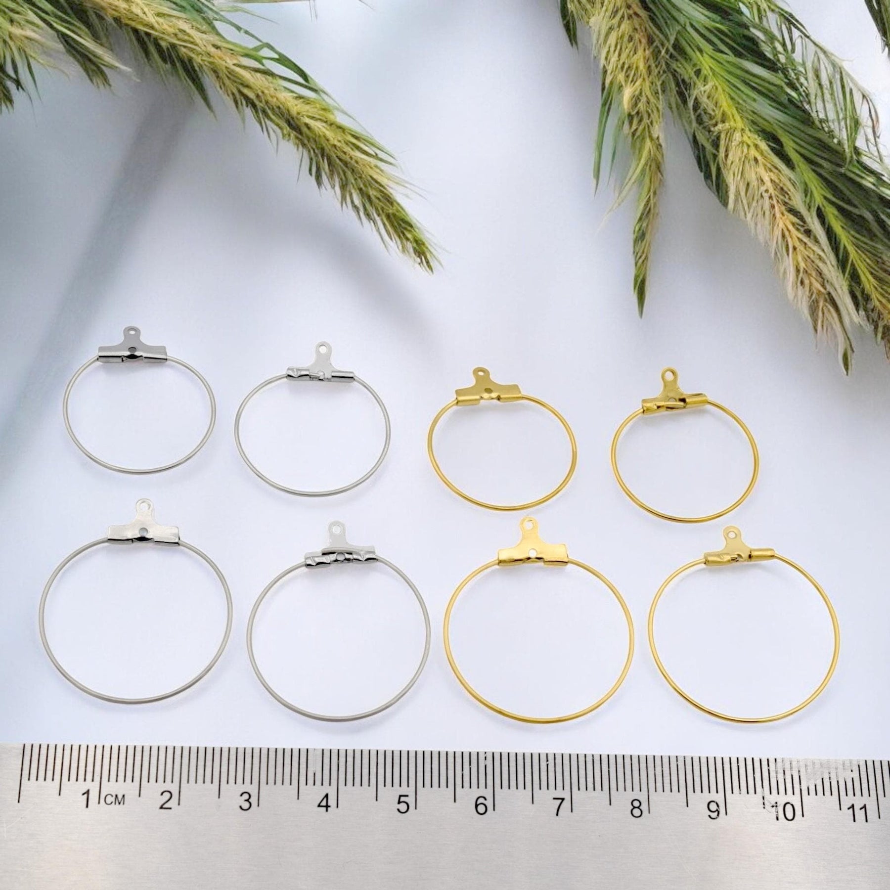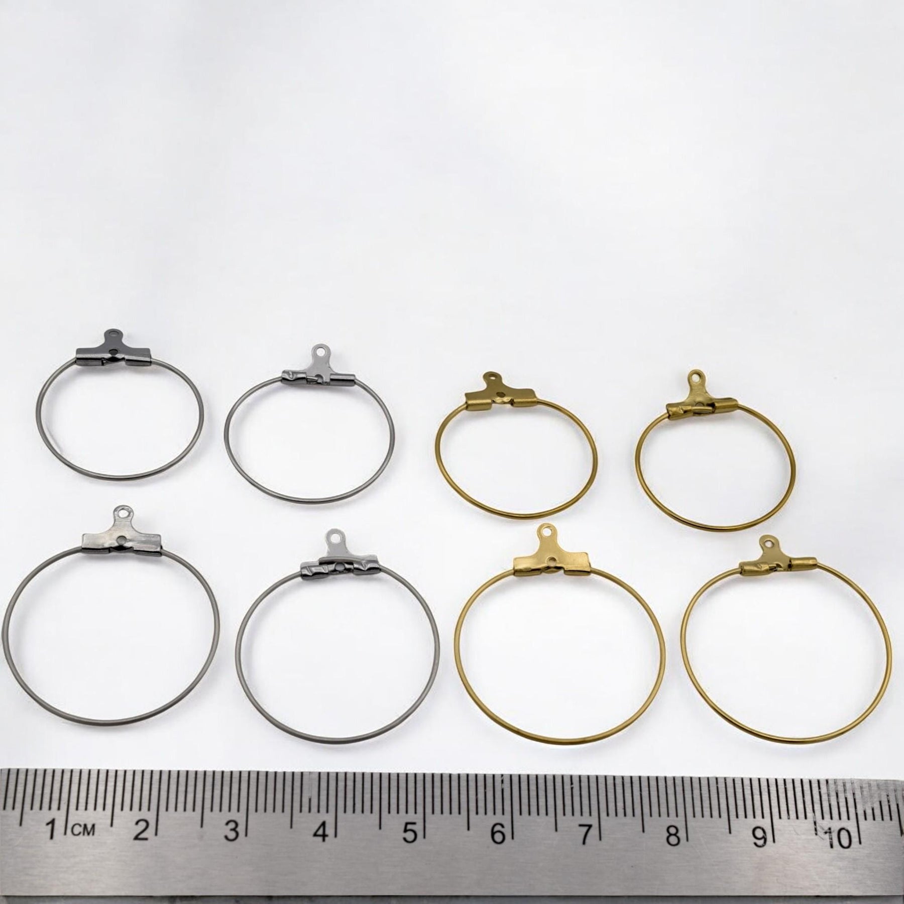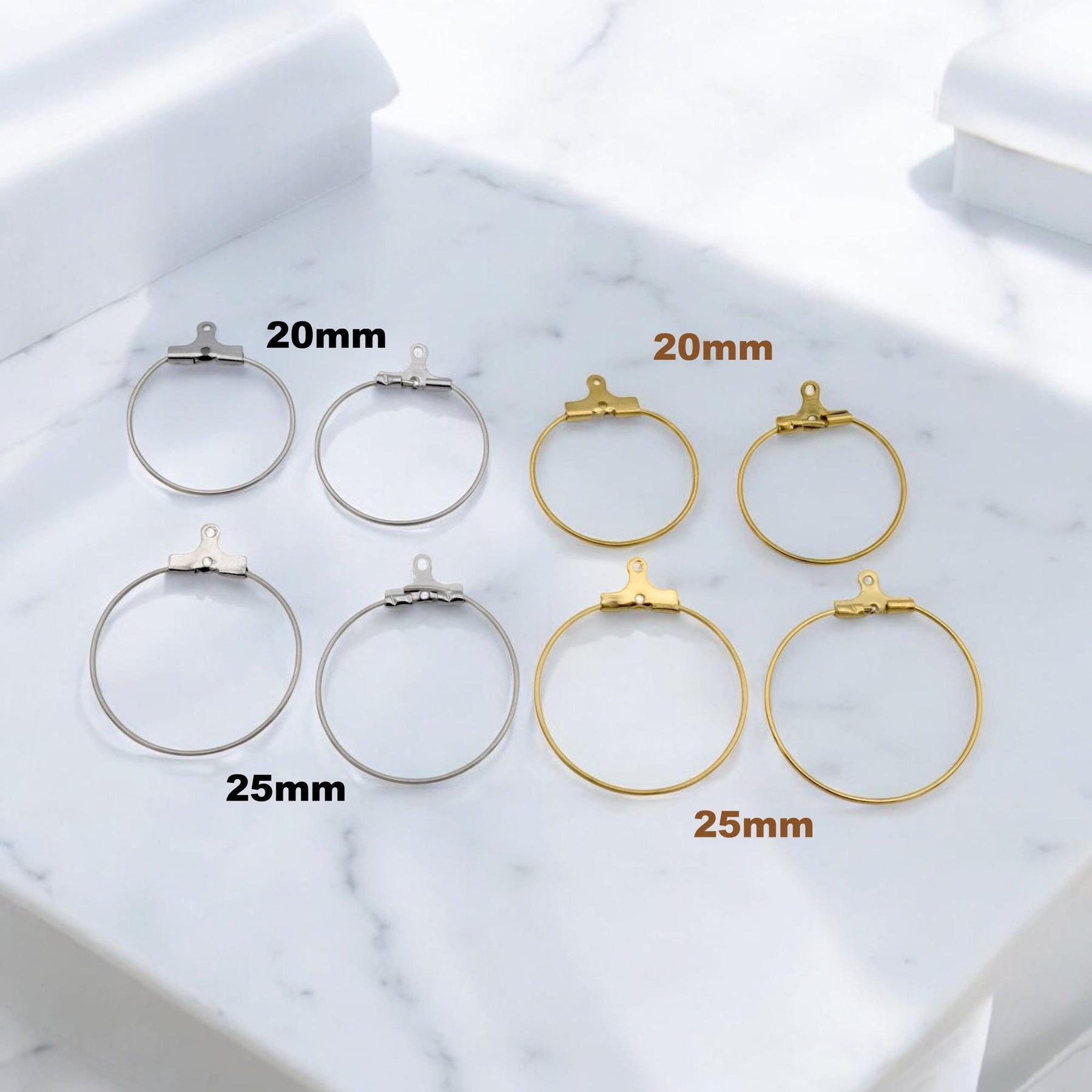 Stainless Steel and Gold Plated Clip On Wire Hoop Rings – Durable and Versatile 20mm and 25mm jewelry making supplies