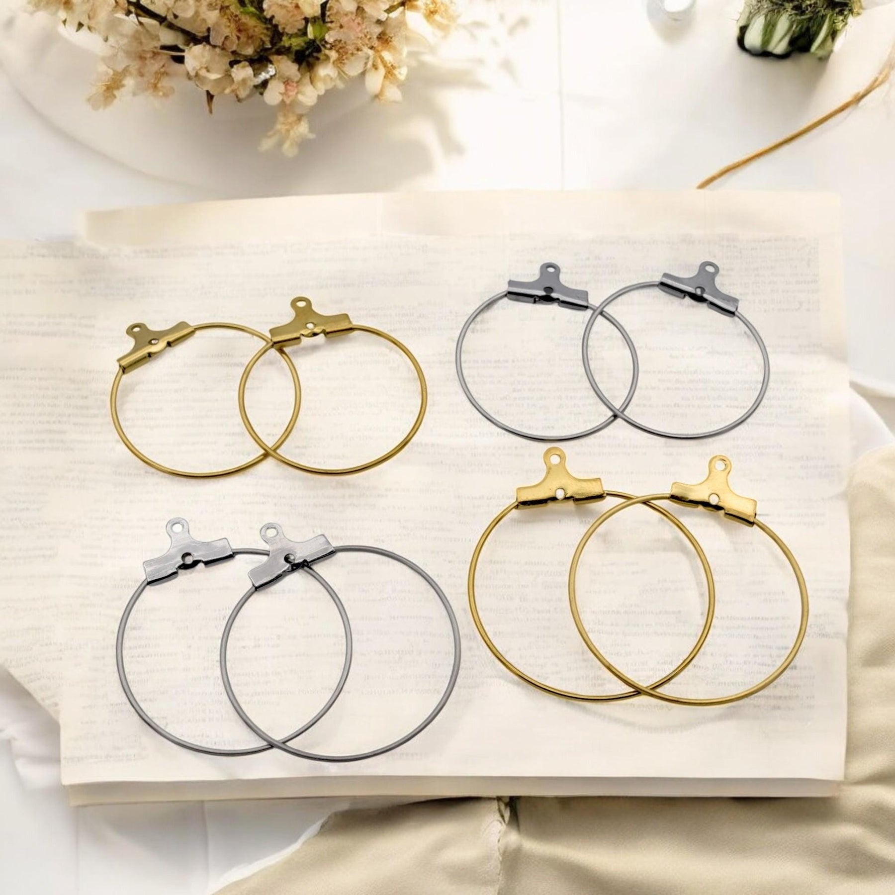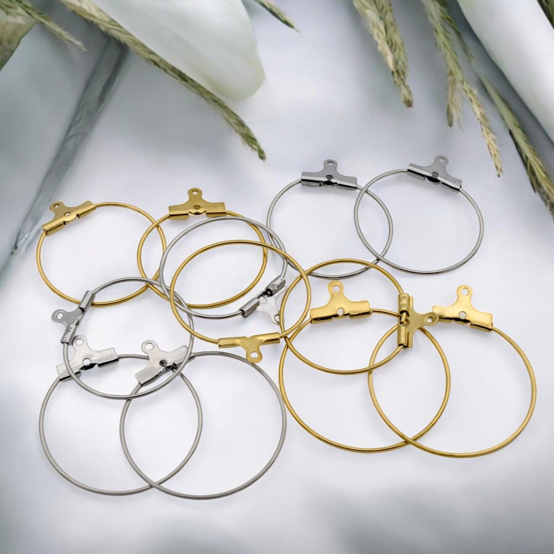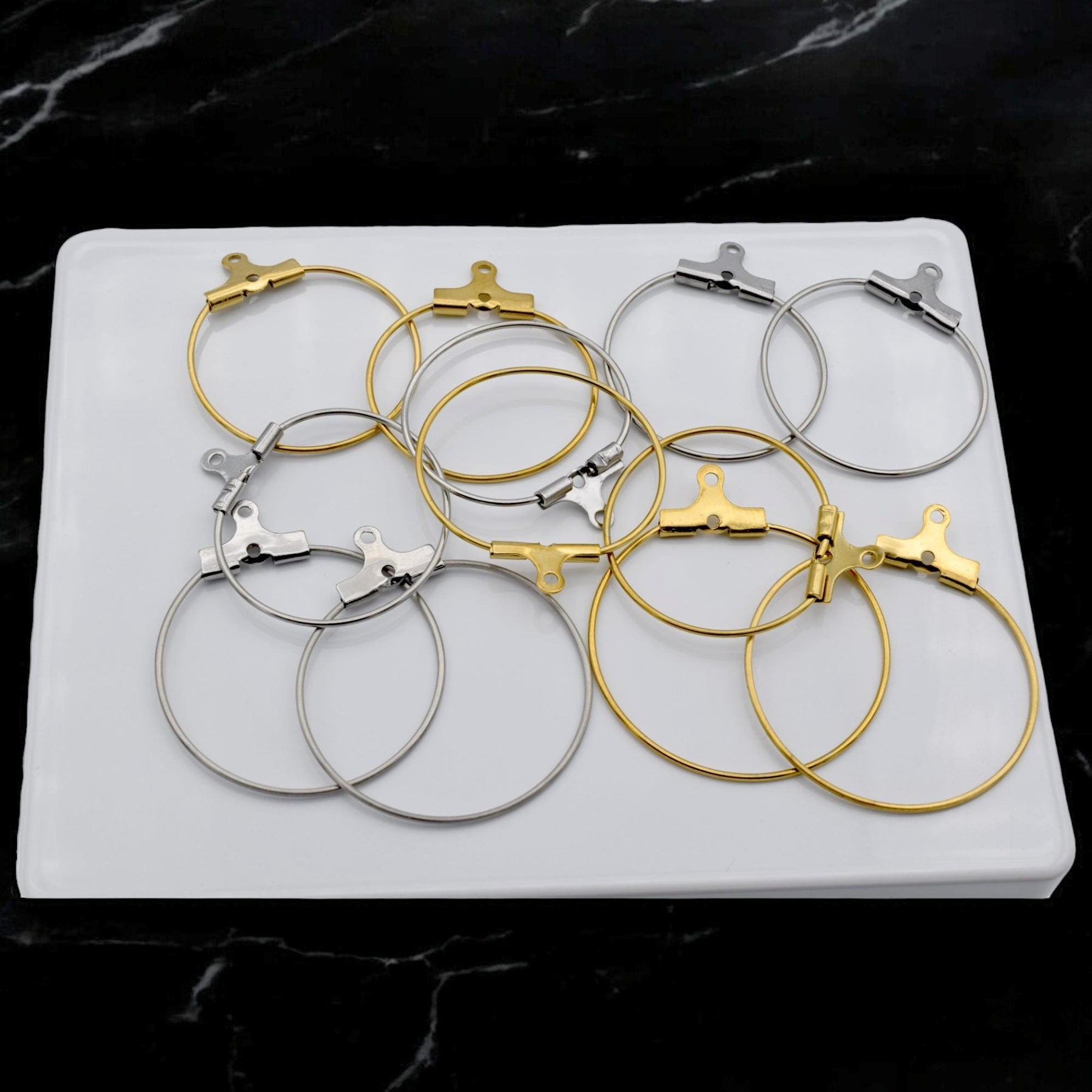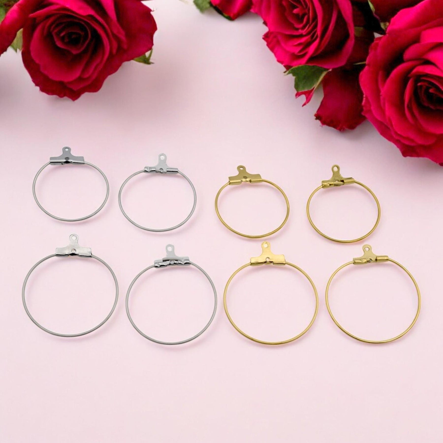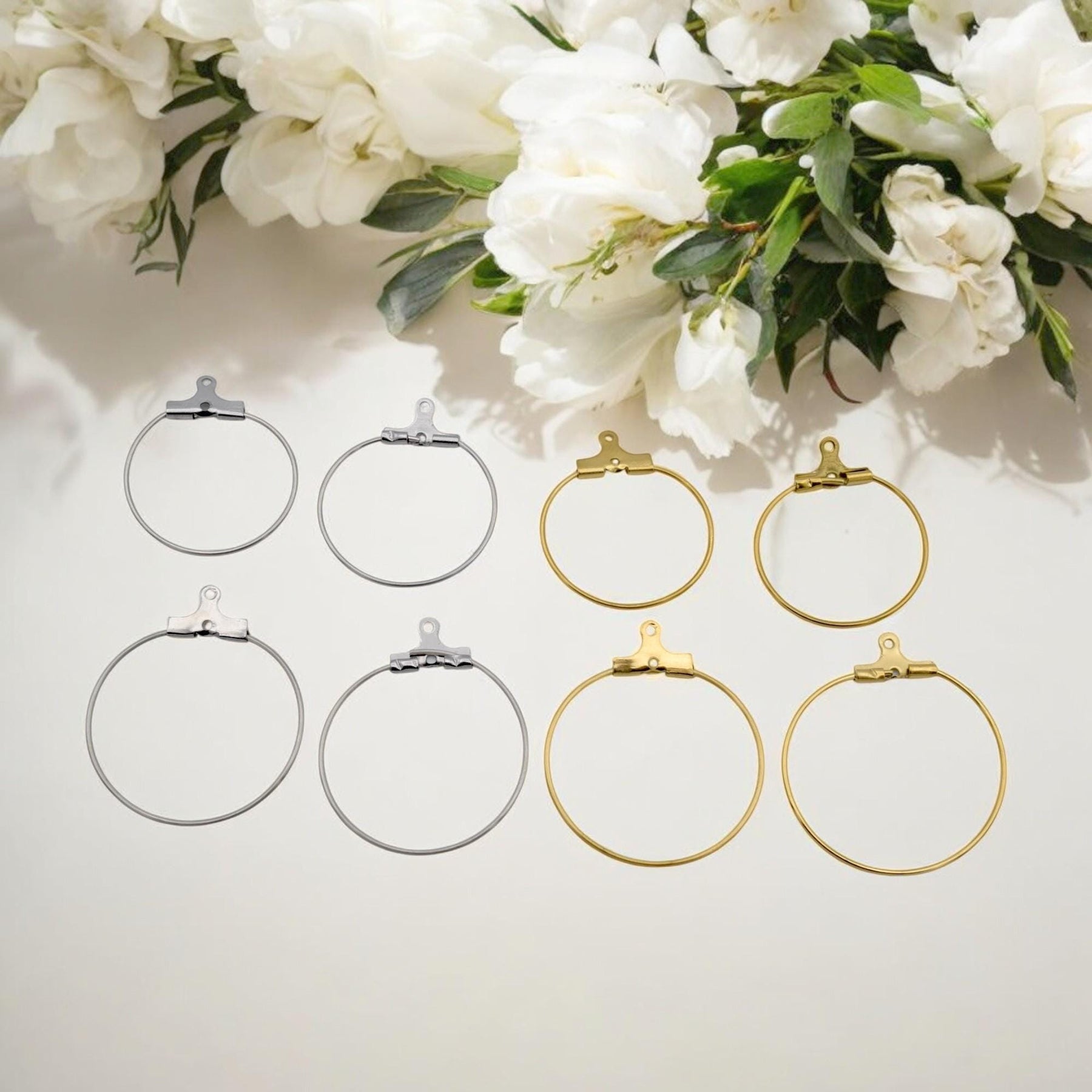 Stainless Steel and Gold Plated Clip On Wire Hoop Rings – Durable and Versatile 20mm and 25mm jewelry making supplies