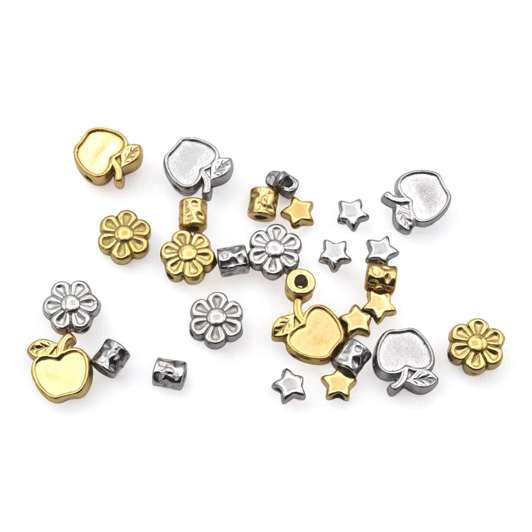 Stainless Steel Charm Bead Spacer   Apple, Daisy, Star, Barrel   Gold /Silver‑Tone for DIY Jewelry, Bracelet, Necklace, Ha...