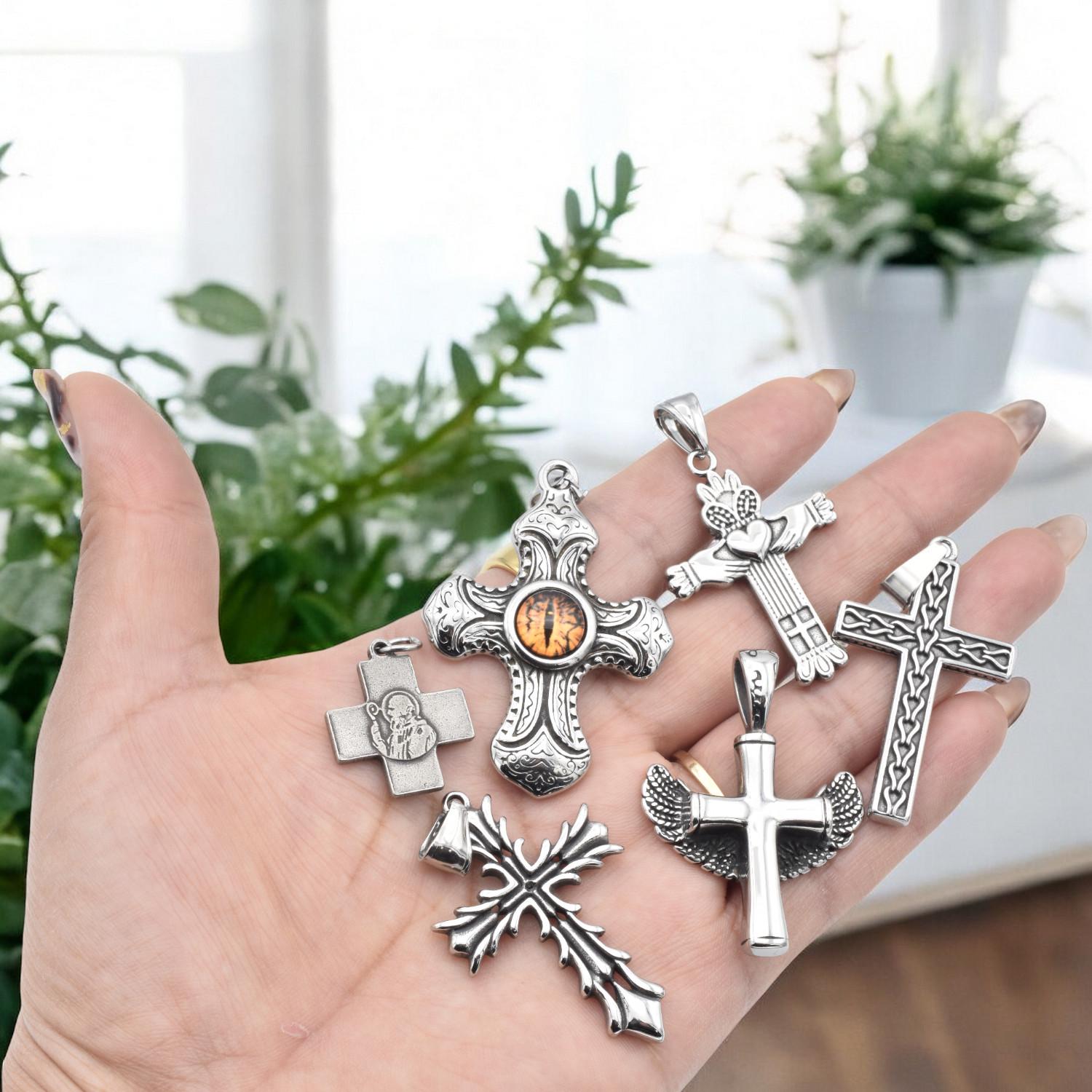 Stainless Steel Cross Pendants for Necklaces & DIY Jewelry