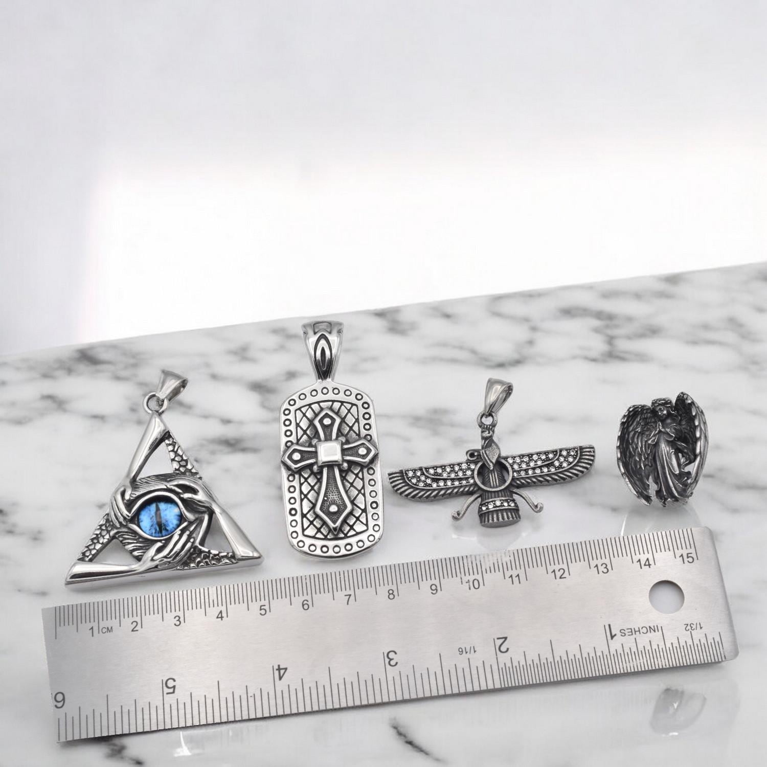 Stainless Steel Pendants and Charms for jewelry making Eye of Providence, Cross, Angel, Ahura Mazda jewelry making supplie...