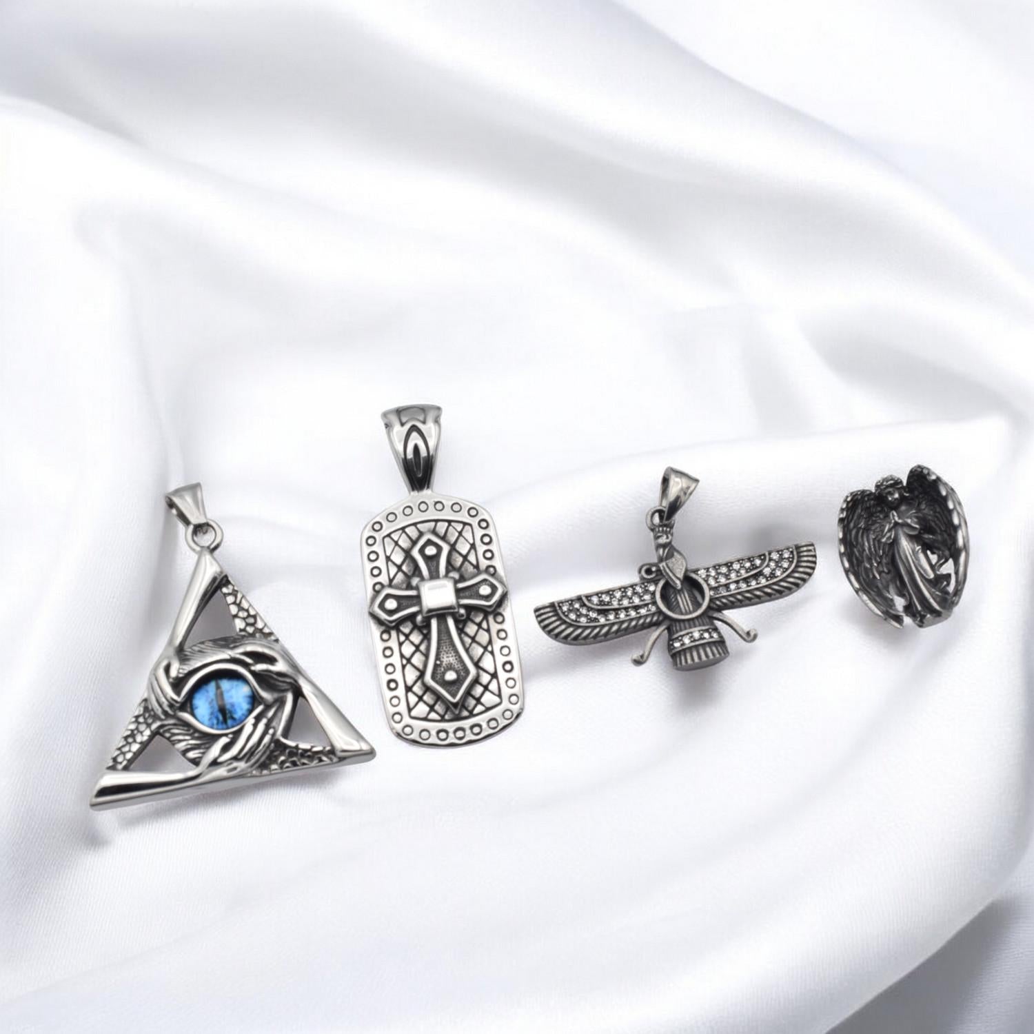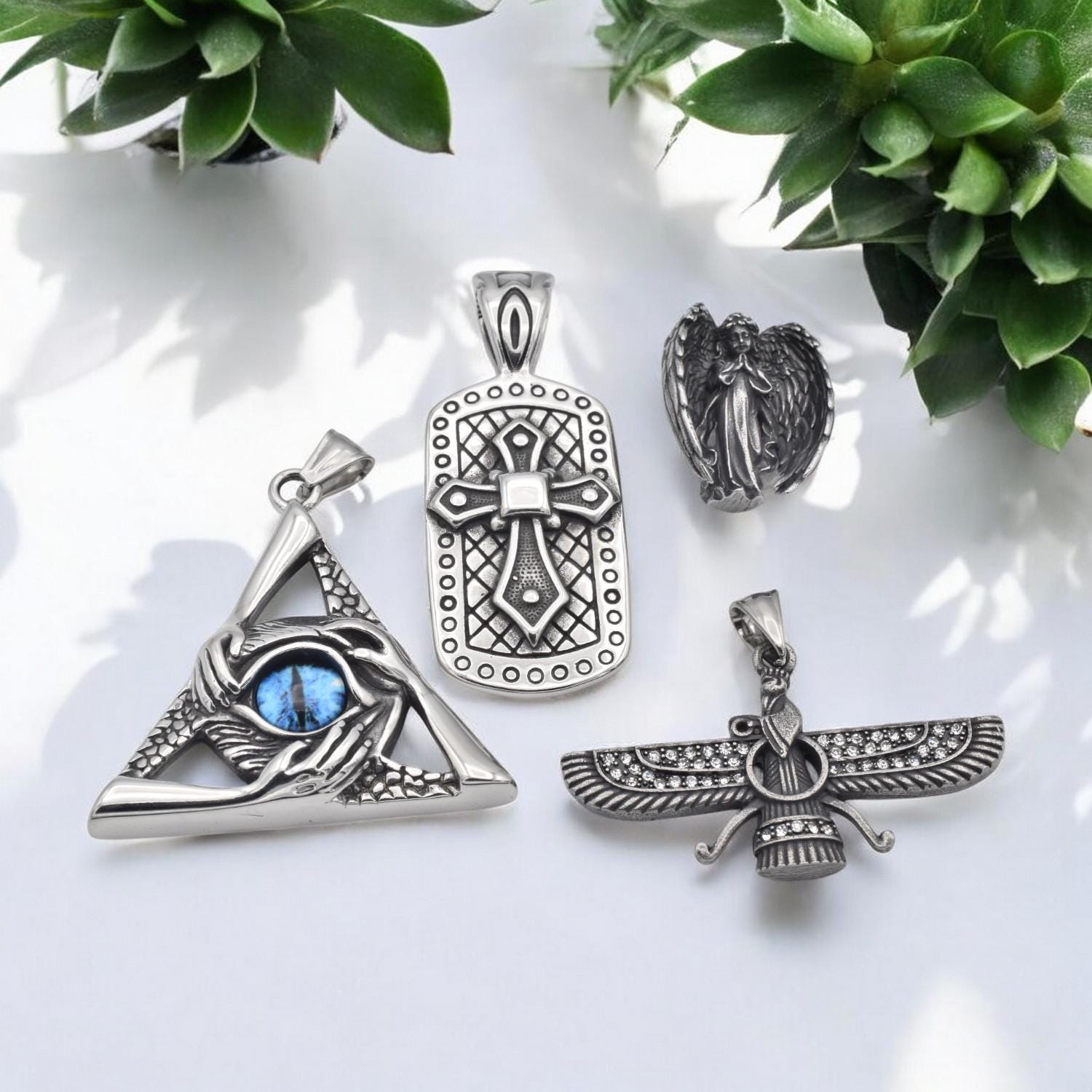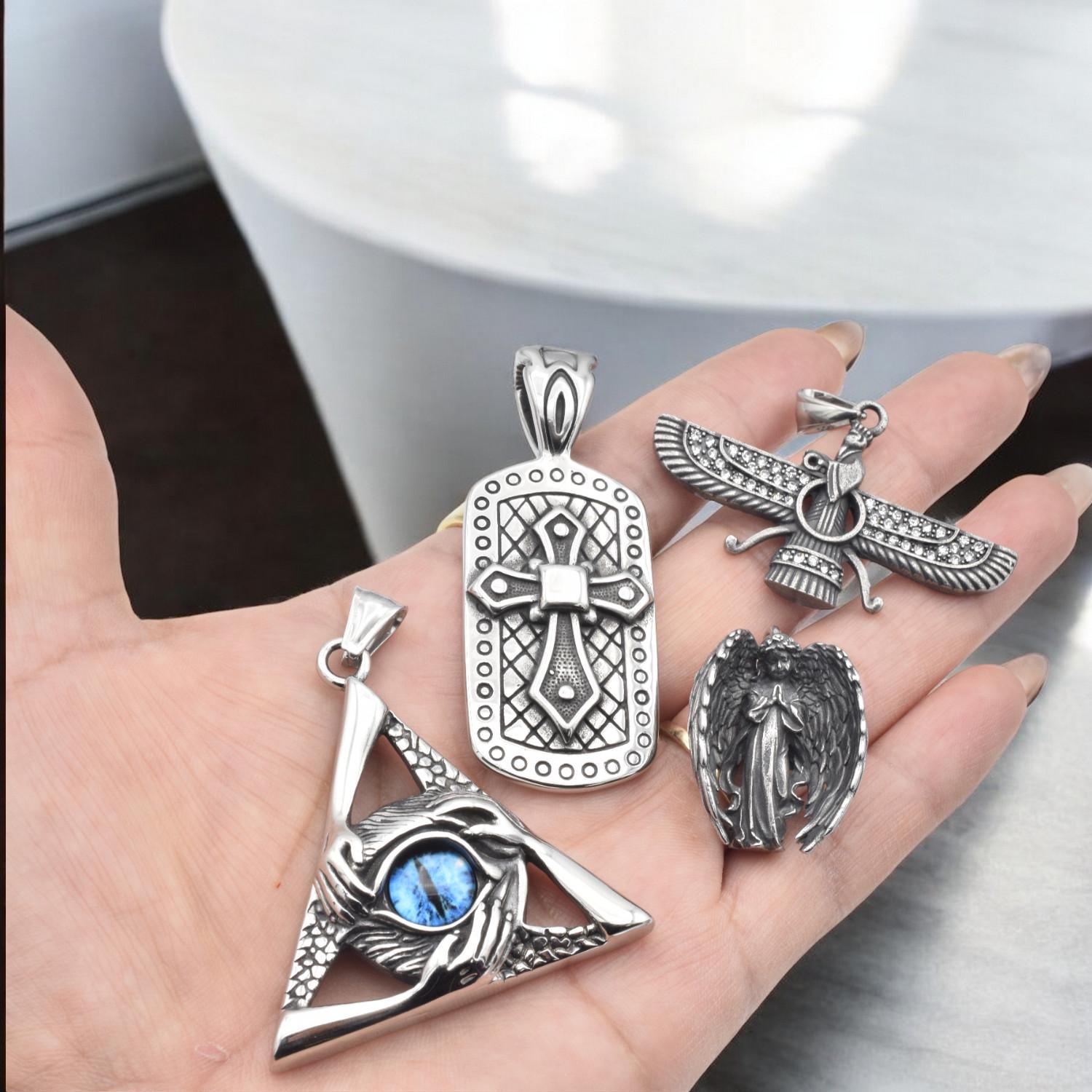Stainless Steel Pendants and Charms for jewelry making Eye of Providence, Cross, Angel, Ahura Mazda jewelry making supplies