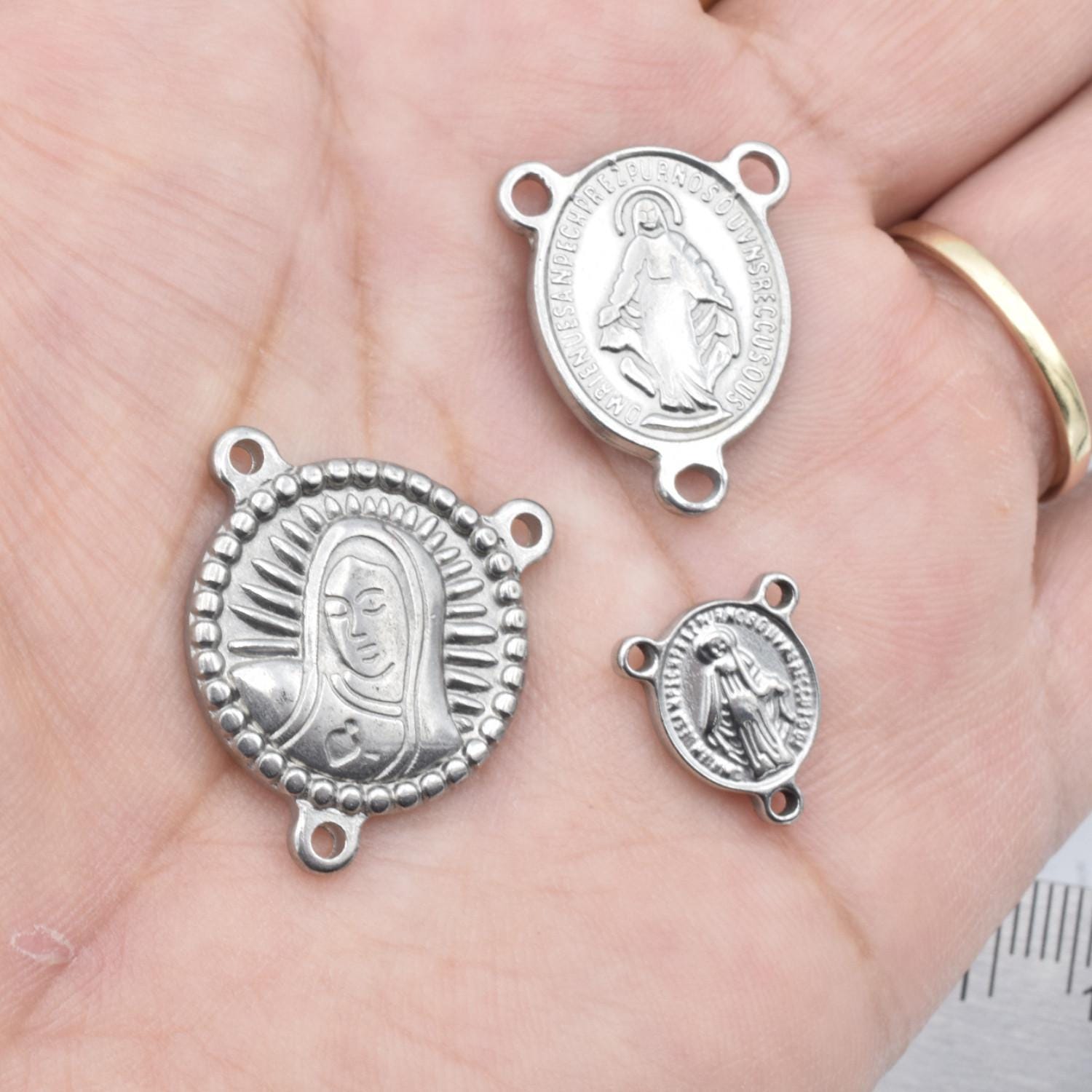 Stainless Steel Rosary Centers for Rosary and jewelry making Virgin Mary Jesus Saints for Rosary DIY jewelry making supplies