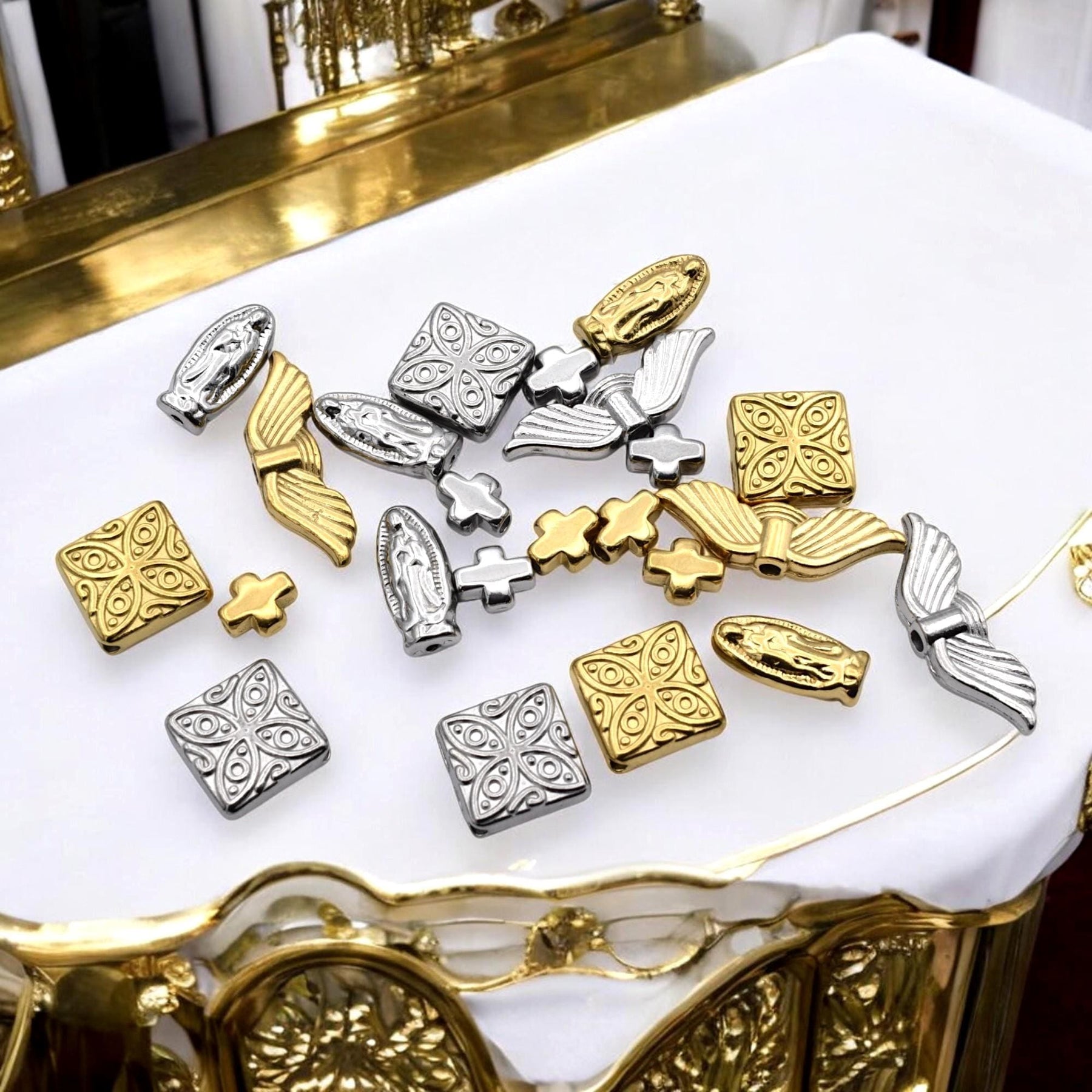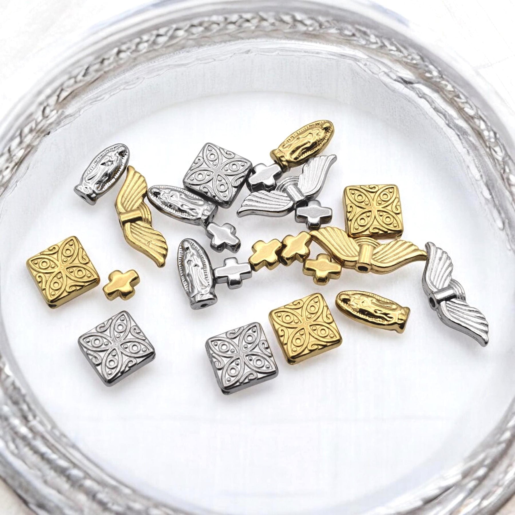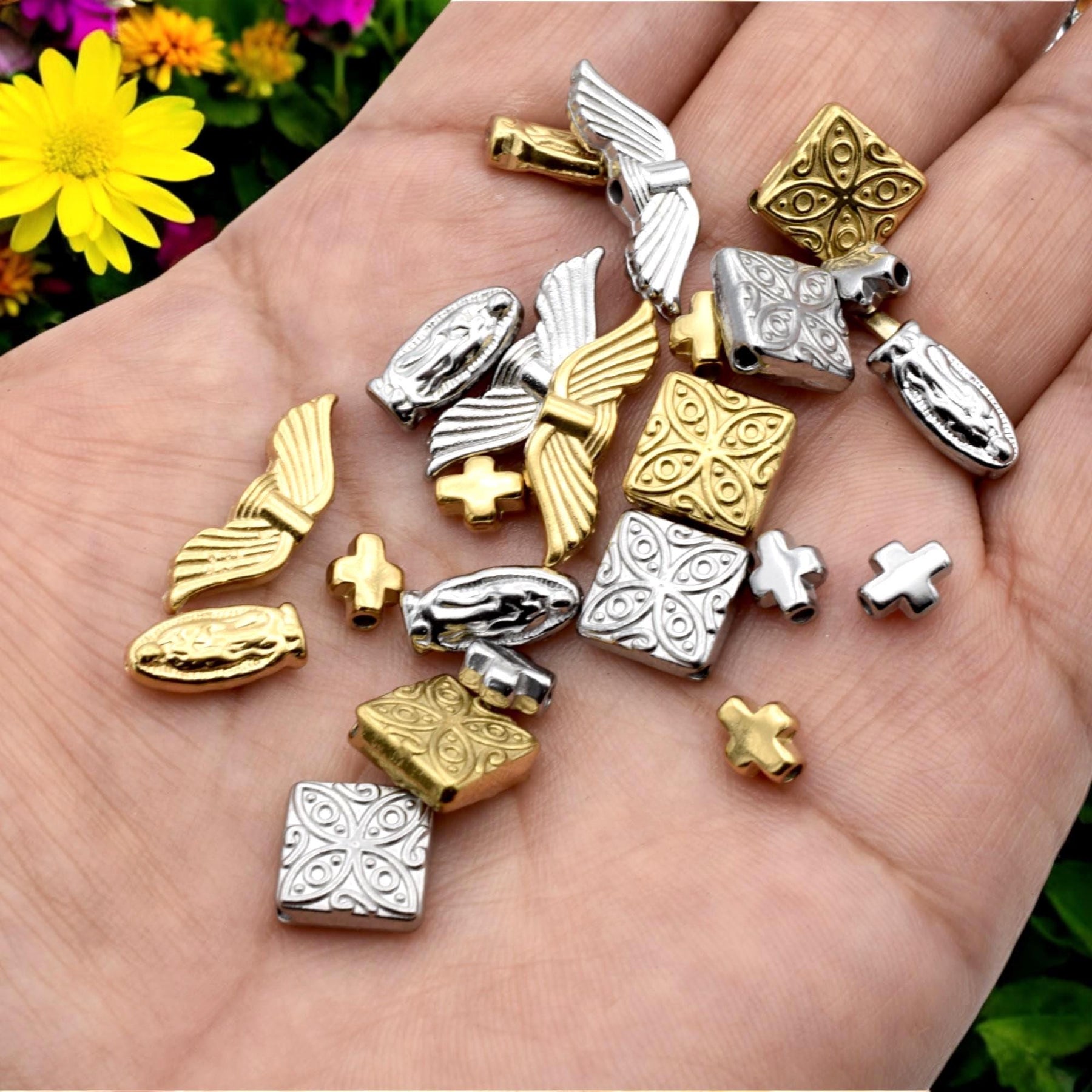 Stainless Steel Spacer Bead  – Cross, Angel Wing, Mary Medal, Ornate Square, Gold / Silver for Beading Rosary / Bracelet/N...