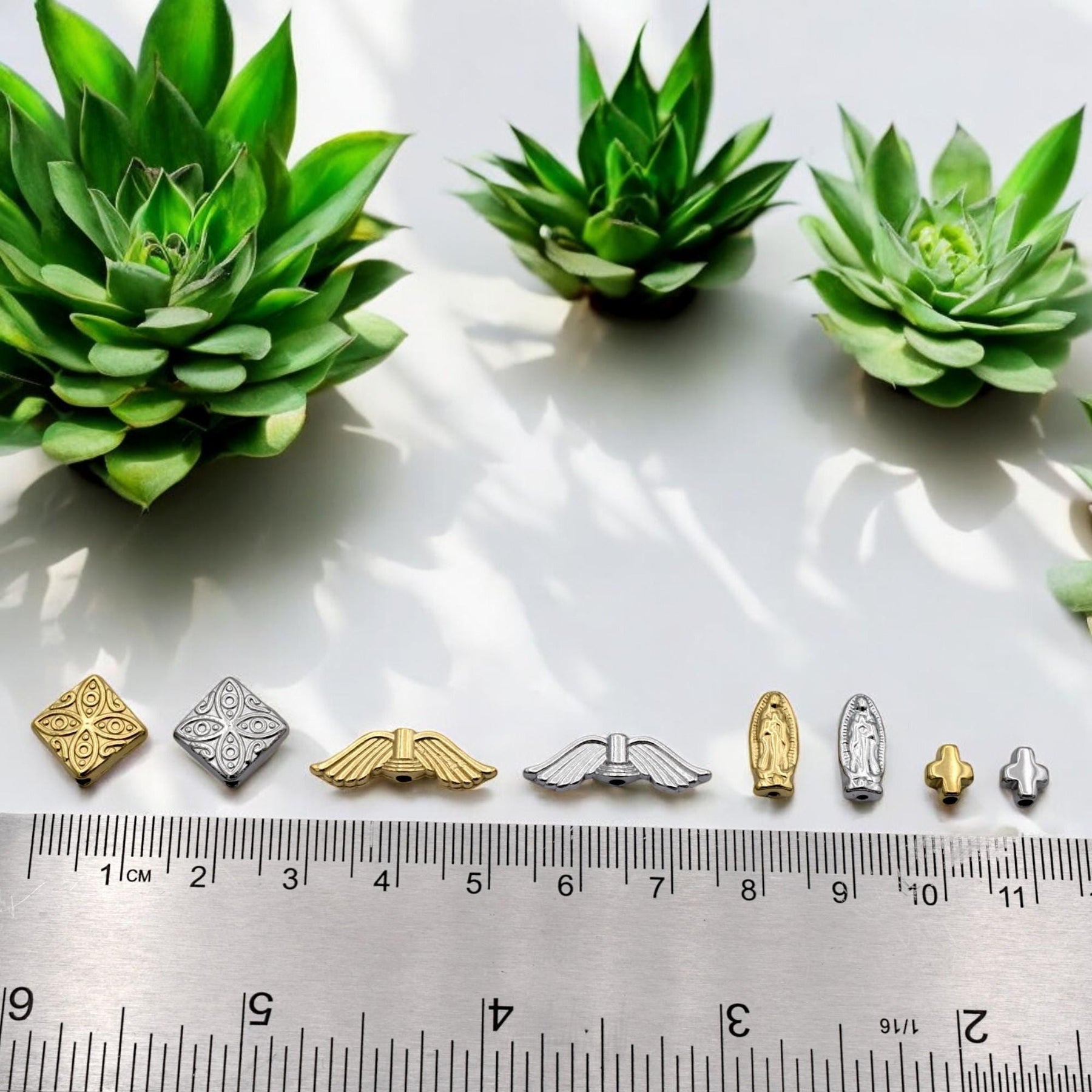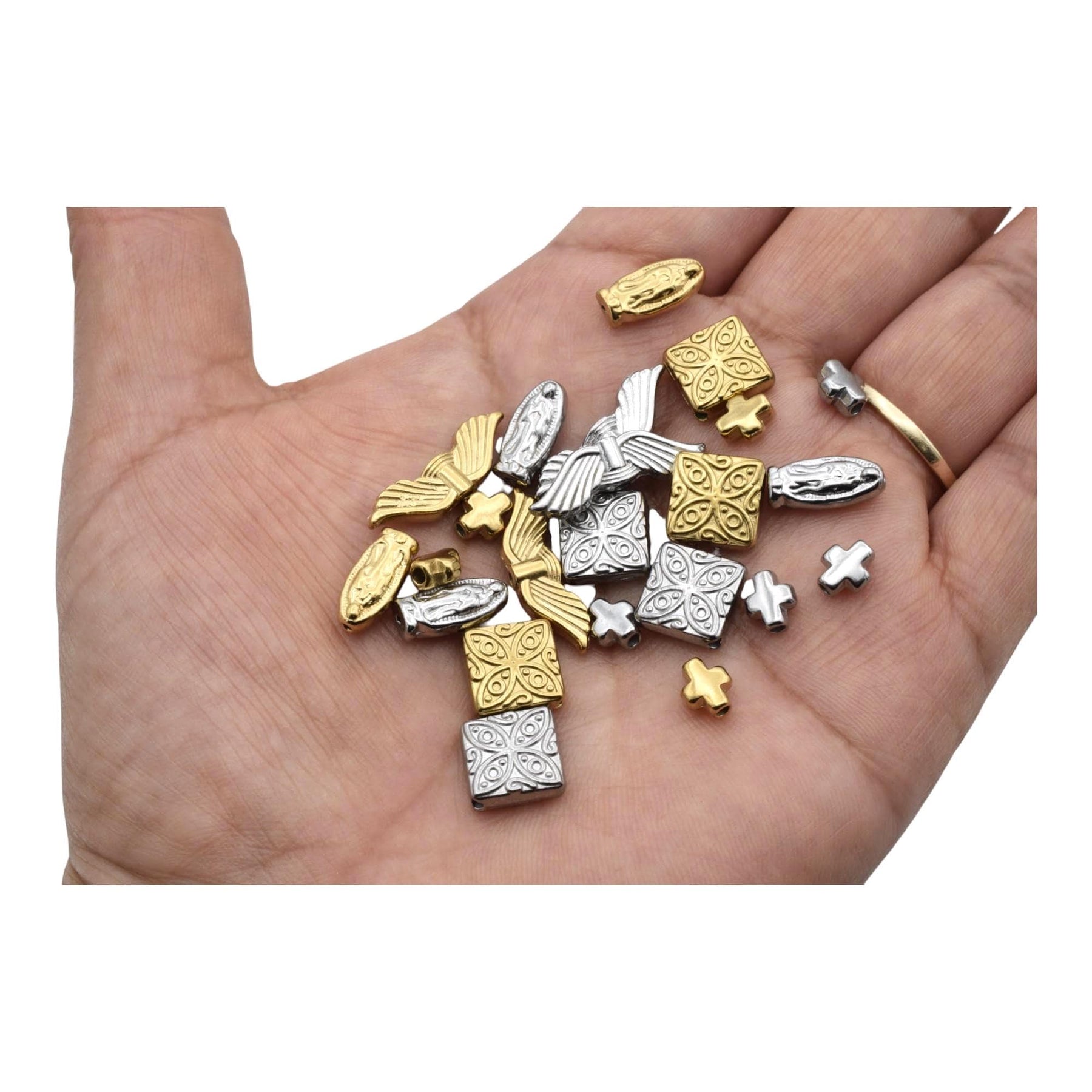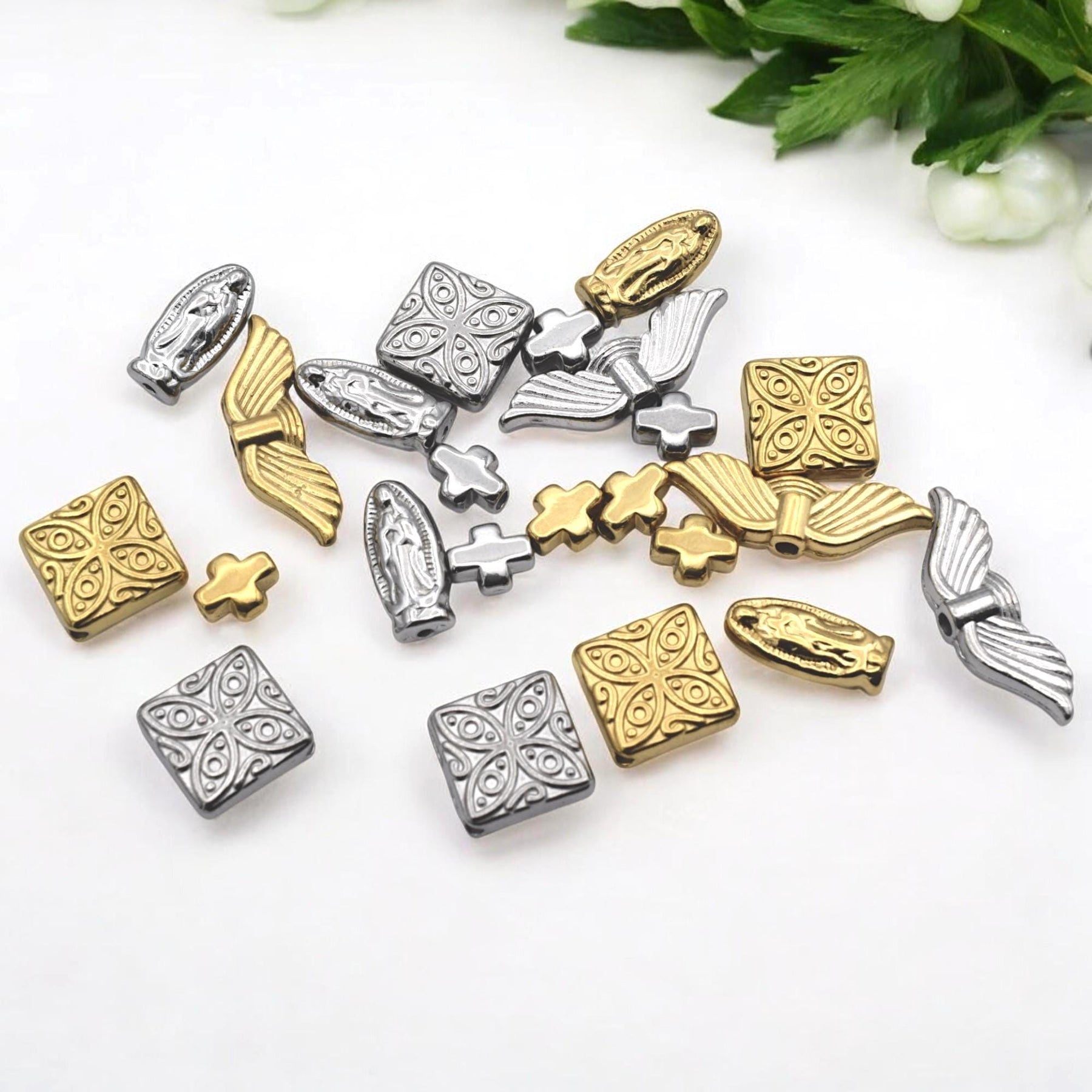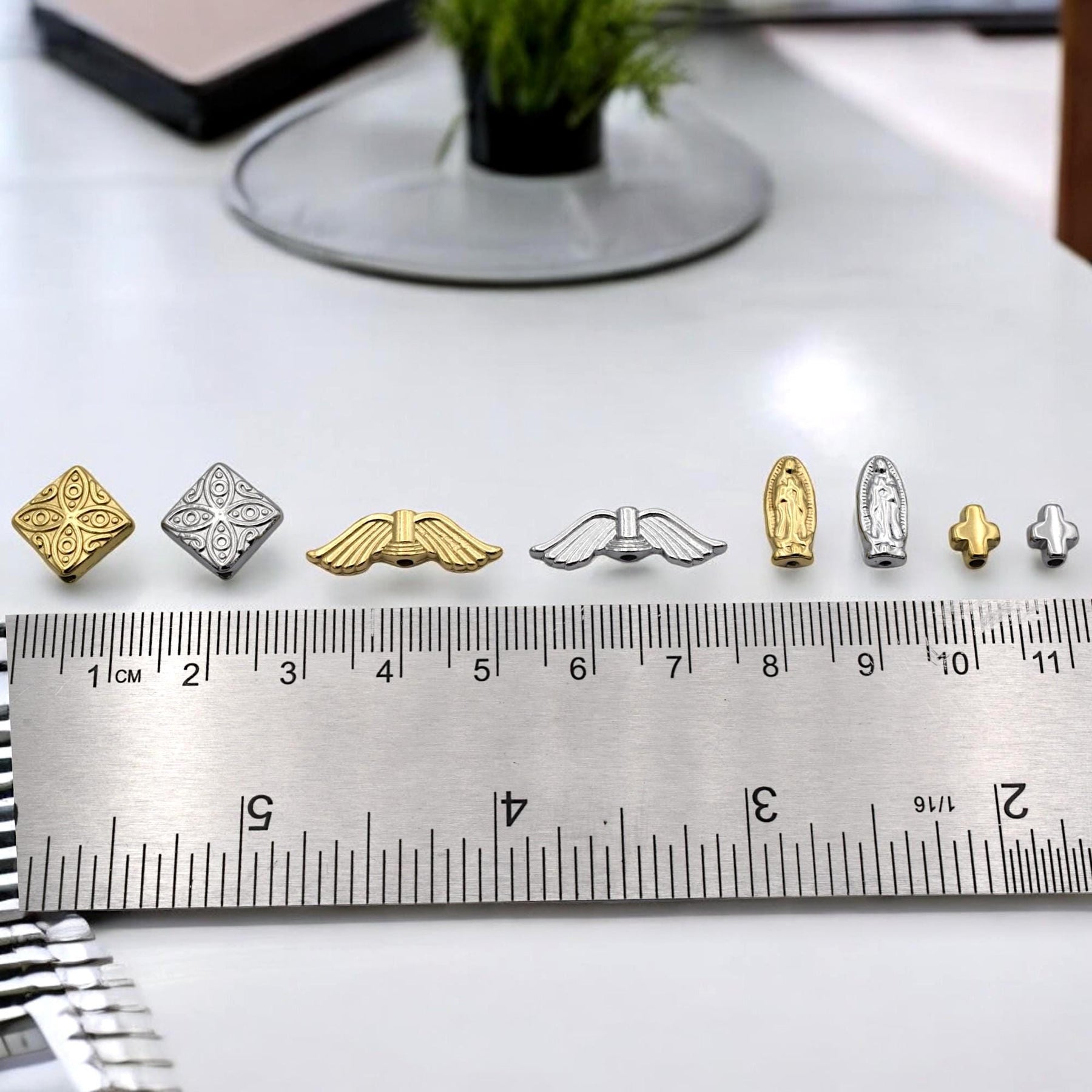 Stainless Steel Spacer Bead  – Cross, Angel Wing, Mary Medal, Ornate Square, Gold / Silver for Beading Rosary / Bracelet/N...