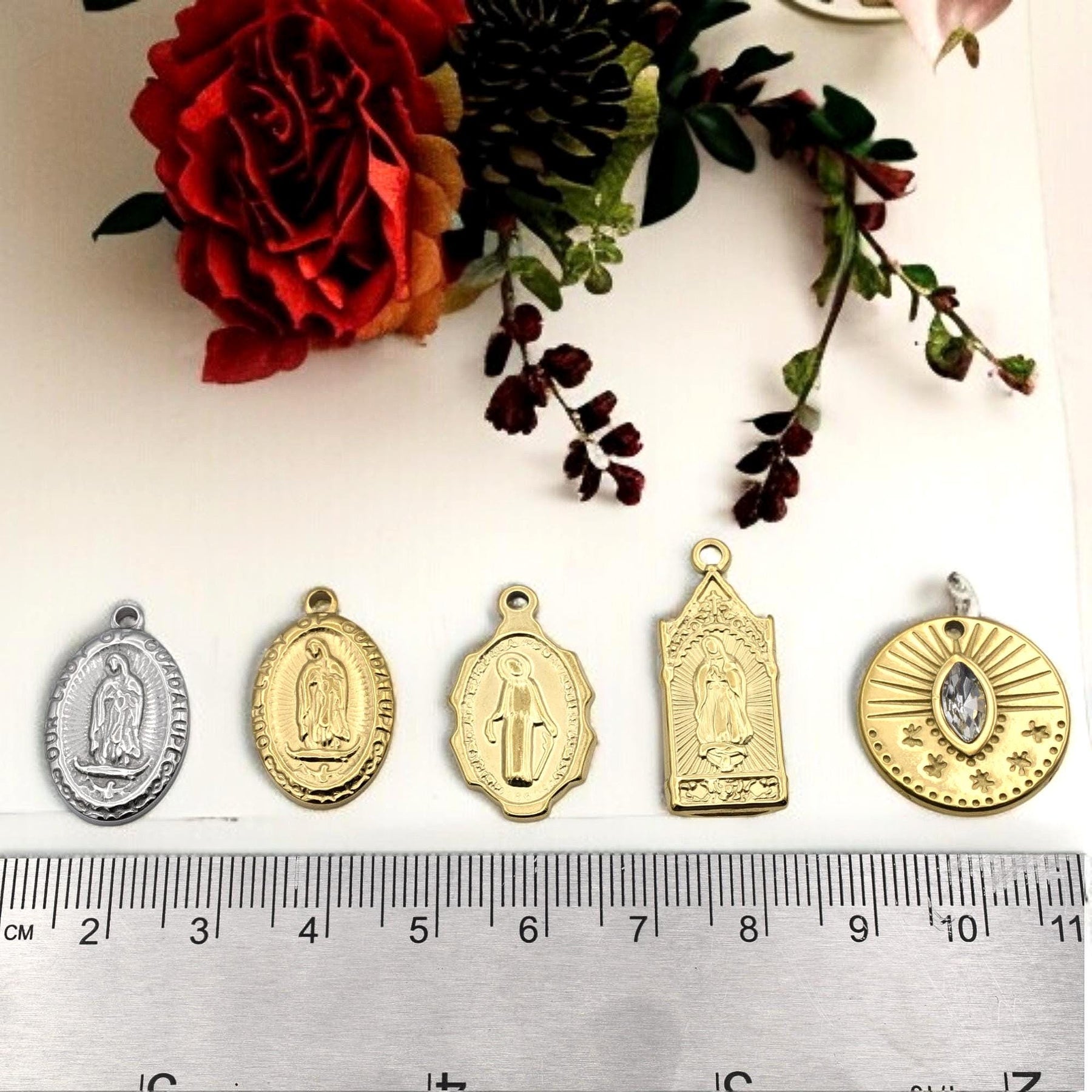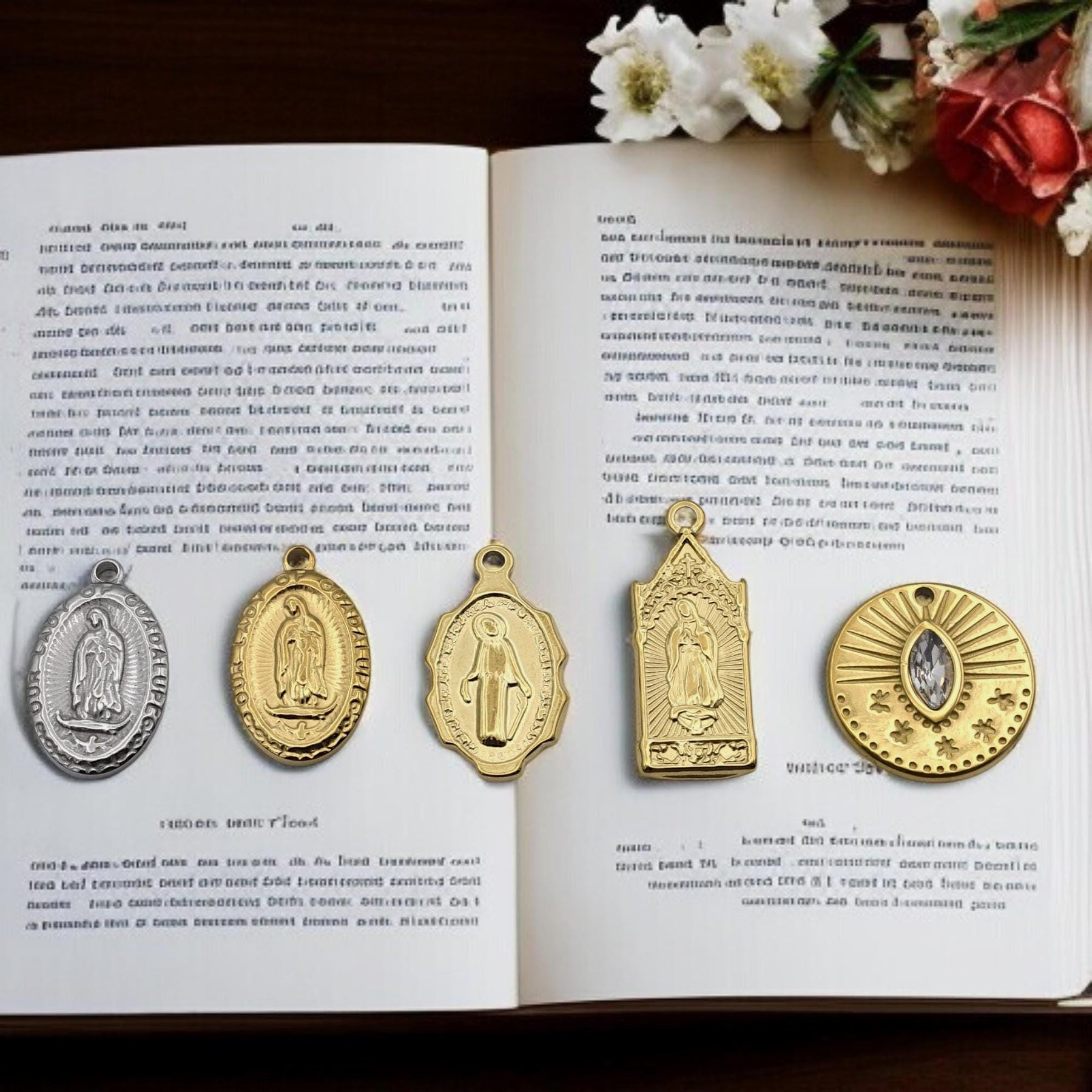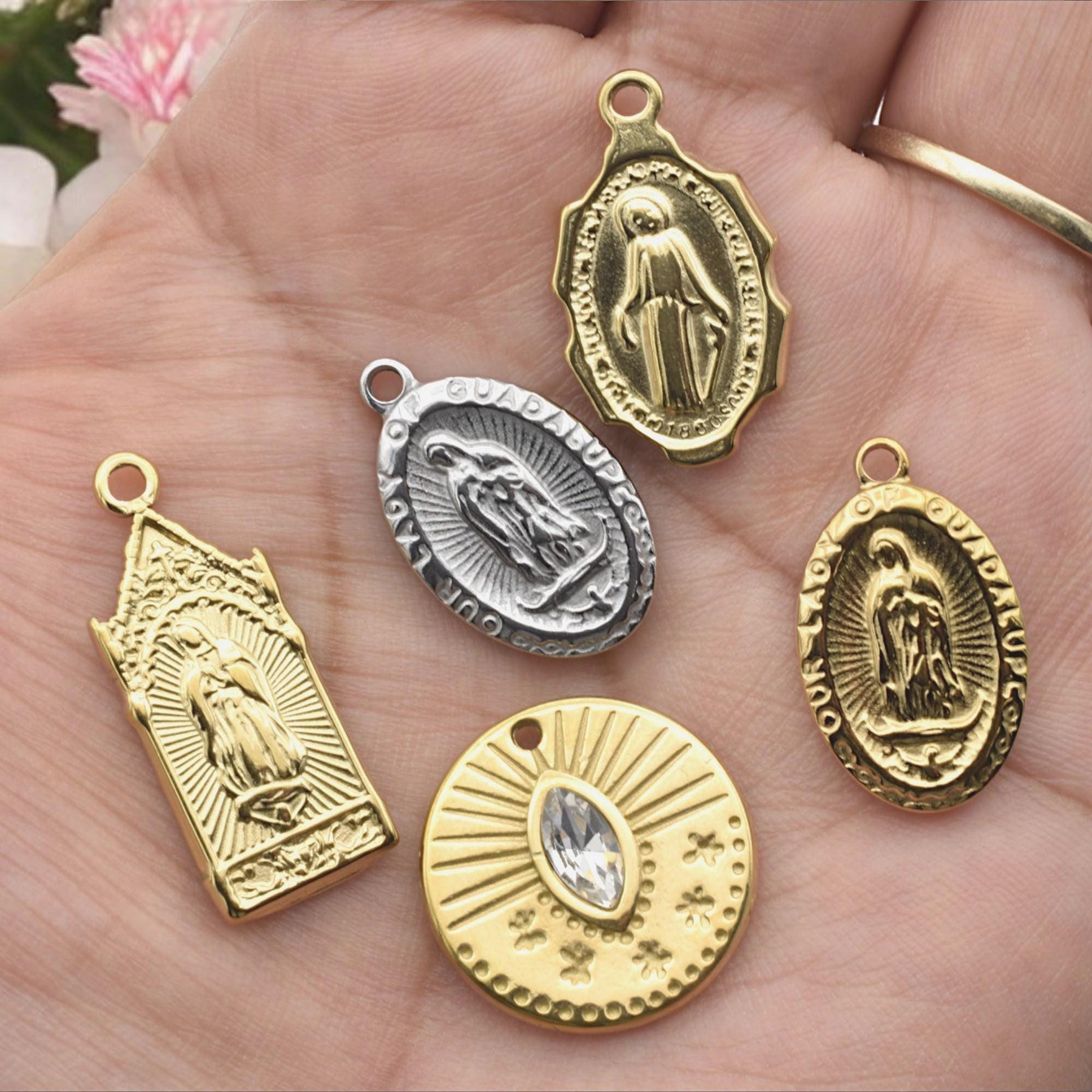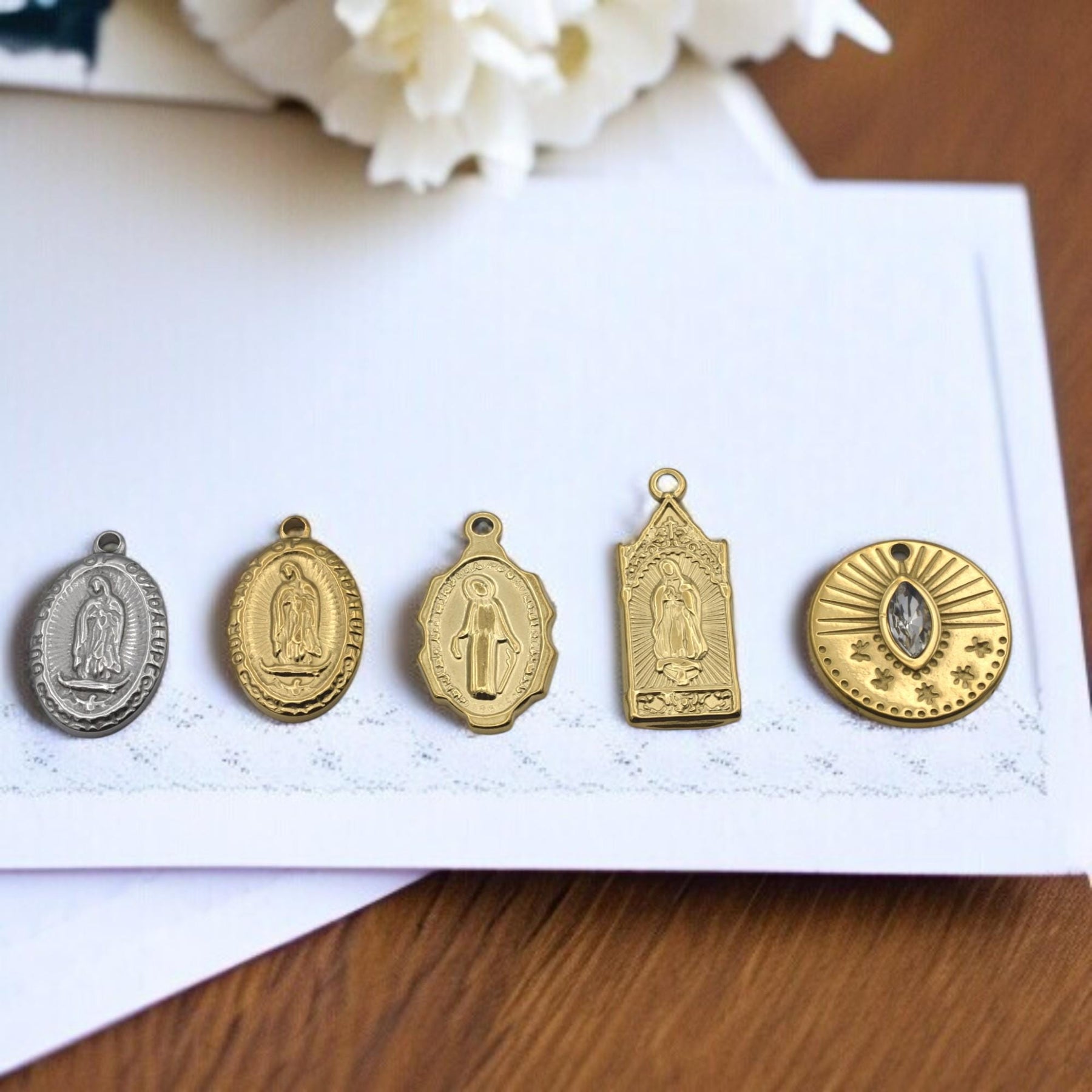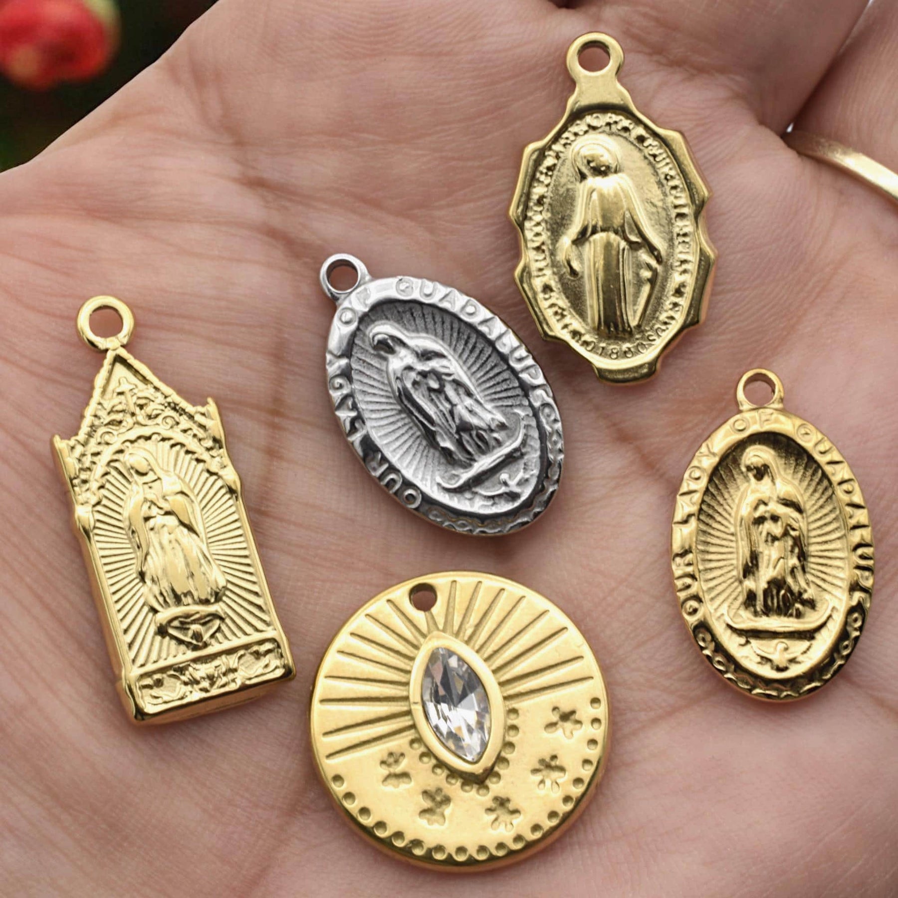 Stainless Steel Virgin Mary & Guadalupe Medal Charms – Gold & Silver-Tone Religious Jewelry