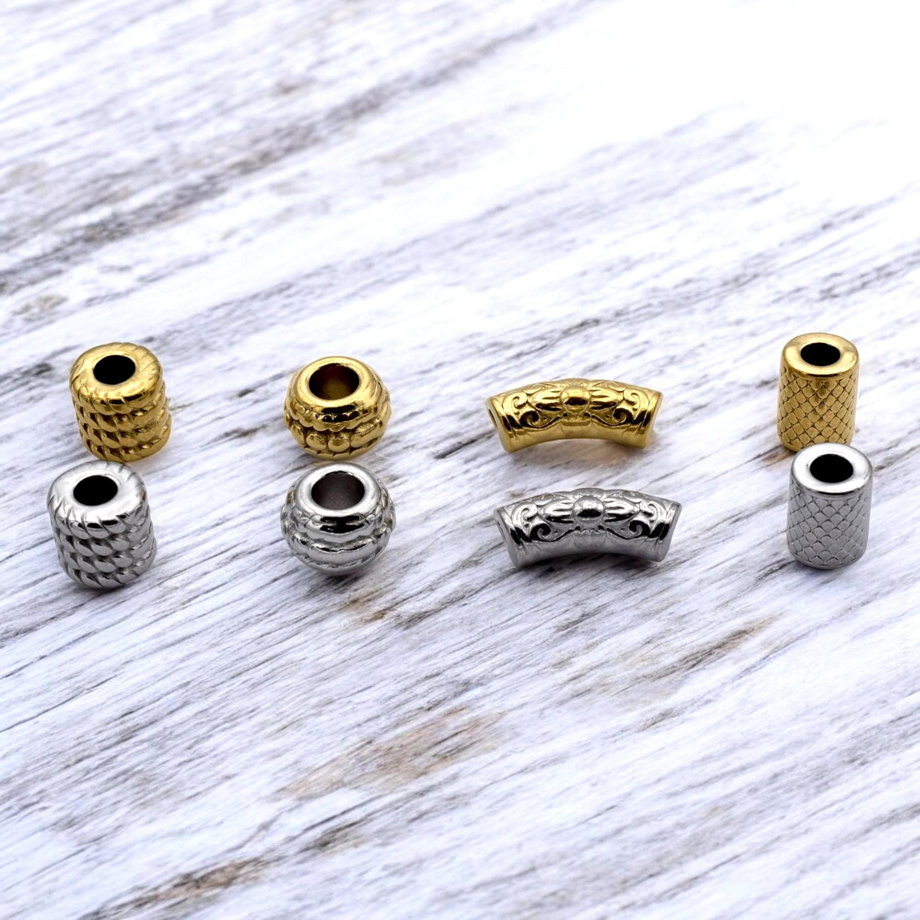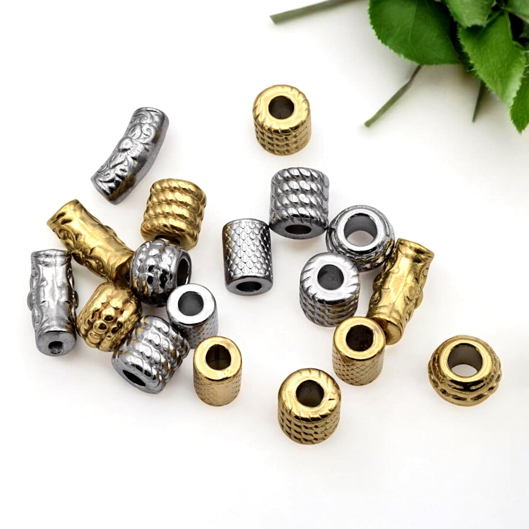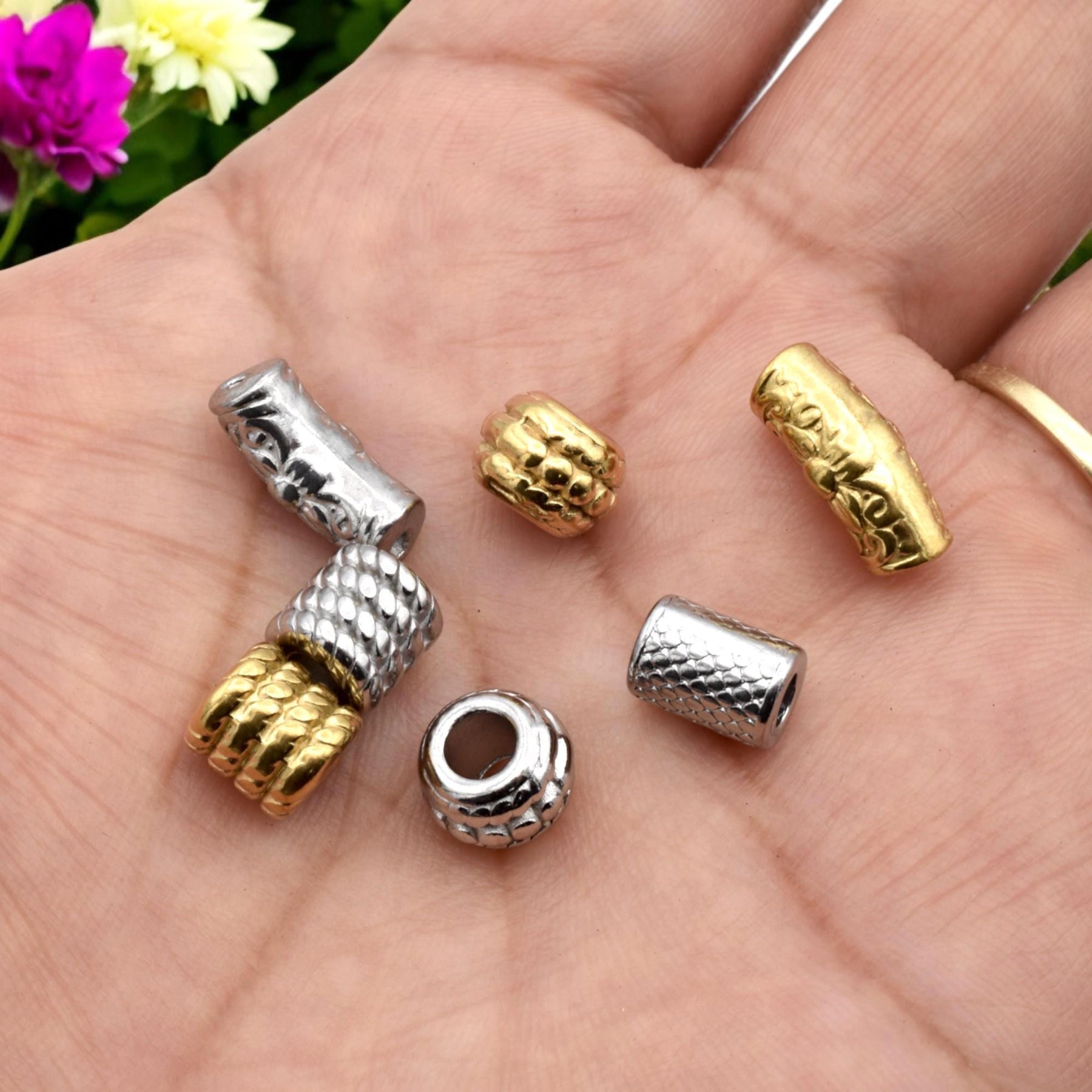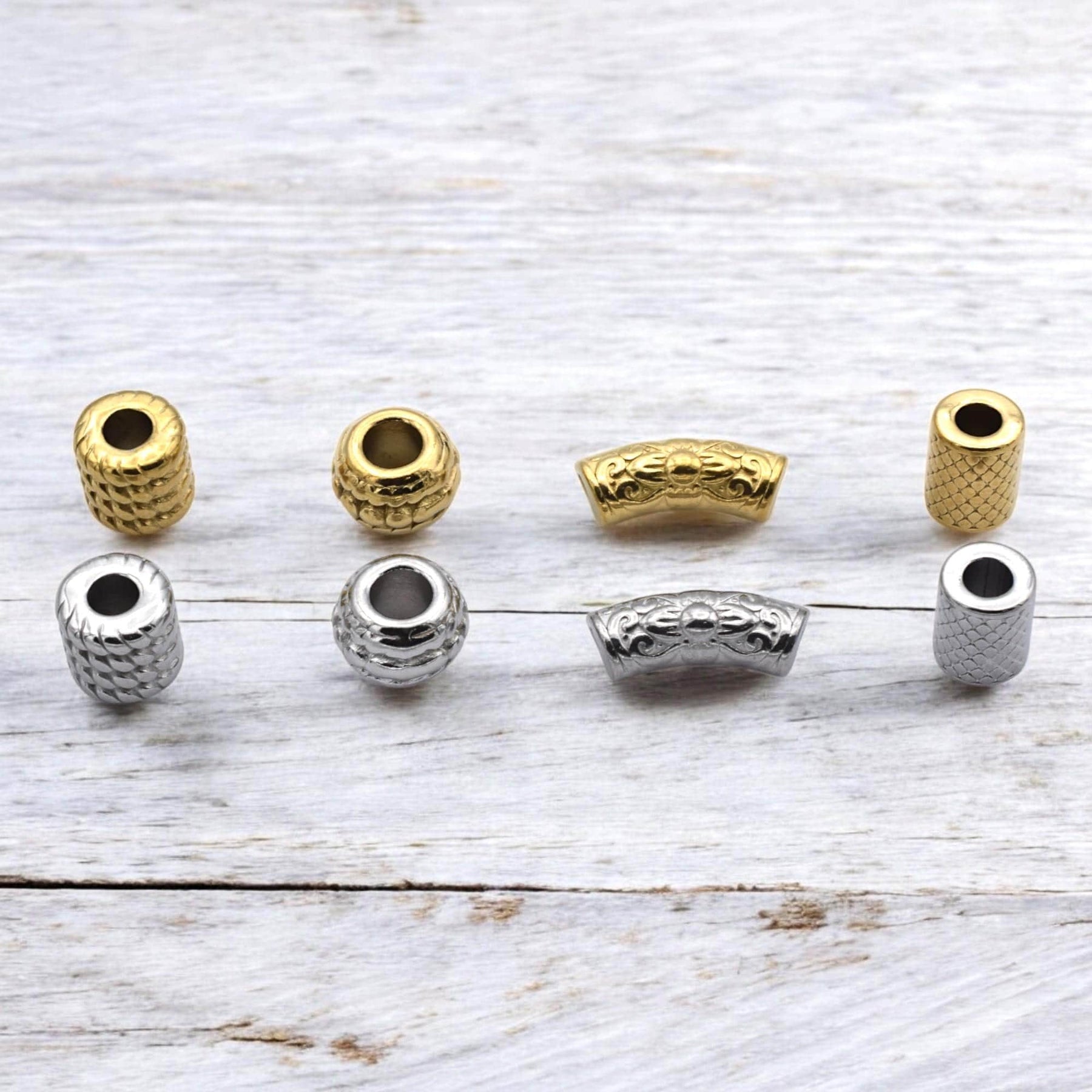 Textured Barrel Spacer Beads  Roundel – Gold & Silver Stainless Steel Large‑Hole Tubes for Paracord, Leather  Bracelet DIY...