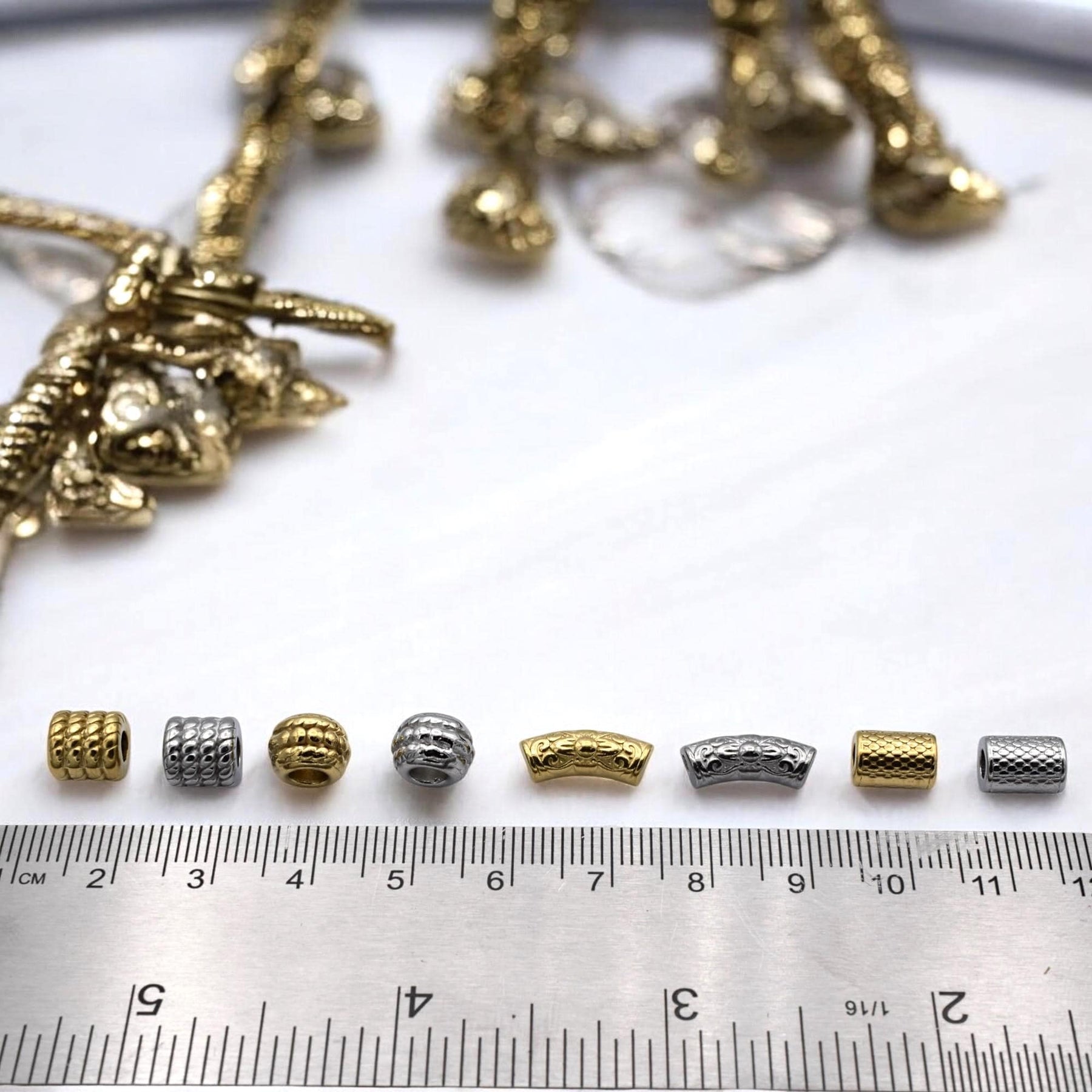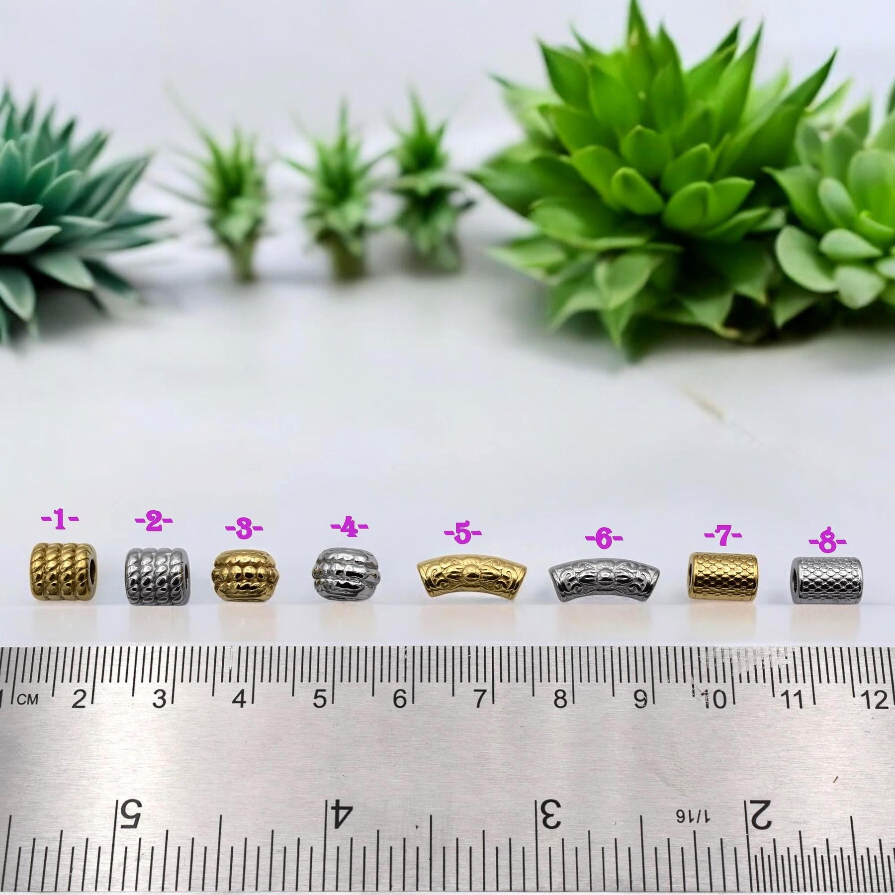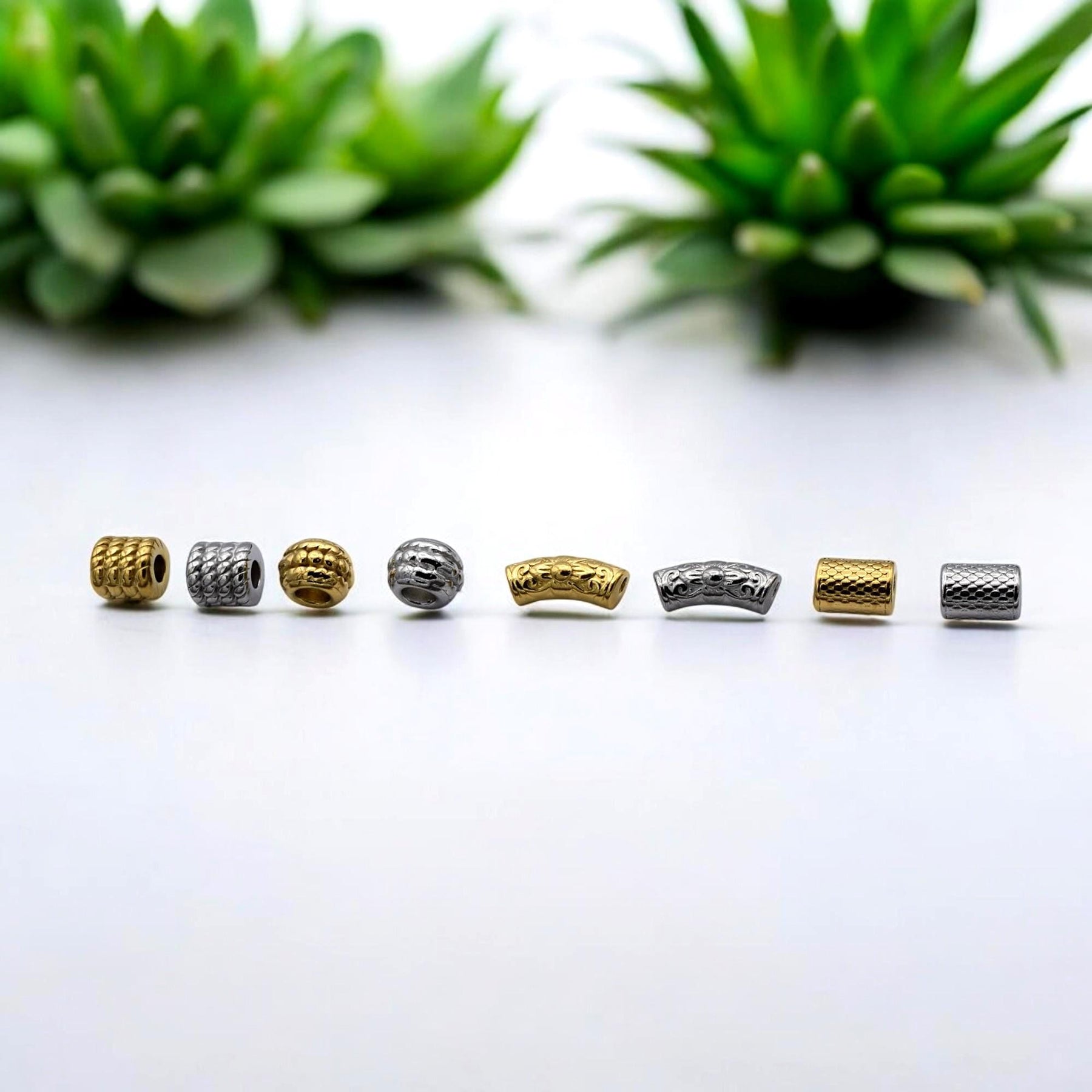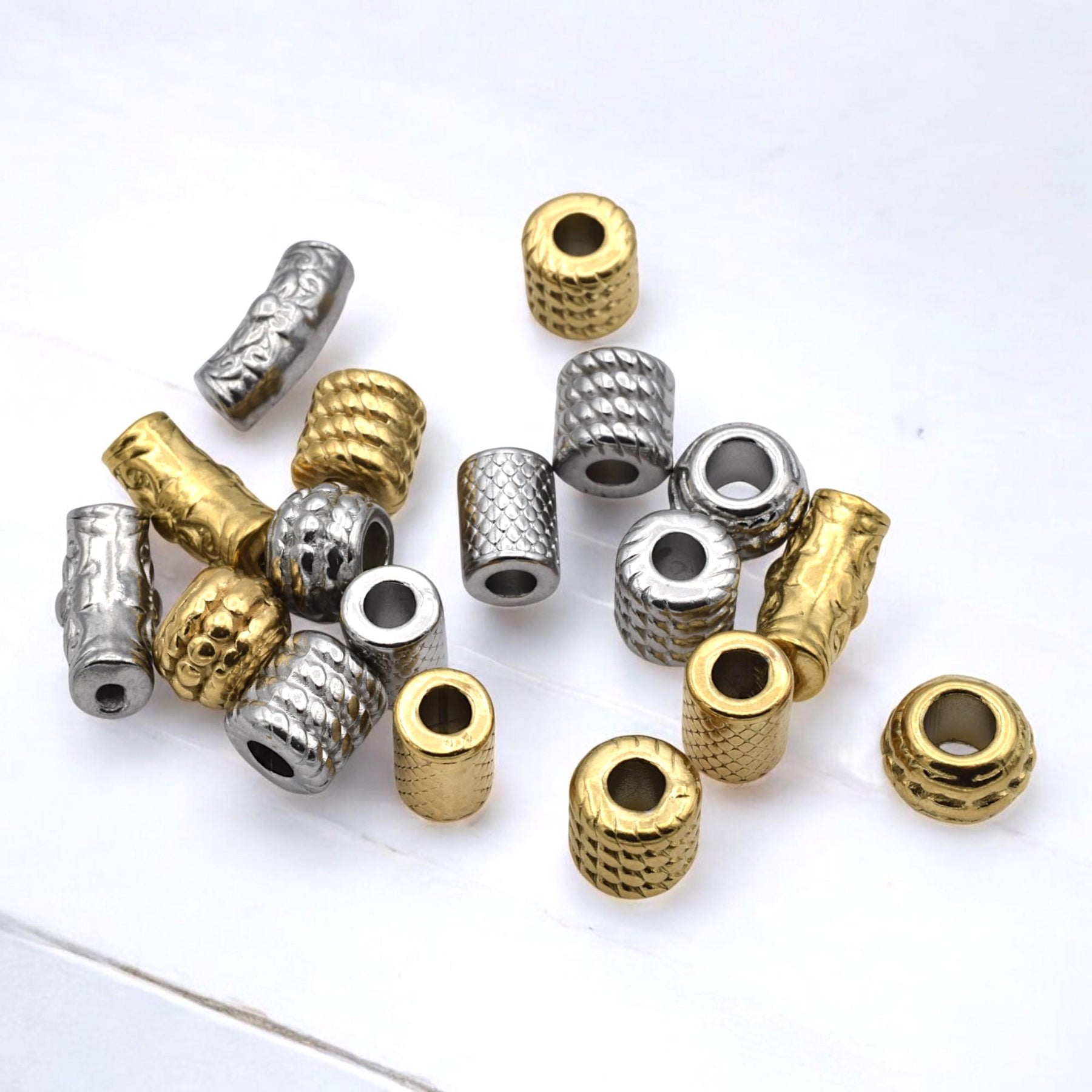 Textured Barrel Spacer Beads – Gold & Silver Stainless Steel Large-Hole Tubes