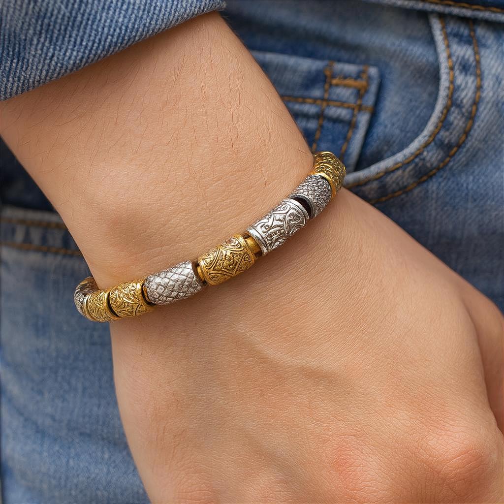 Designs: Diamond‑knurl, snakeskin, hammered & bamboo textures in matching gold‑Plated and silver‑tone Stainless Steel.