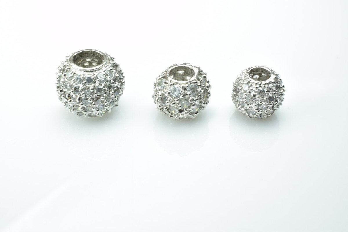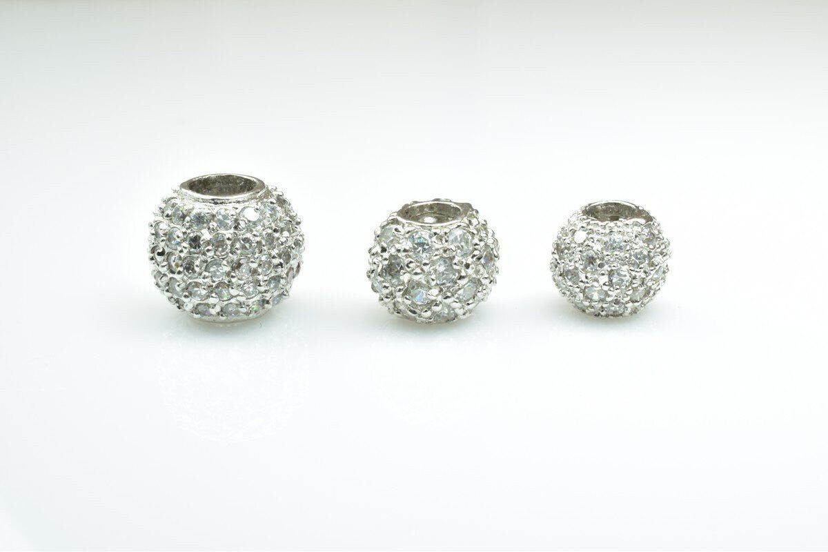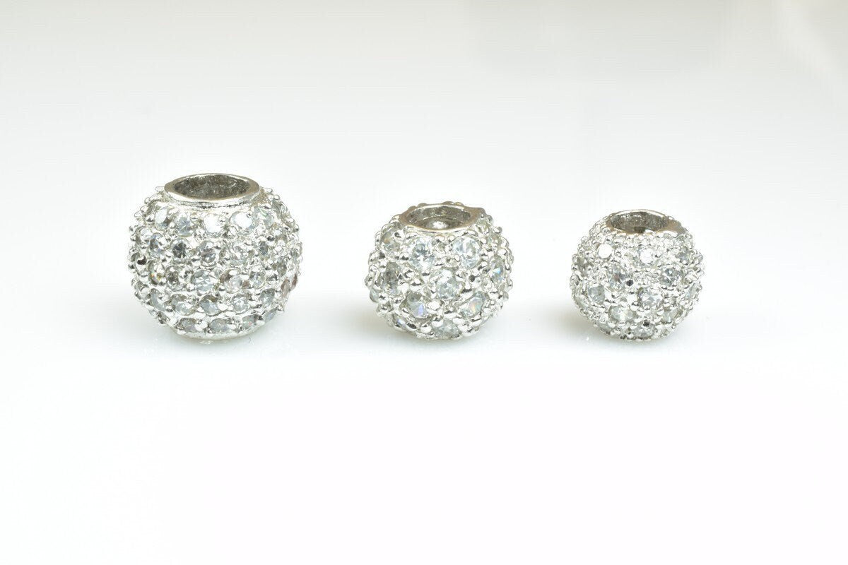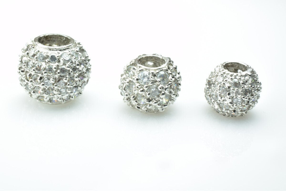 925 Sterling Silver CZ Cubic Zircon Round Beads With a Big Hole European Style Size 10mm/12mm/14mm For Jewelry Making
