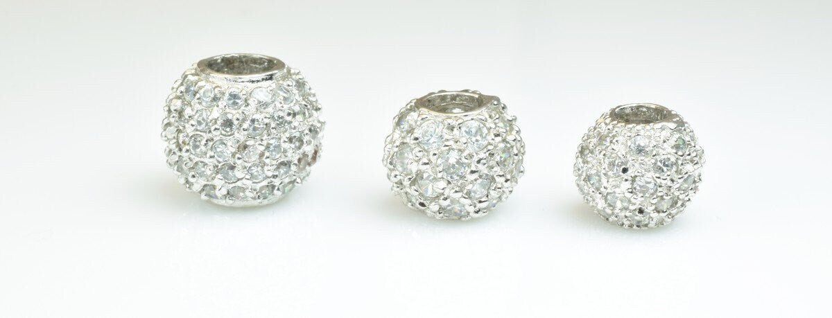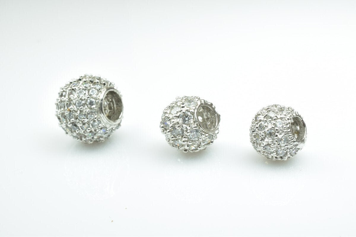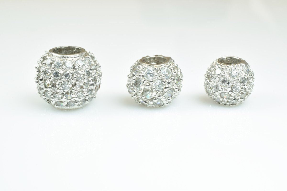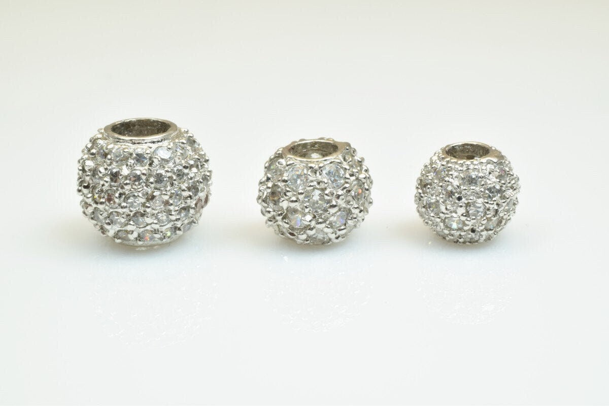 925 Sterling Silver CZ Cubic Zircon Round Beads With a Big Hole European Style Size 10mm/12mm/14mm For Jewelry Making