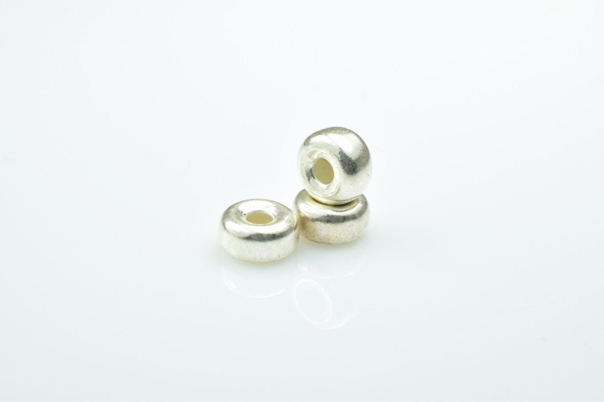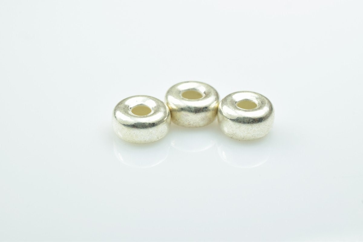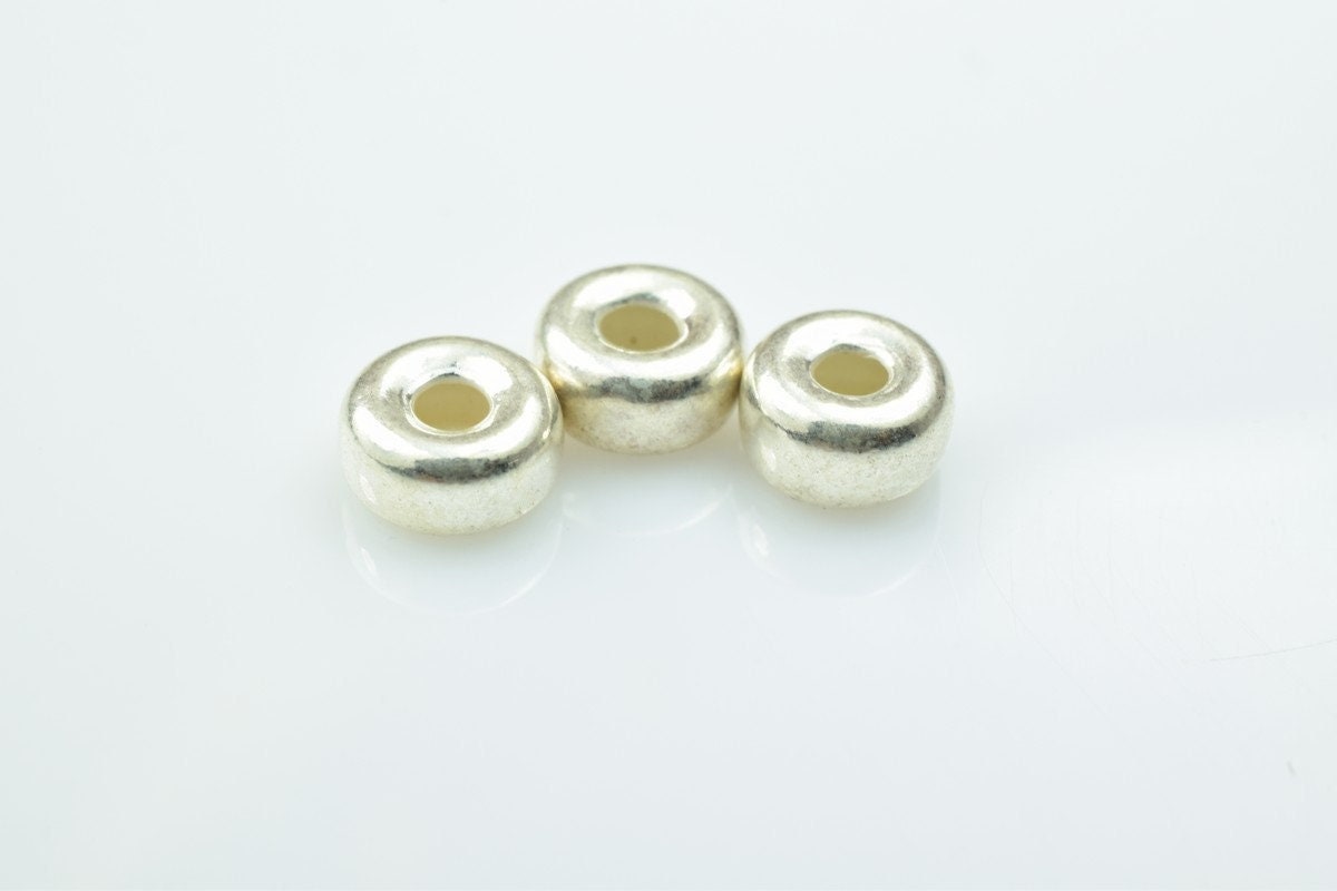 925 Sterling Silver Smooth Rondelle Donut Spacer Beads Size 5mm/7mm With a Big Hole Style  For Jewelry Making Item