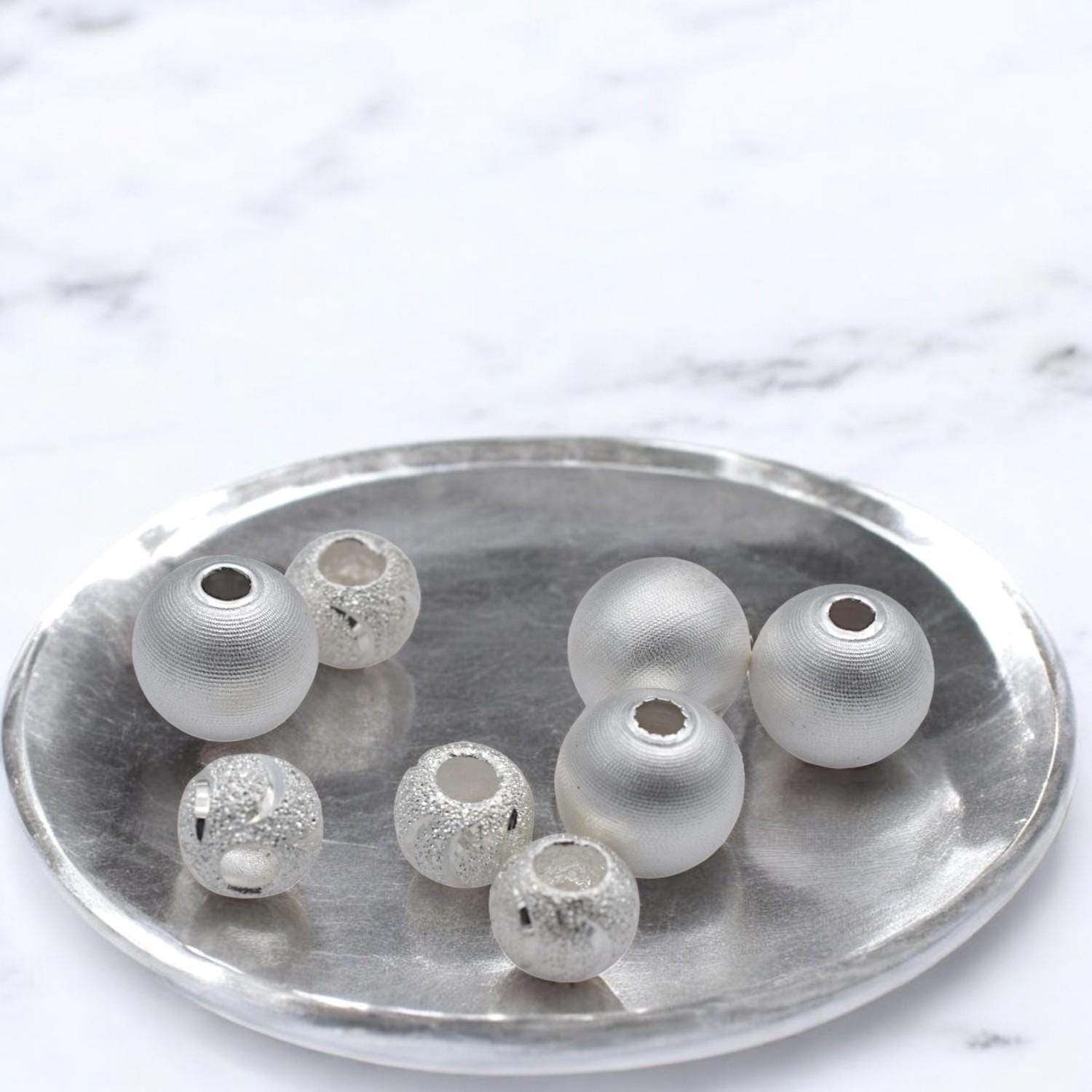 925 Sterling Silver spacer beads feature a beautiful mix of satin and stardust textured finishes, perfect for adding depth and sparkle to your jewelry creations. Ideal for necklaces, bracelets, anklets, and earrings, these round beads make stunning accents or focal pieces. they are excellent for both DIY crafters and professional jewelry designers.