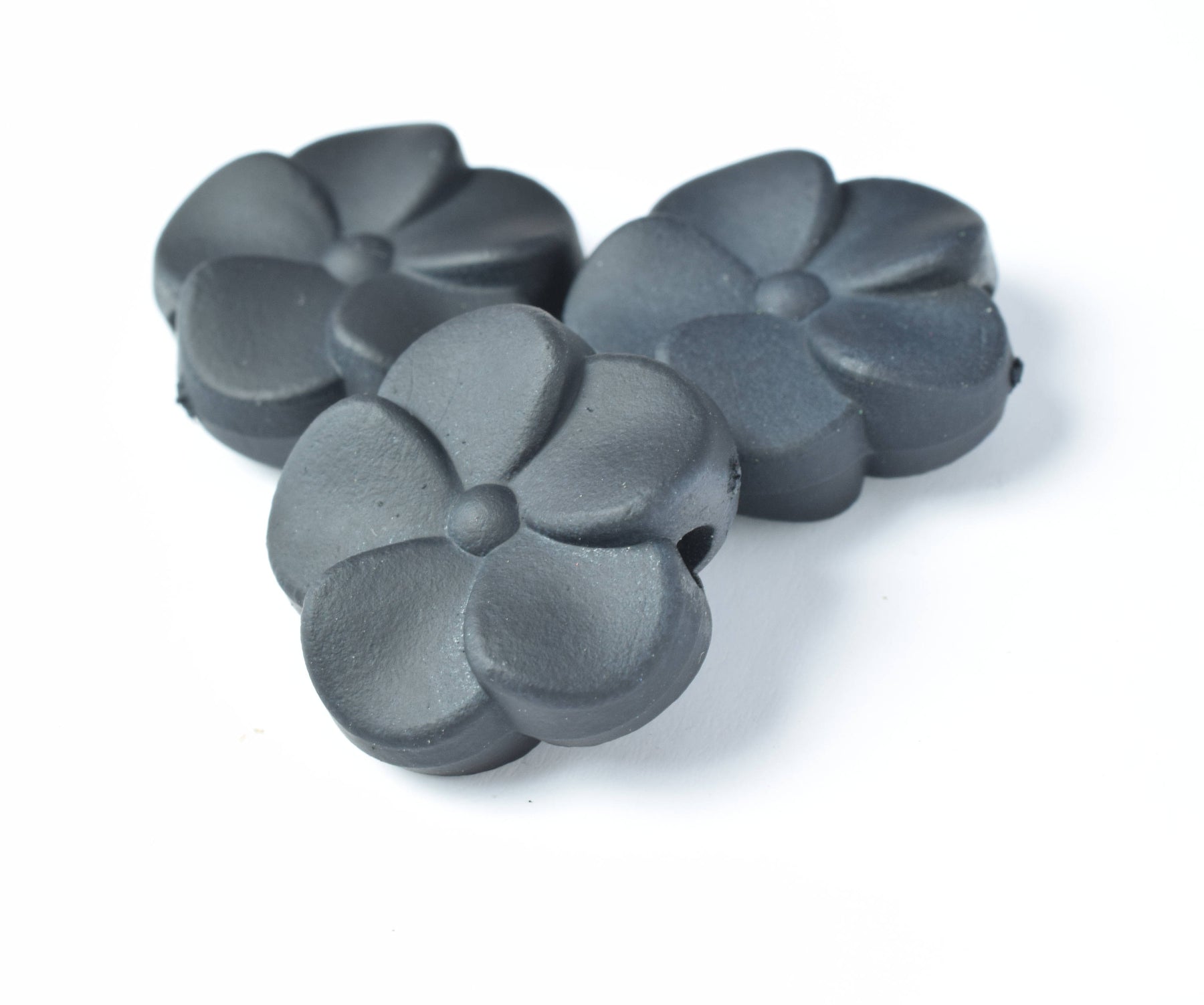 Details: 19mm Matte Rubberized Plastic Floral Flower Beads/ Sold by 1 pack pf 4pcs/ Double hole feature 2mm hole size/ 8mm bead thickness /Use this floral bead to design hair bows, jewelry and to design, Lightweight floral beads
