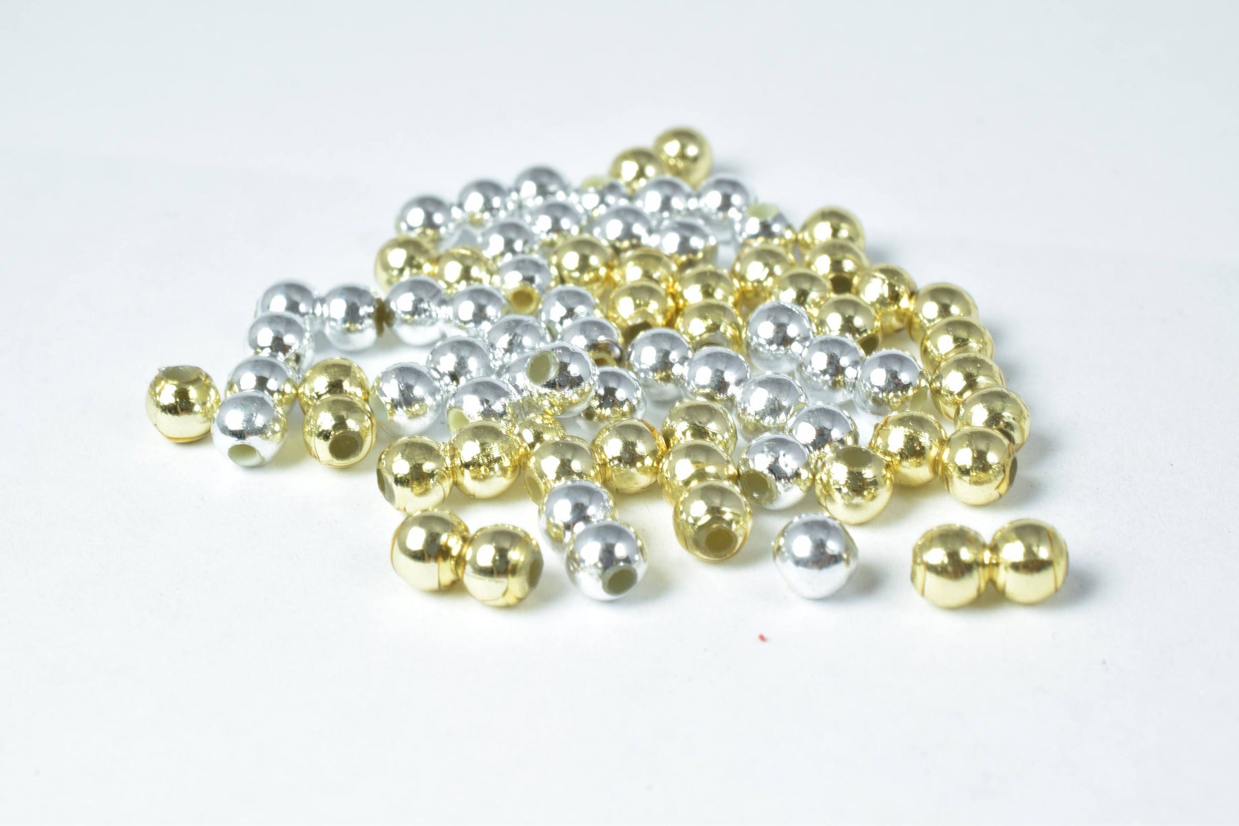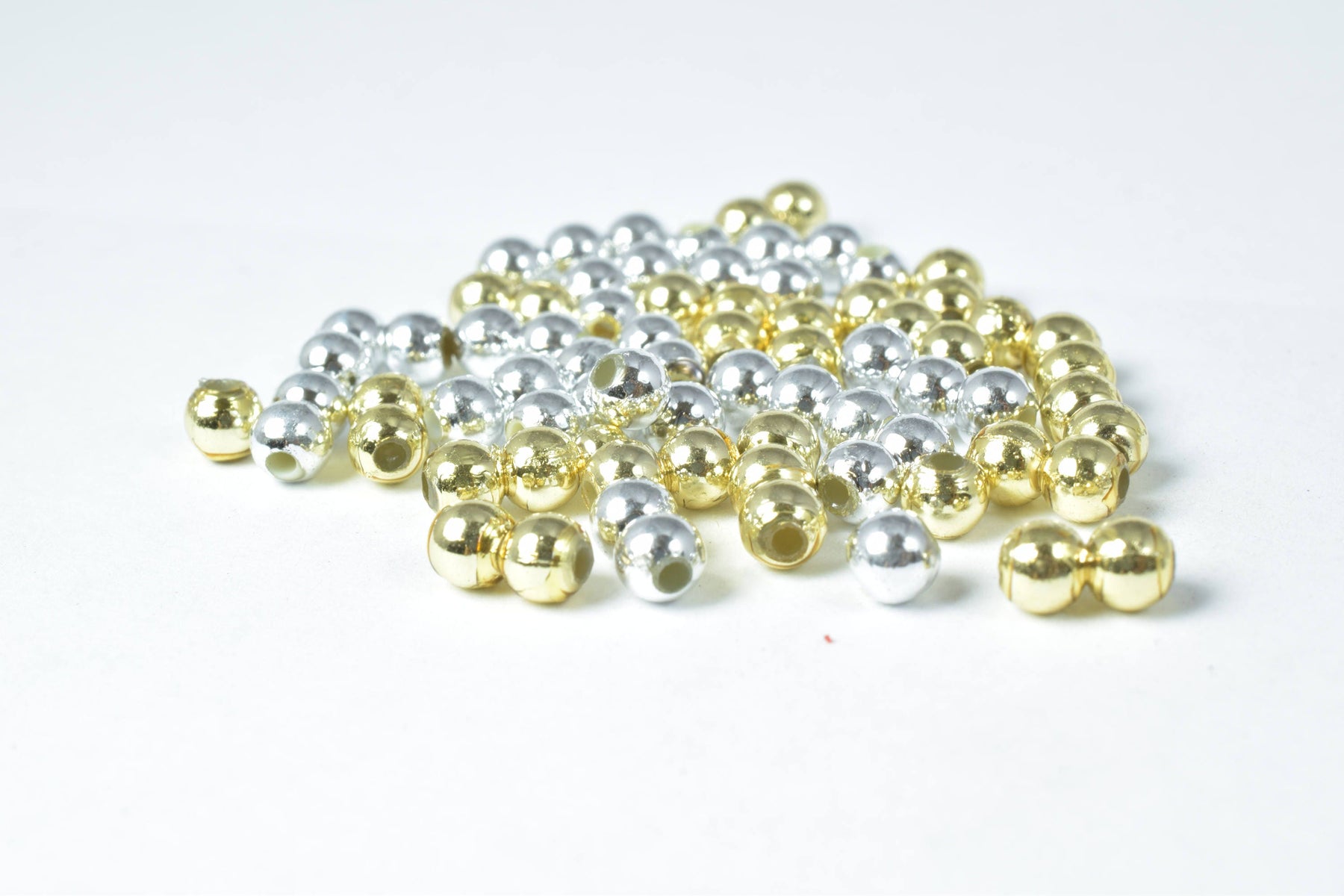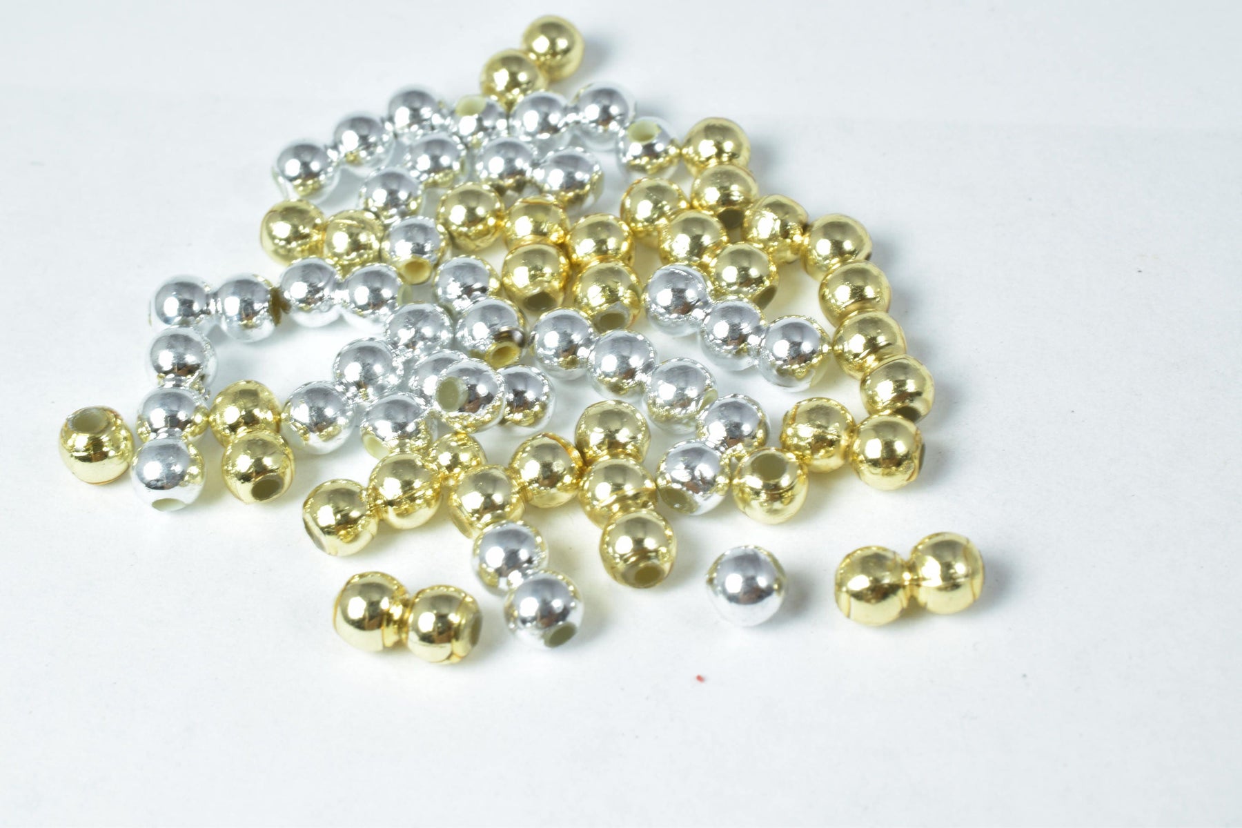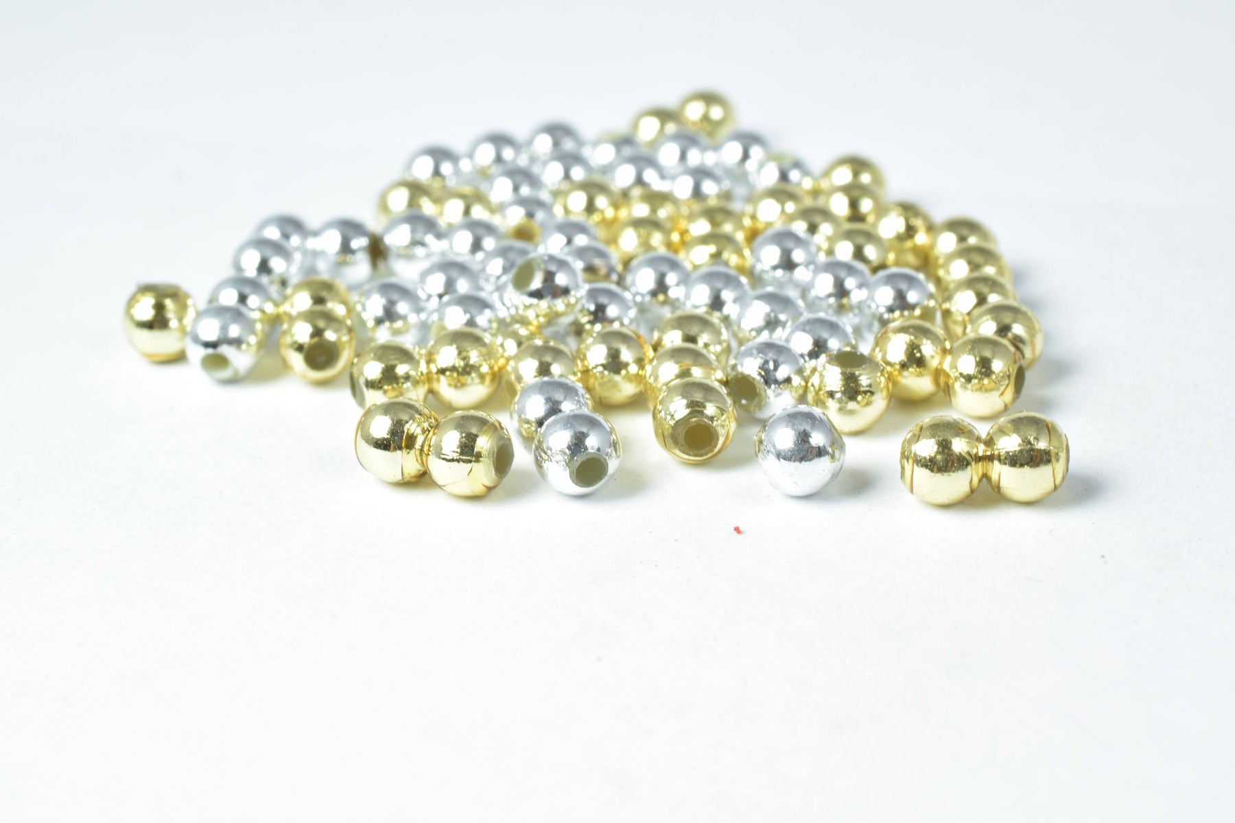 Details: 4mm Plastic Petite Gold/Silver Round Beads/ 1000pcs per pack/ 1mm hole opening