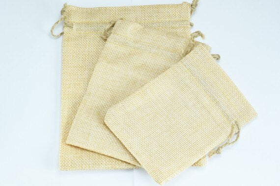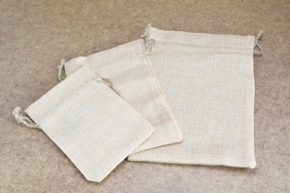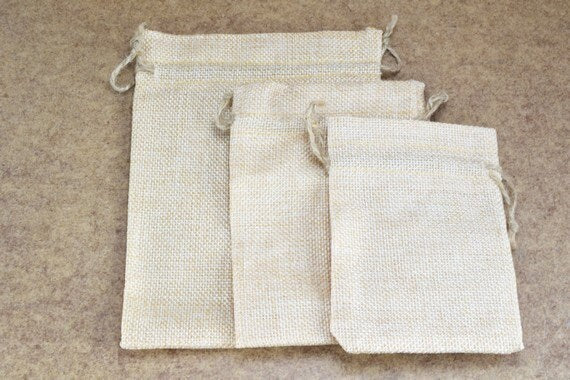 10 Drawstring Burlap Bags 3.25x4.5 in, 3.75x5.5 in, 7x5 inches. Packing Pouches Wedding Bracelet Pouch or any Gifts
