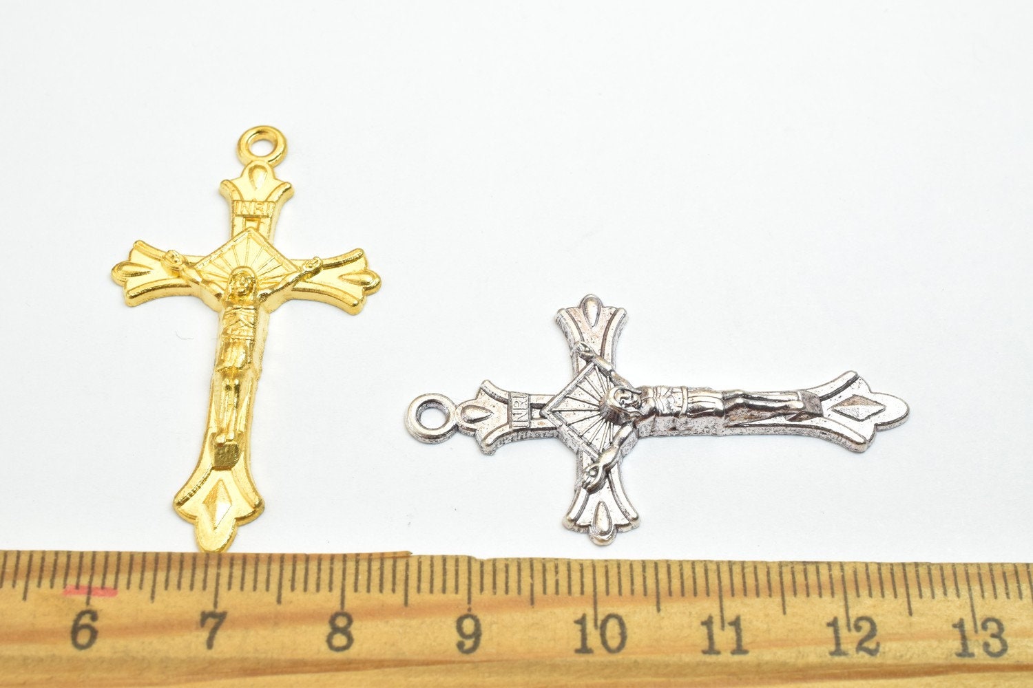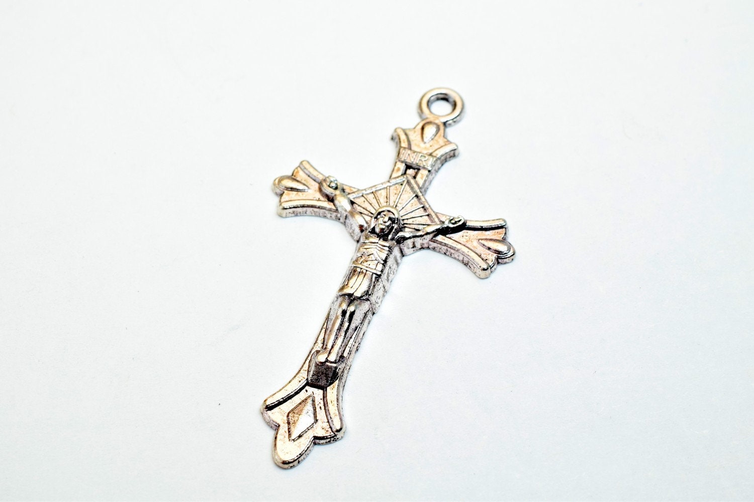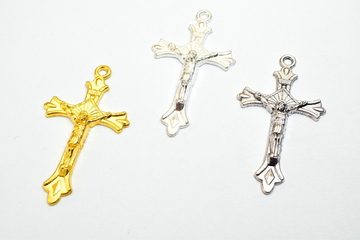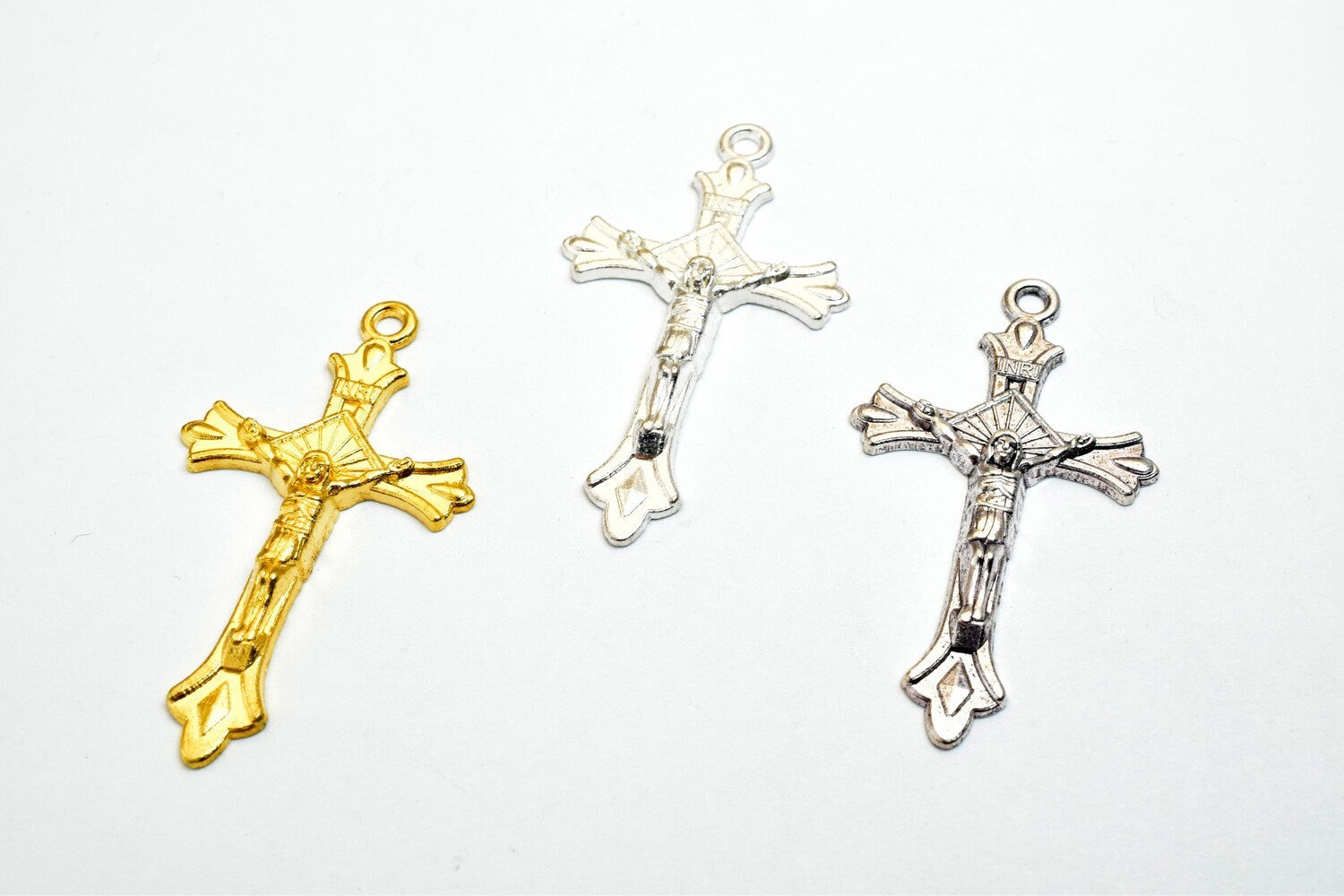 10 PCs Cross Charm With Jesus Rosary Gothic Religious Gothic Christian Pendant Baptism Favor First Communion Jewelry Making Item# B