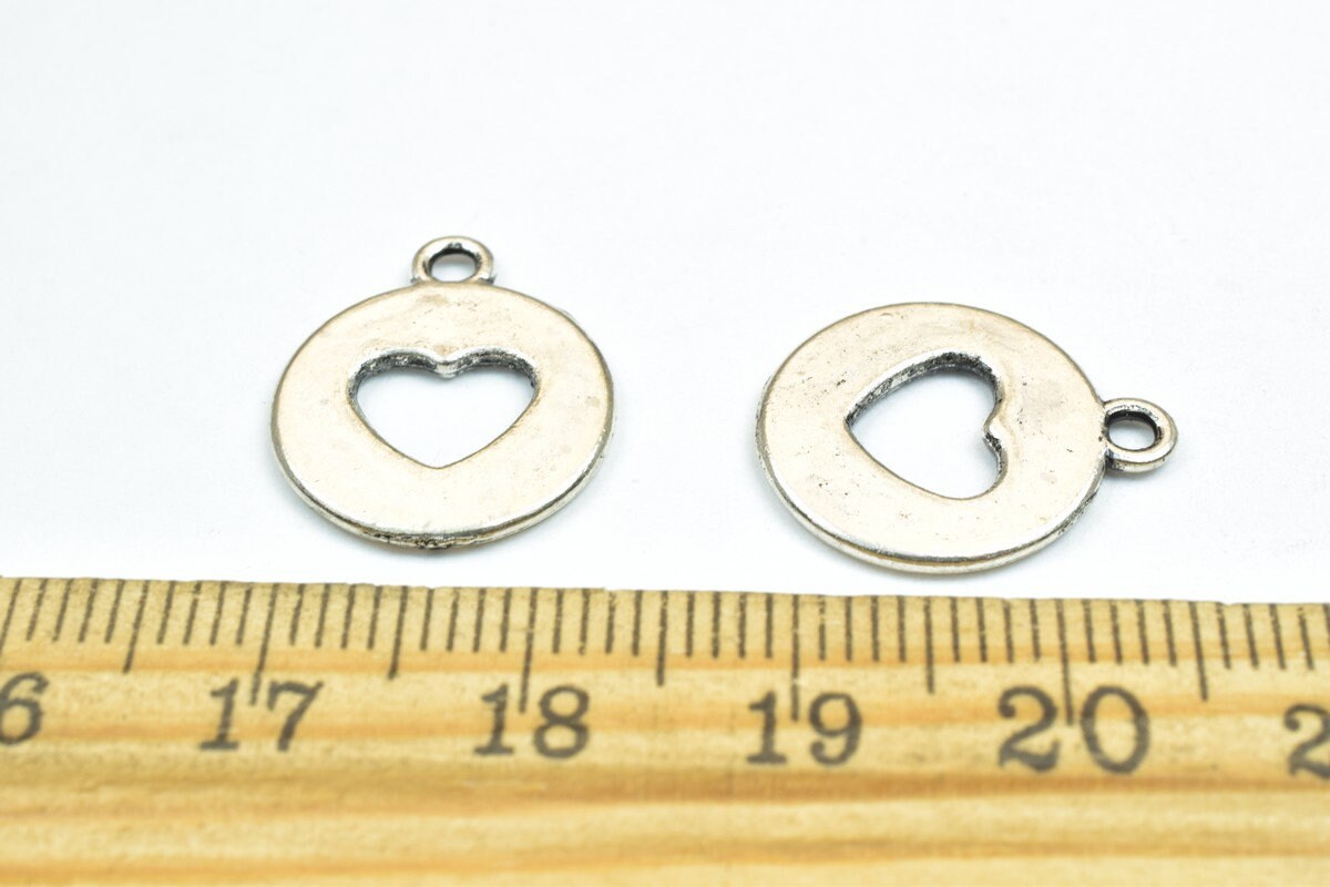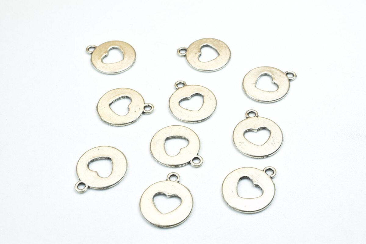 10 PCs Heart Antique Silver Charm Beads Alloy Metal Bracelets Pendant Size 17x15mm Jump Ring Size 1.5mm For Jewelry Making...