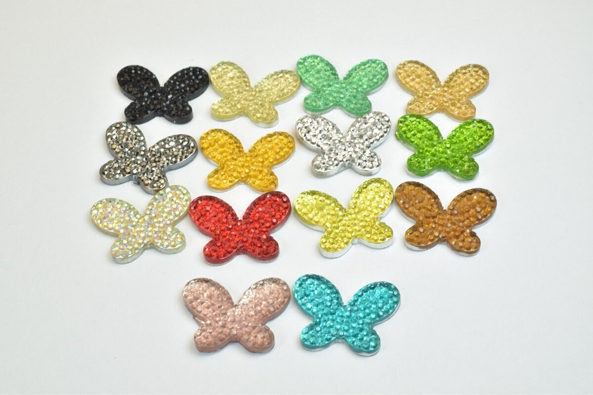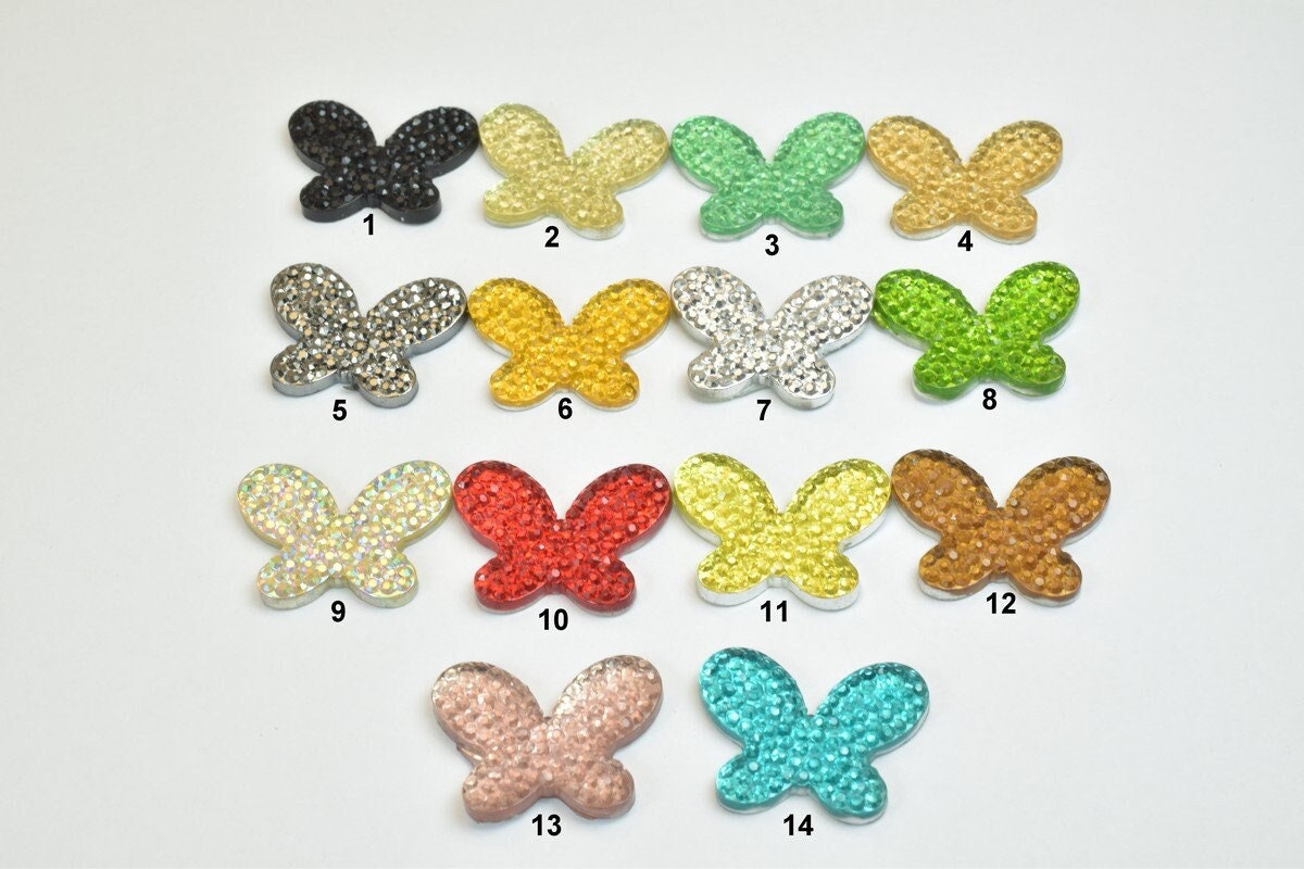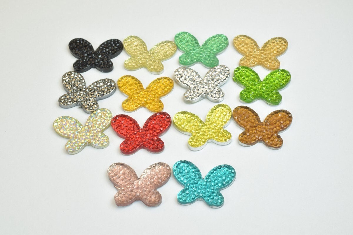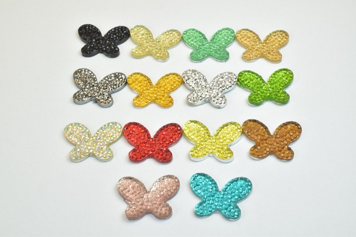10 PCs Sparkly Acrylic Rhinestone Butterfly 22x17mm Resin Flat back Decoden Beads Kawaii Cabochons Phone Case Embellishments Bling Invitation
