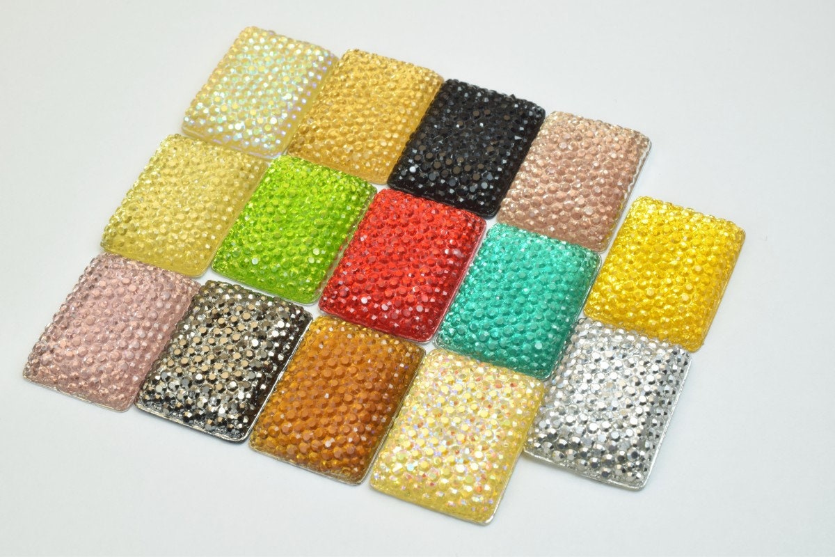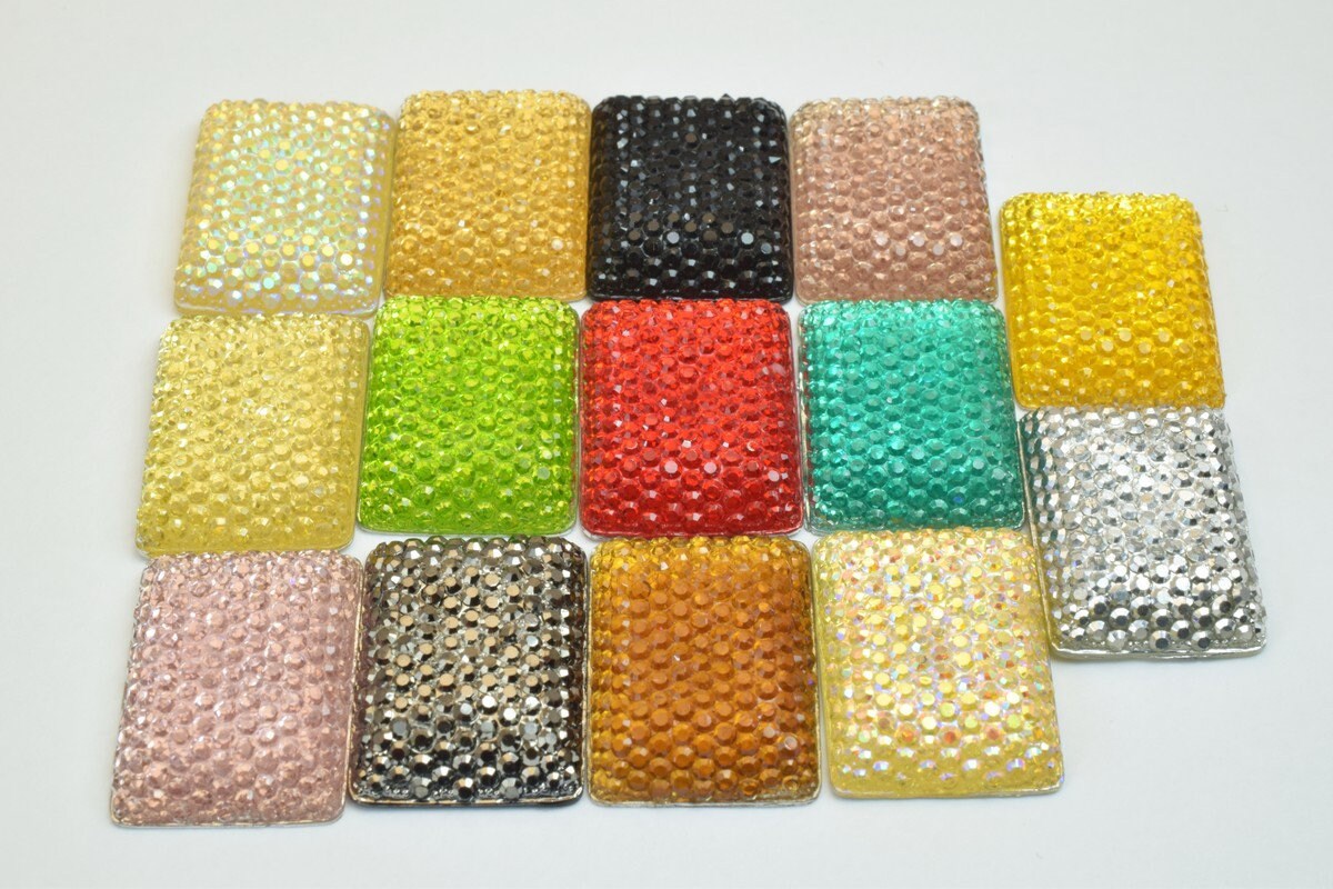 10 PCs Sparkly Acrylic Rhinestone Rectangle 25x18mm Resin Flat back Decoden Beads Kawaii Cabochons Phone Case Embellishments Bling for Invitation