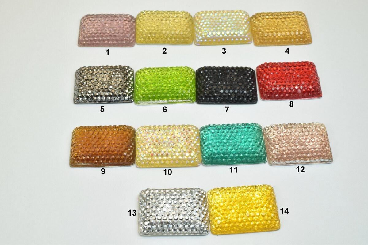 10 PCs Sparkly Acrylic Rhinestone Rectangle 25x15mm Resin Flatback Decoden Beads Kawaii Cabochons Phone Case Embellishment...