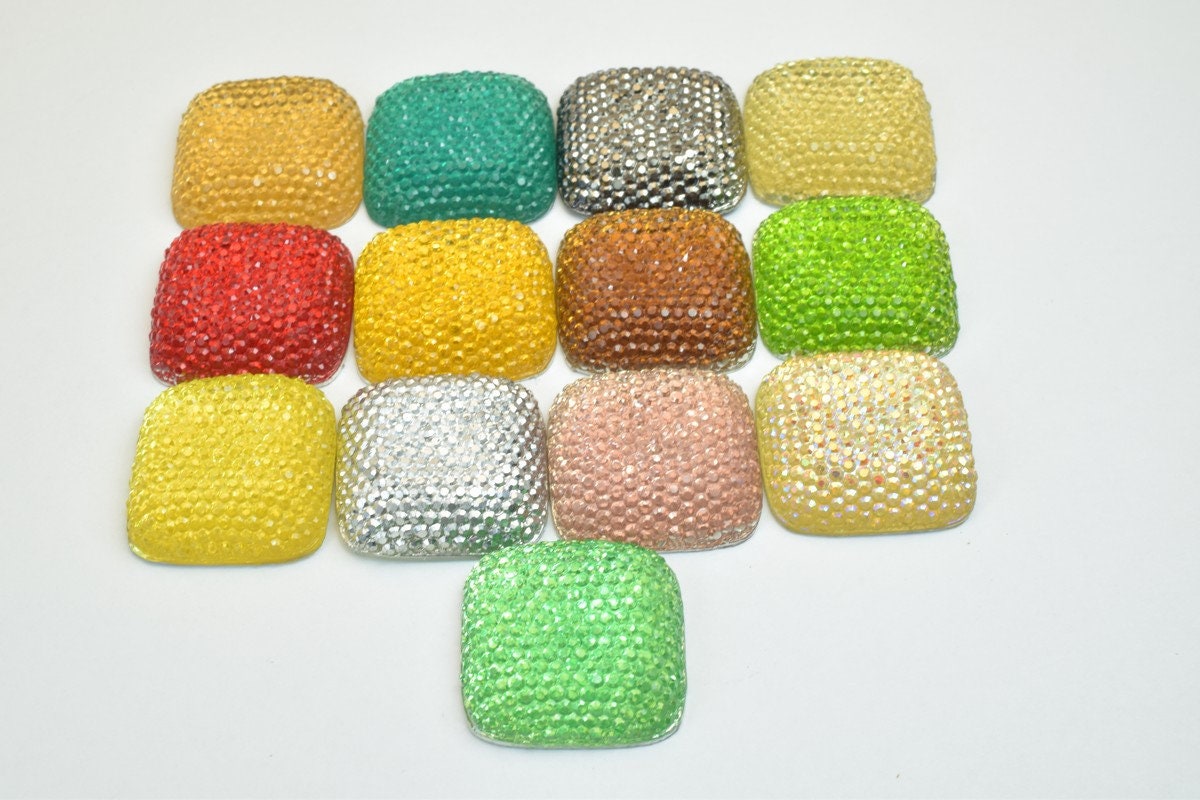 10 PCs Sparkly Acrylic Rhinestone Squares 25mm Resin Flat back Decoden Beads Kawaii Cabochons Phone Case Embellishments Bling Bling for Invitation