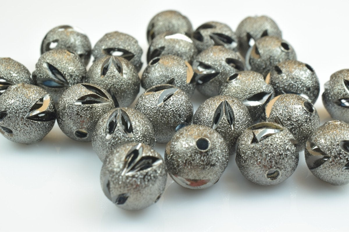 100 PCs Gun Metal Plated Black Carved Round Beads 6mm/8mm/10mm Diamond Cut For Jewelry Making
