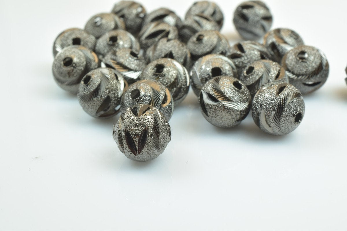 100 PCs Gun Metal Plated Black Carved Round Beads 6mm/8mm/10mm Diamond Cut For Jewelry Making