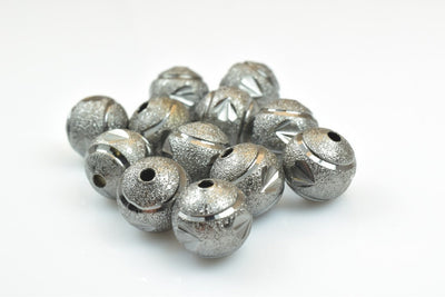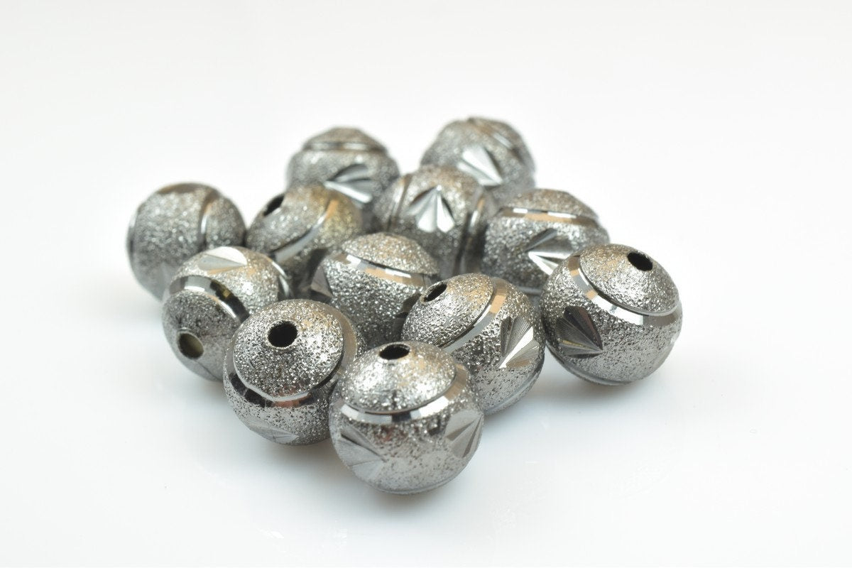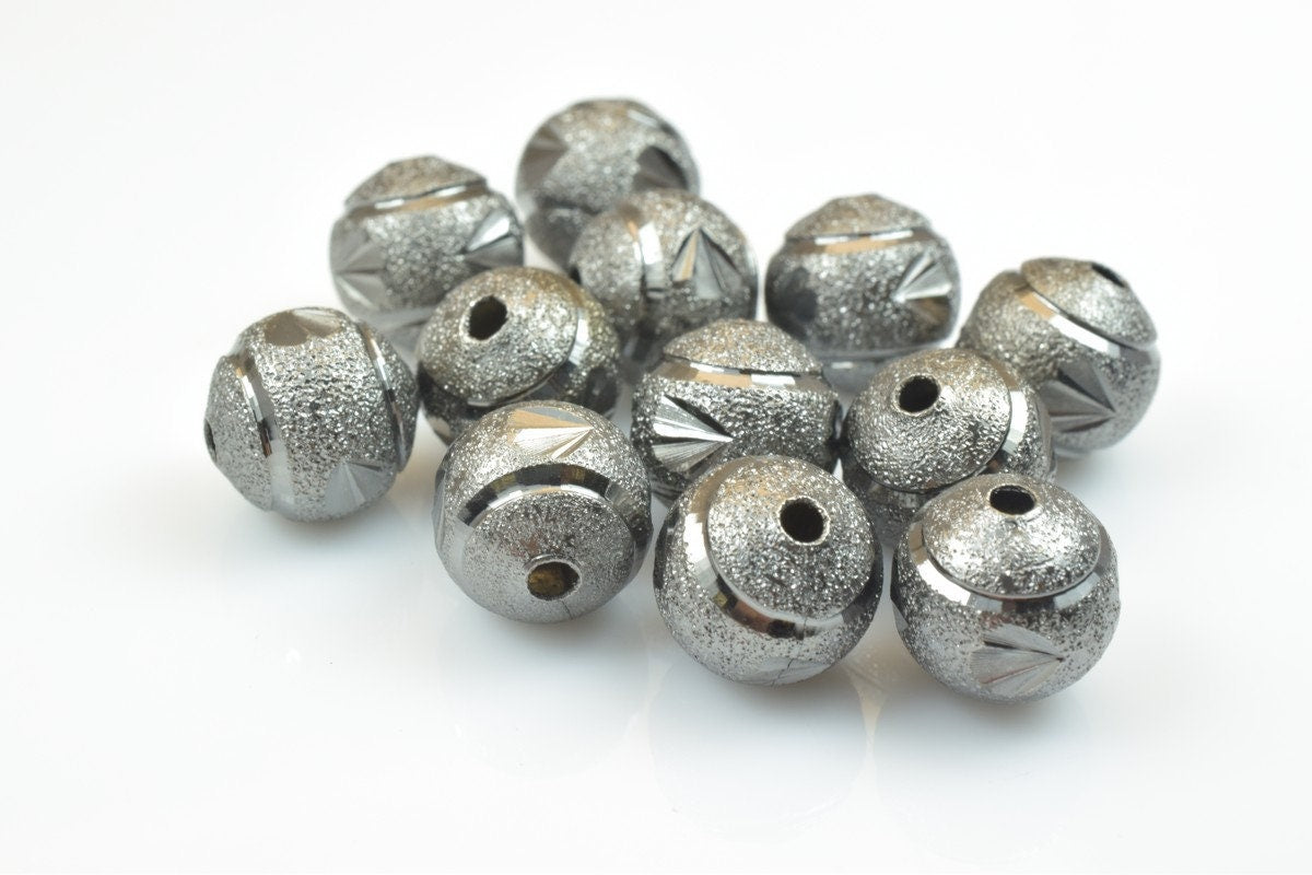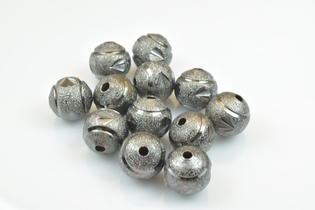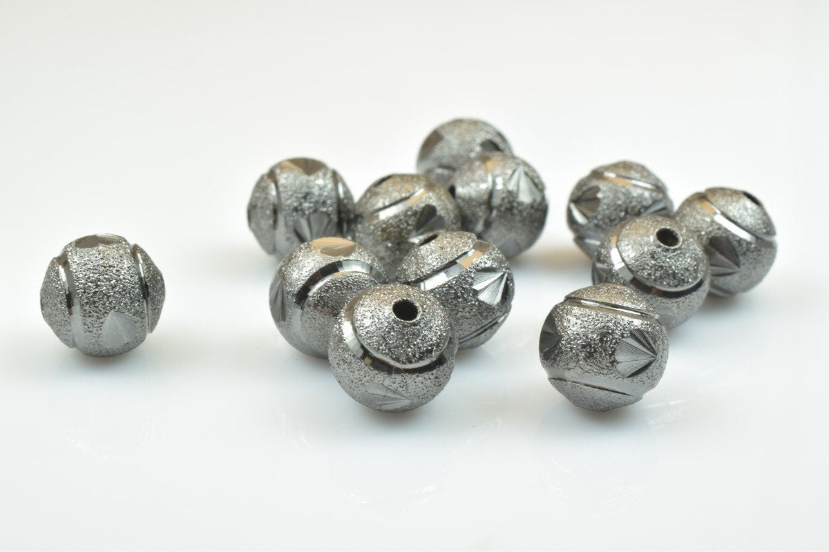 100 PCs Gun Metal Plated Black Carved Round Beads 6mm/8mm/10mm Diamond Cut For Jewelry Making