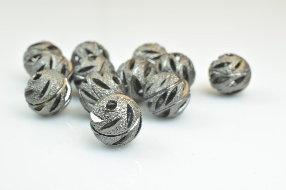 100 PCs Gun Metal Plated Black Carved Round Beads 6mm/8mm/10mm Diamond Cut For Jewelry Making